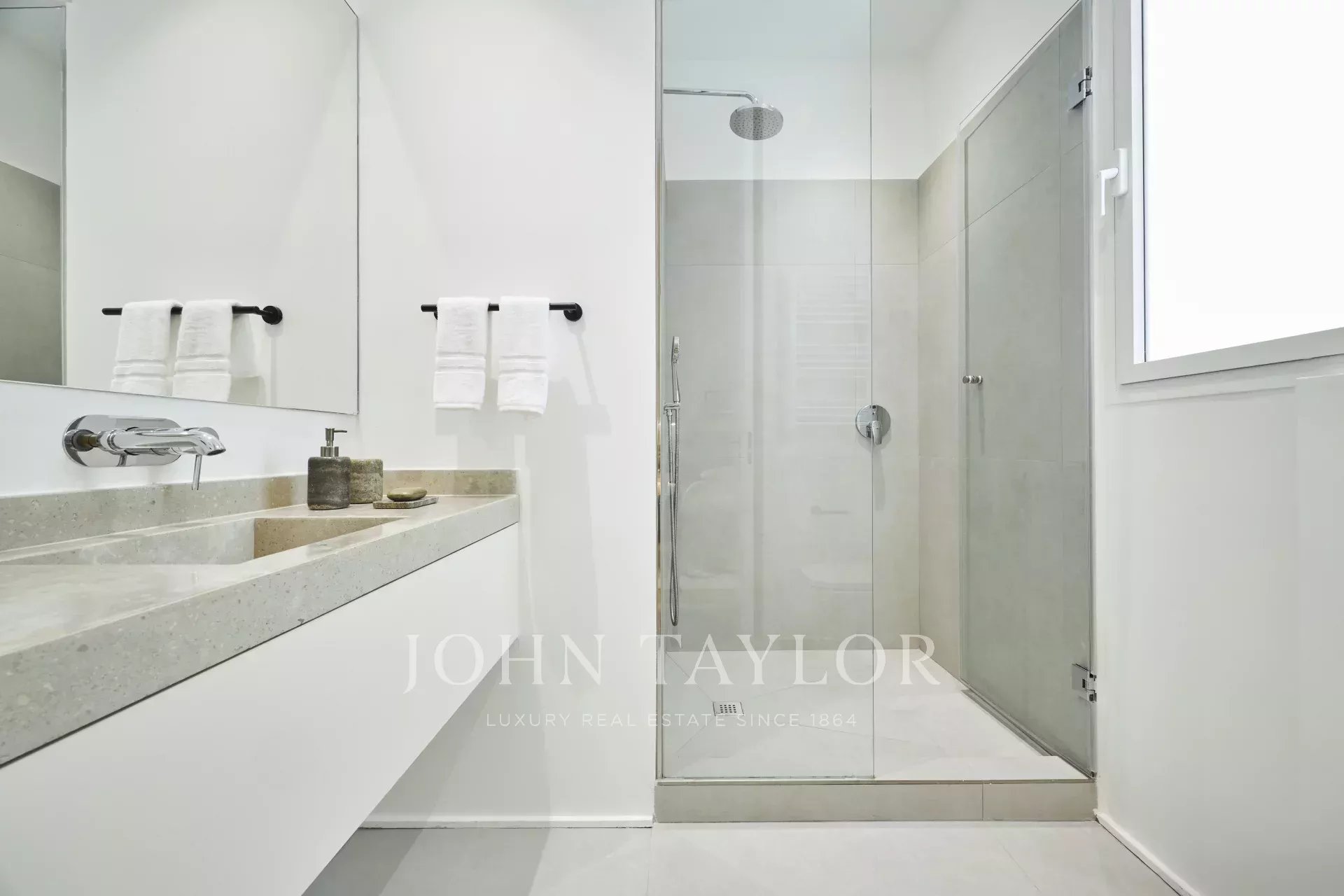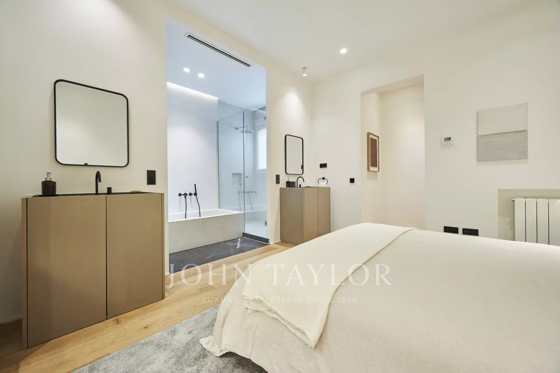 Cuenta con tres amplios dormitorios, cada uno con su baño en suite, un aseo de cortesía y un trastero, ofreciendo una distribución perfecta que potencia la luz natural y la elegancia de cada estancia.