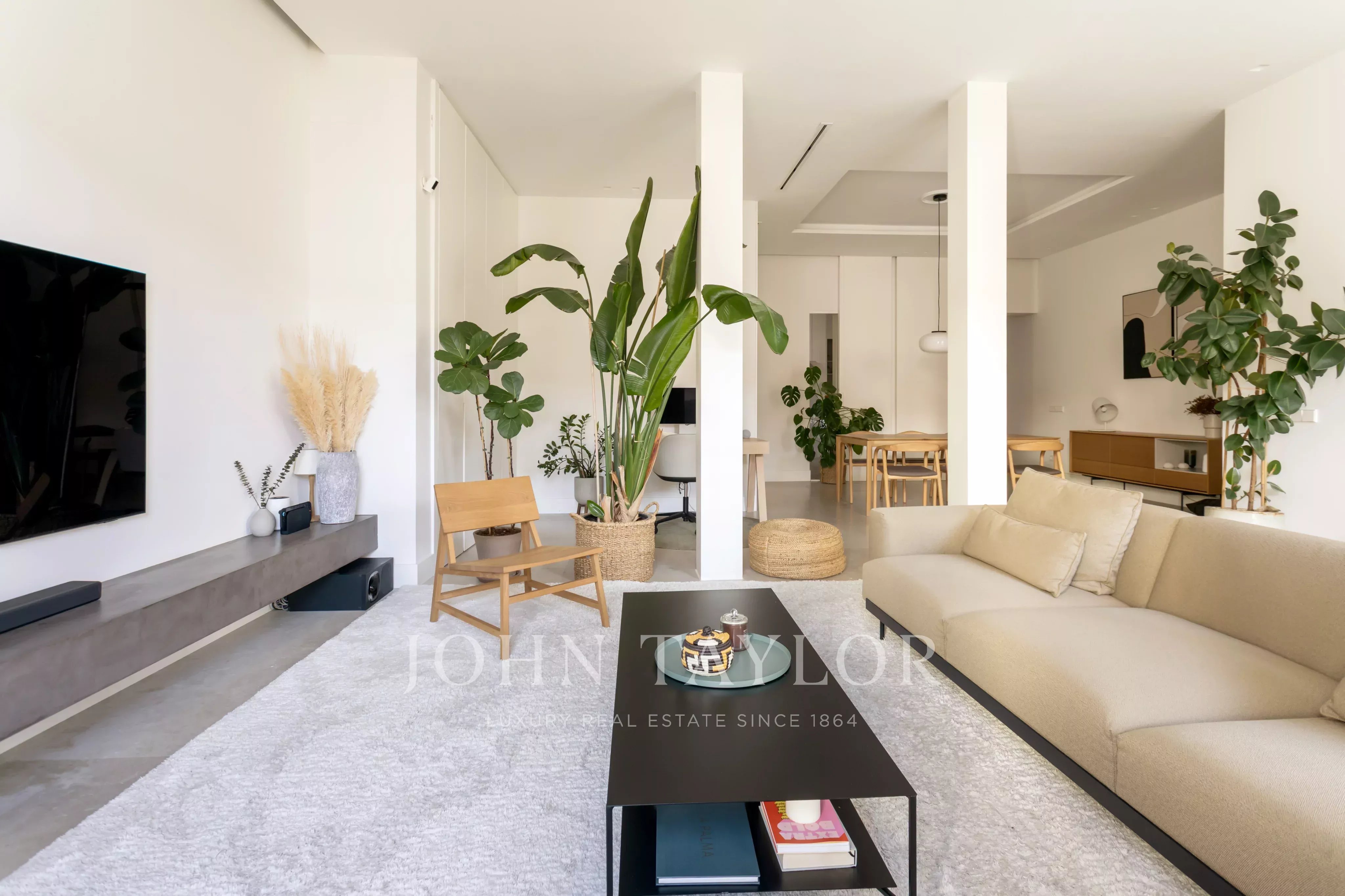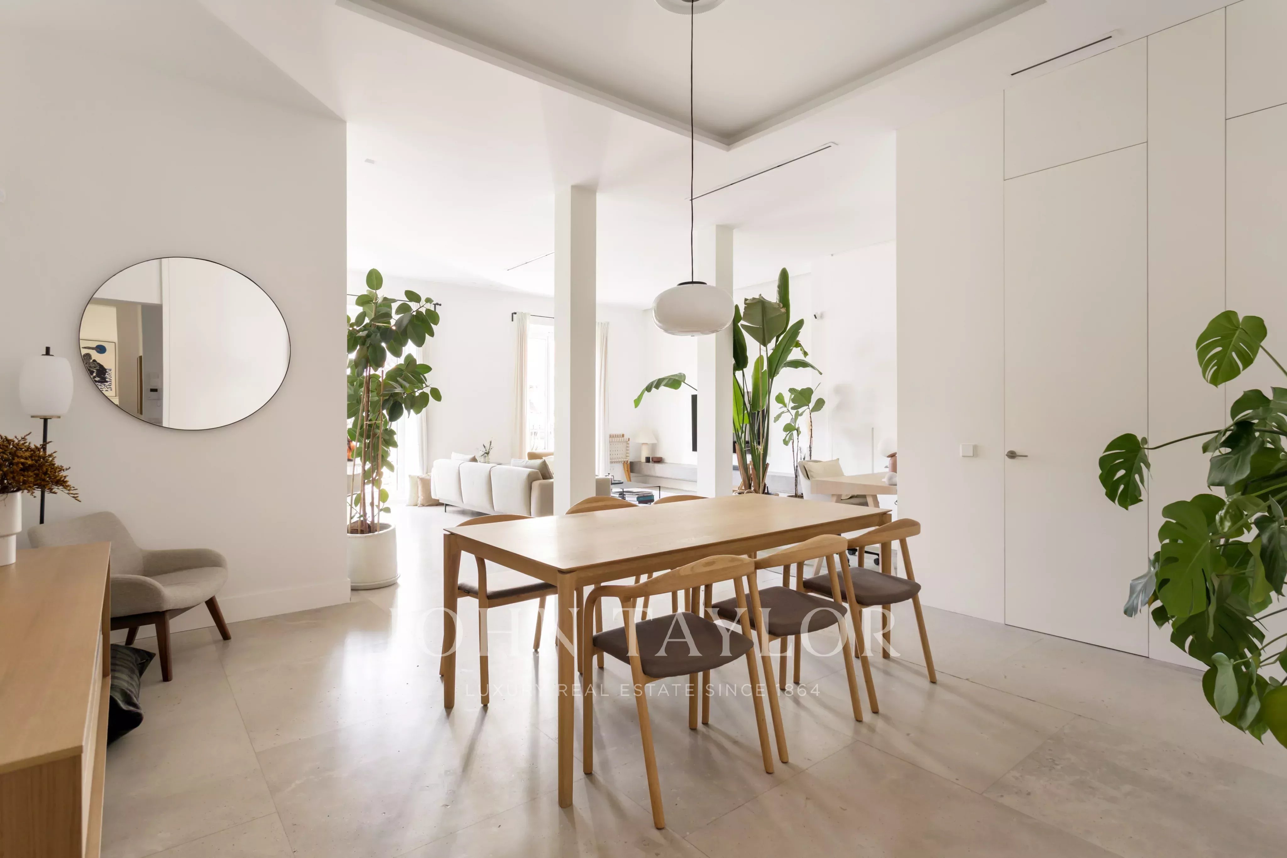 El gran salón, bañado por luz natural, refleja un ambiente elegante y acogedor, resaltando la amplitud y la comodidad de este espacio. Cada estancia ha sido diseñada para maximizar la sensación de libertad y bienestar, con ambientes generosos que permiten disfrutar de la vida urbana de manera sofisticada.