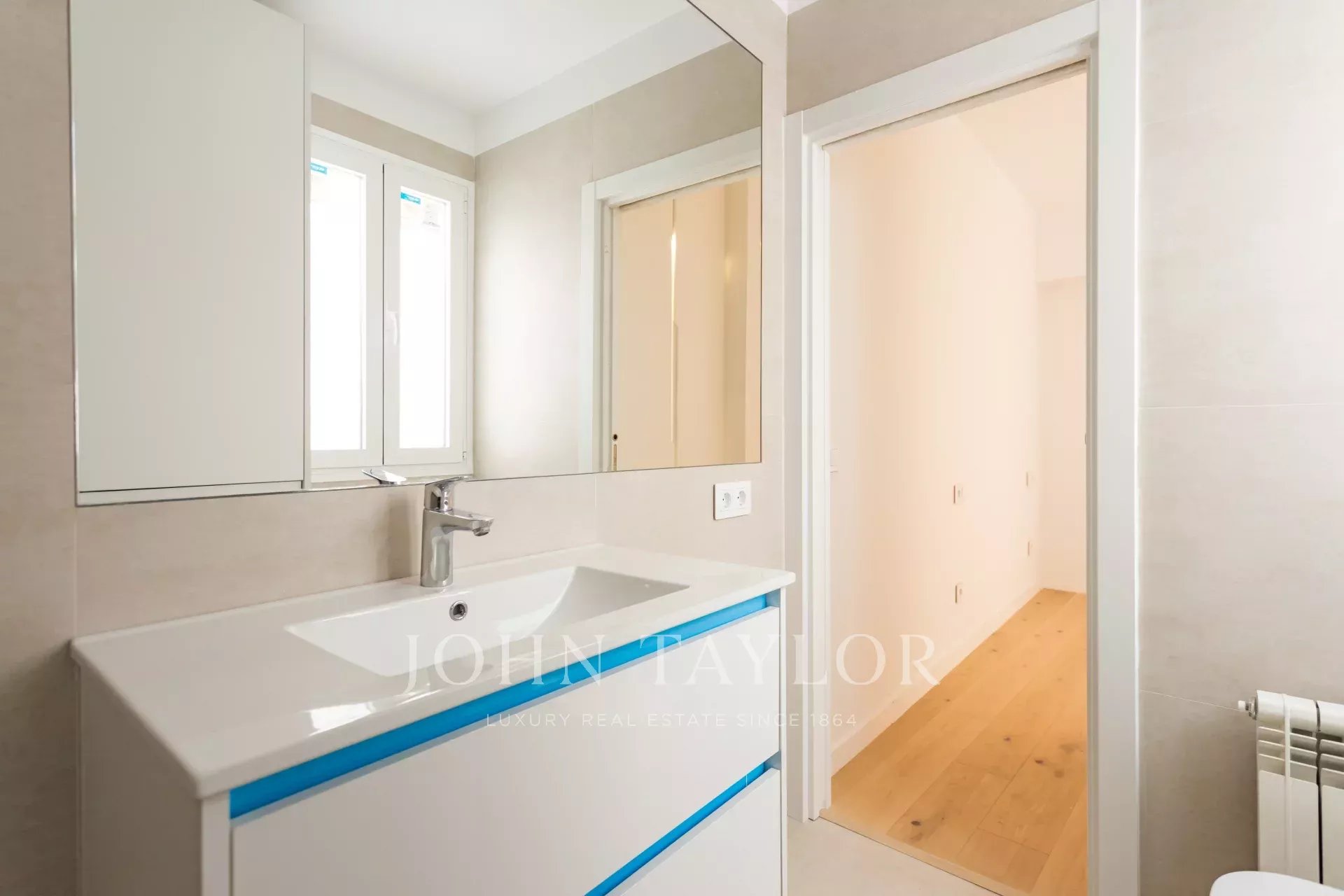 Con 89 m² catastrales y una distribución perfecta sin pasillos, el espacio ha sido concebido para aprovechar al máximo la luz y la amplitud. Su orientación sur y sus tres balcones a una calle arbolada llenan cada estancia de una luminosidad serena que realza los materiales nobles y la pureza del diseño.