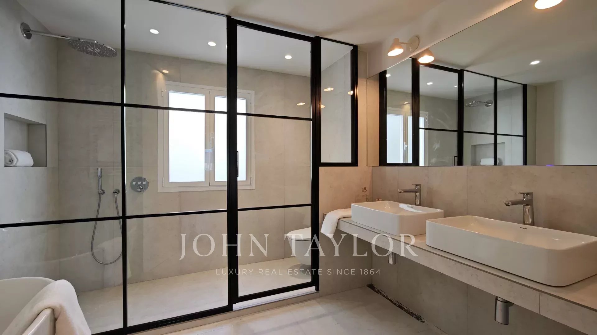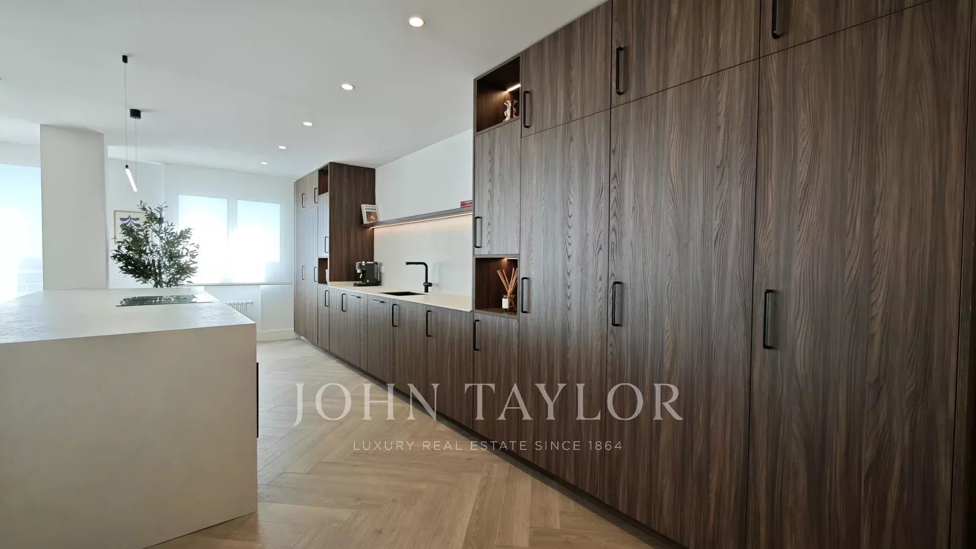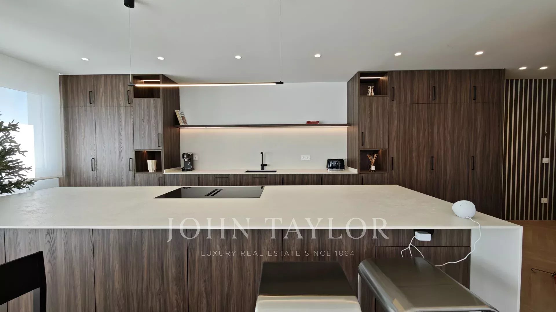 Cada material elegido responde a la excelencia: baños revestidos con porcelánico rectificado, griferías Hansgrohe, una bañera principal con iluminación indirecta que invita al relax. La tecnología refuerza la sensación de bienestar: persianas domotizadas, estores y luces automatizadas, climatización Daikin sectorizada y calefacción central con consumo individualizado.
