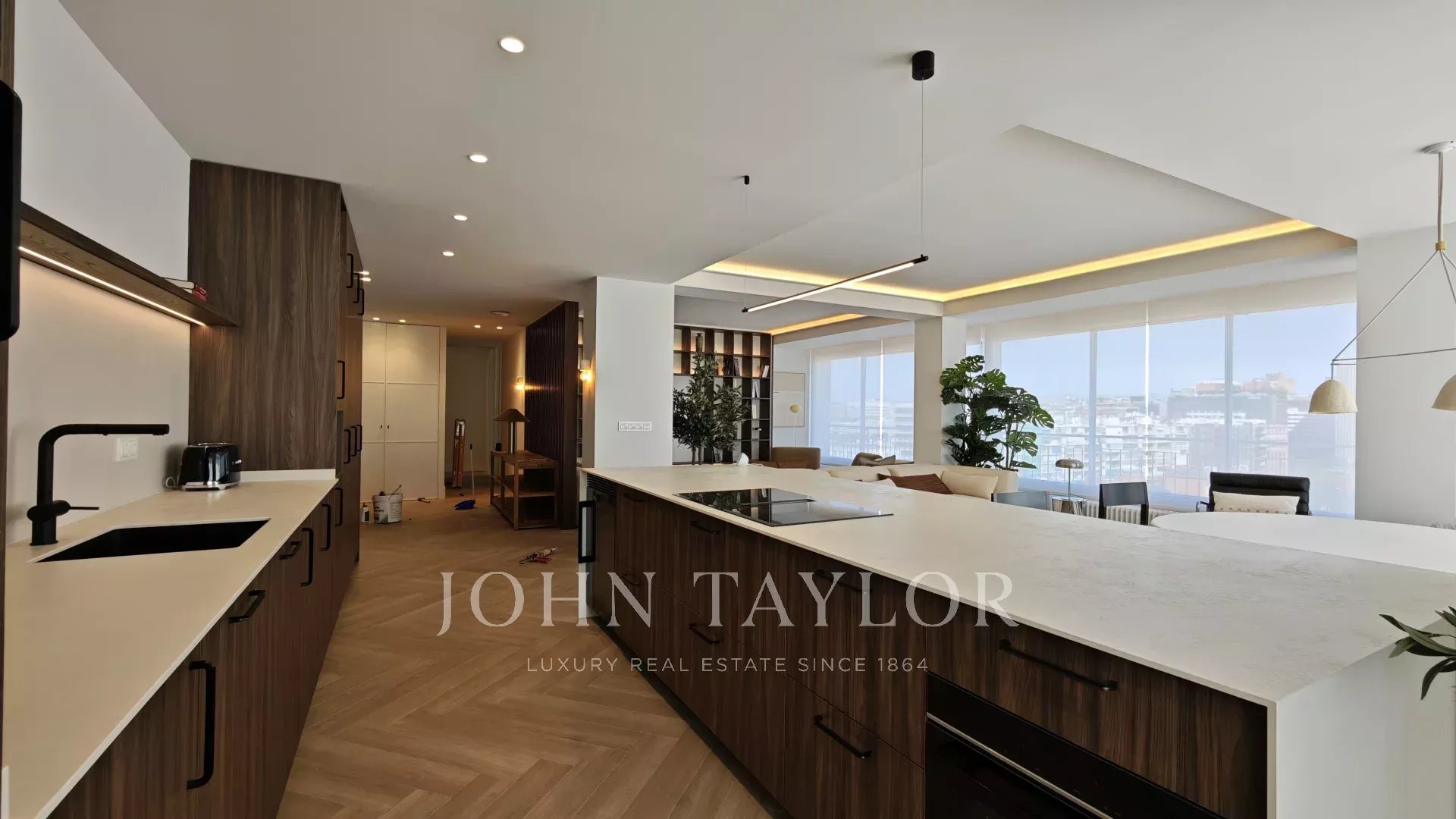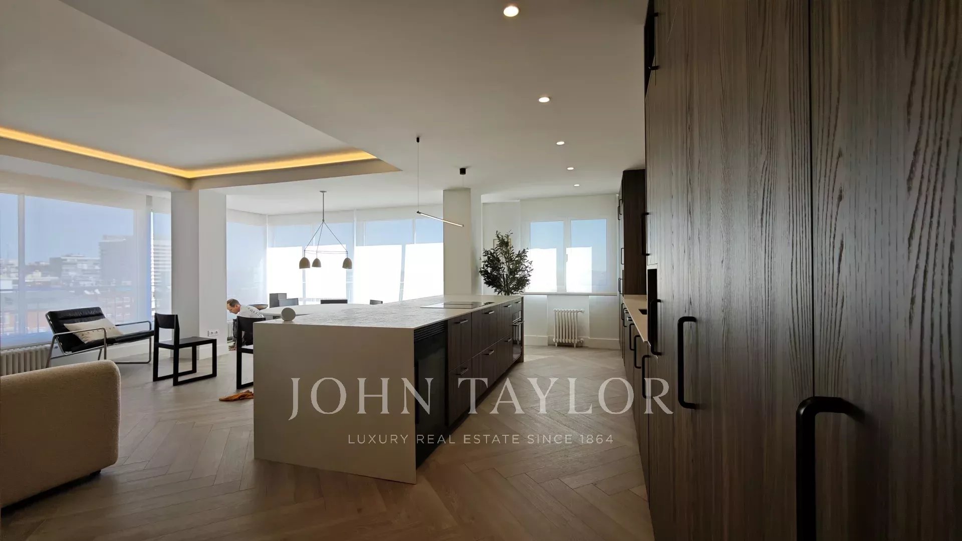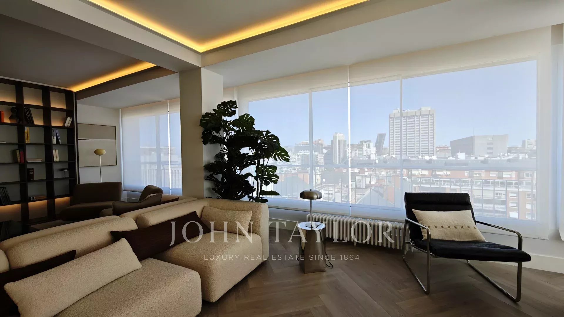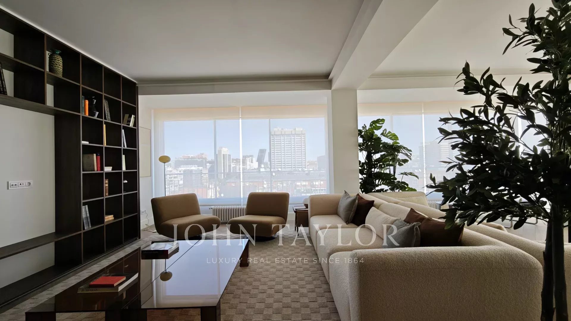En el corazón del Paseo de la Castellana, en una decimoquinta planta que domina el skyline madrileño, se encuentra una vivienda que redefine el concepto de lujo urbano. Sus 217 m² construidos se despliegan en una distribución equilibrada, concebida para quienes buscan diseño, confort y tecnología en un mismo espacio.