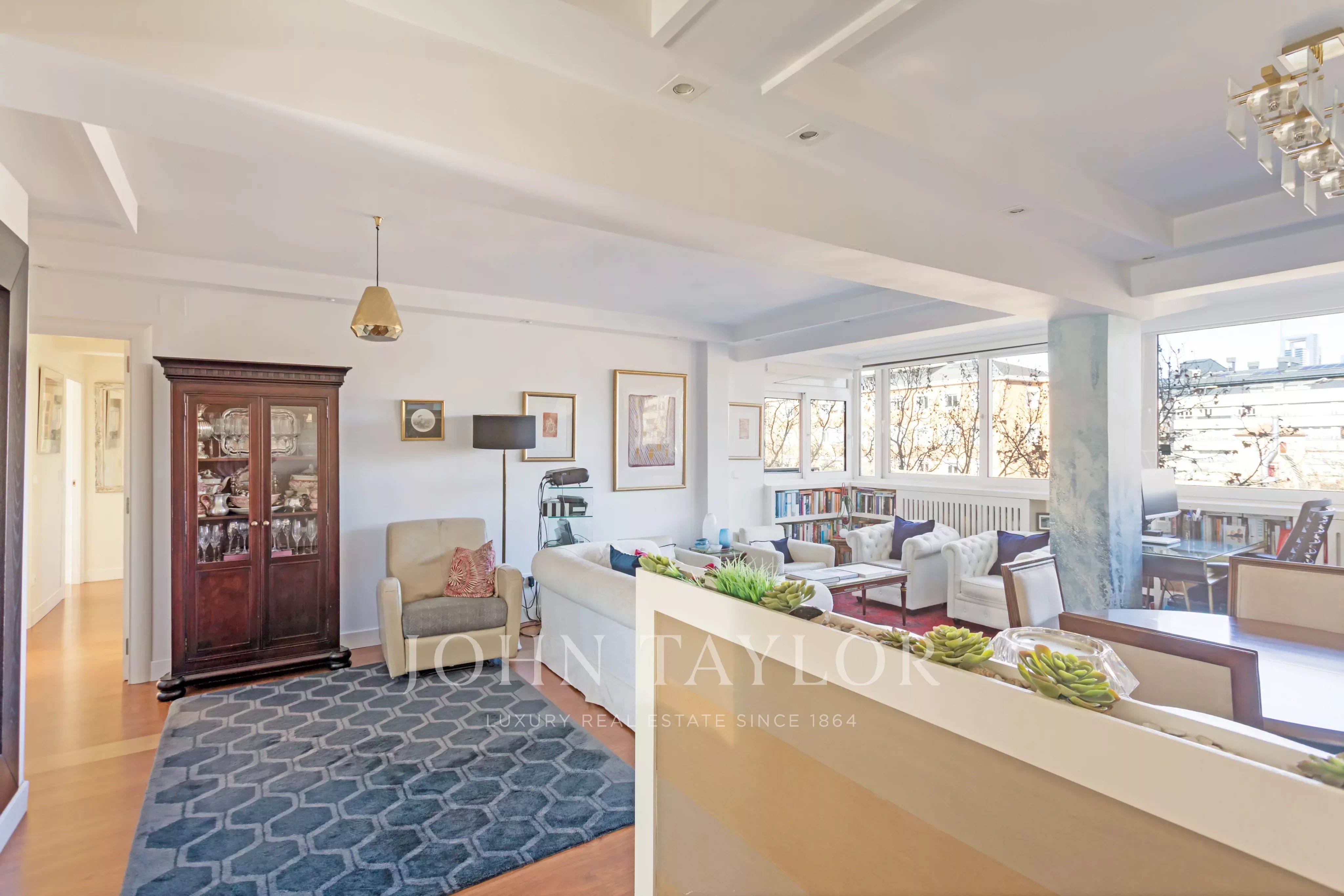La zona de estar con un acogedor salón bañado en luz natural gracias a los amplios ventanales que ofrecen vistas despejadas y gran luminosidad durante todo el día.