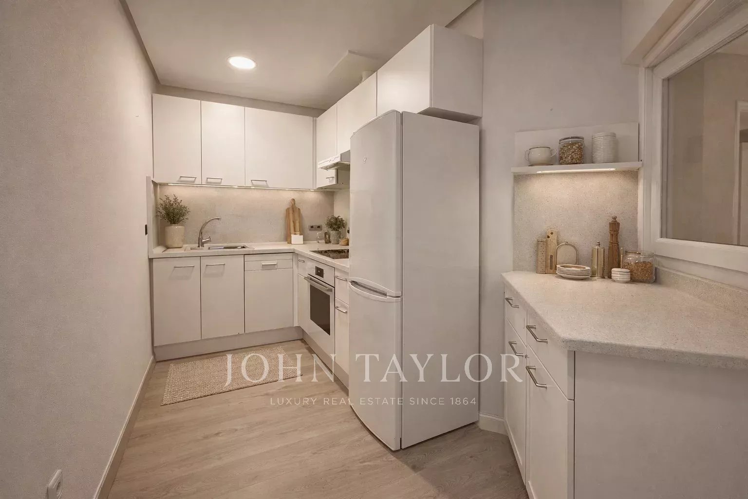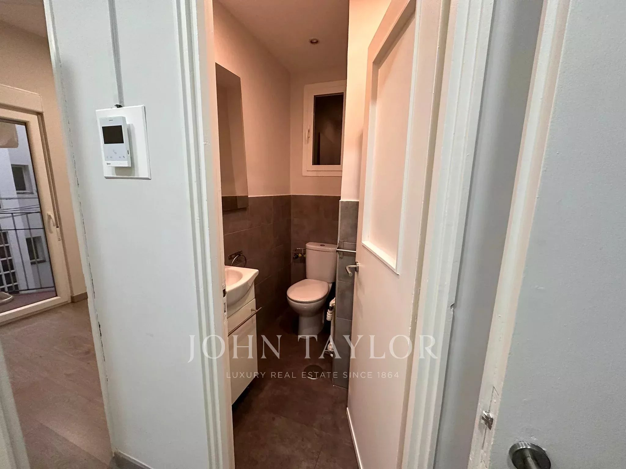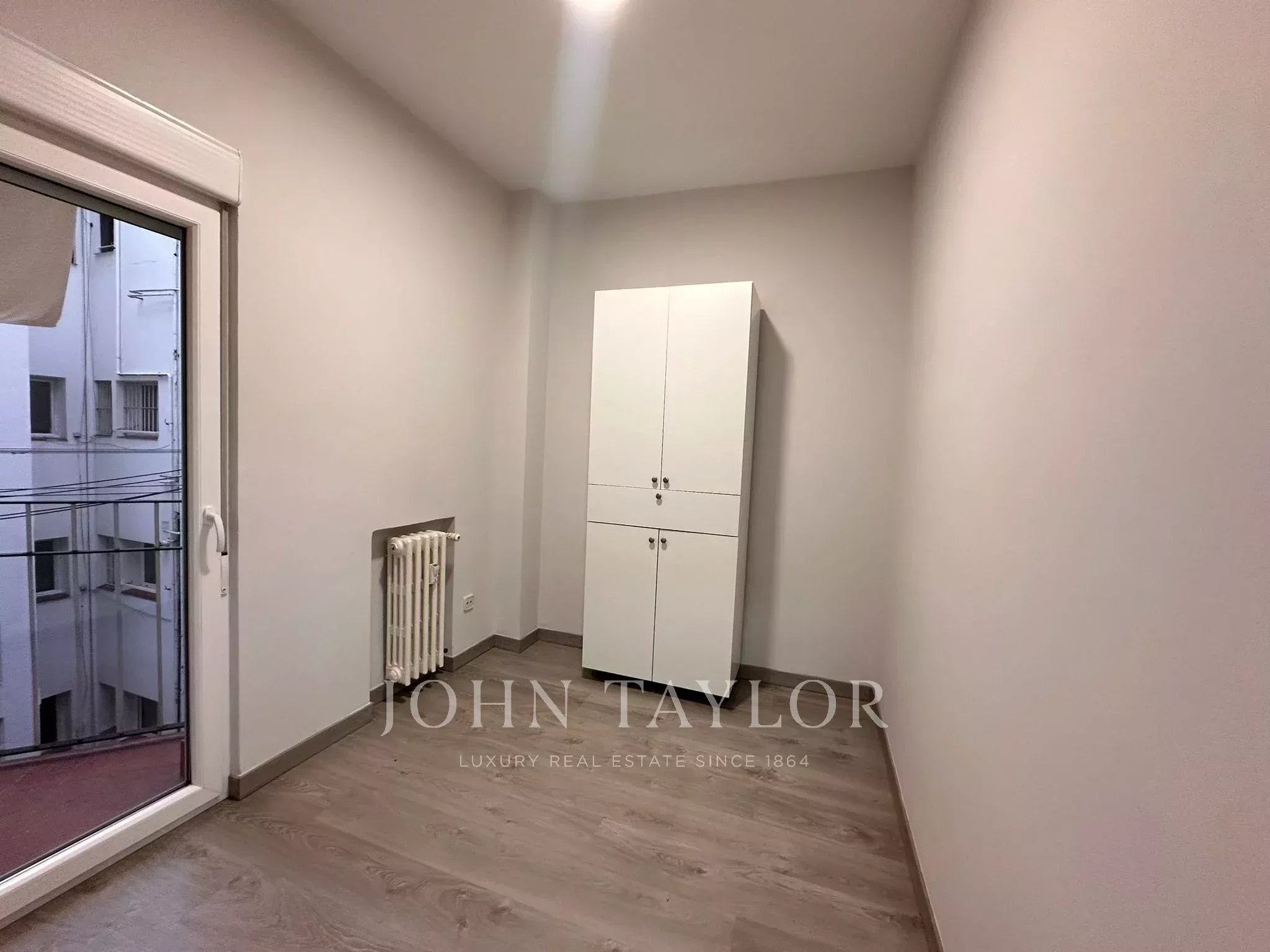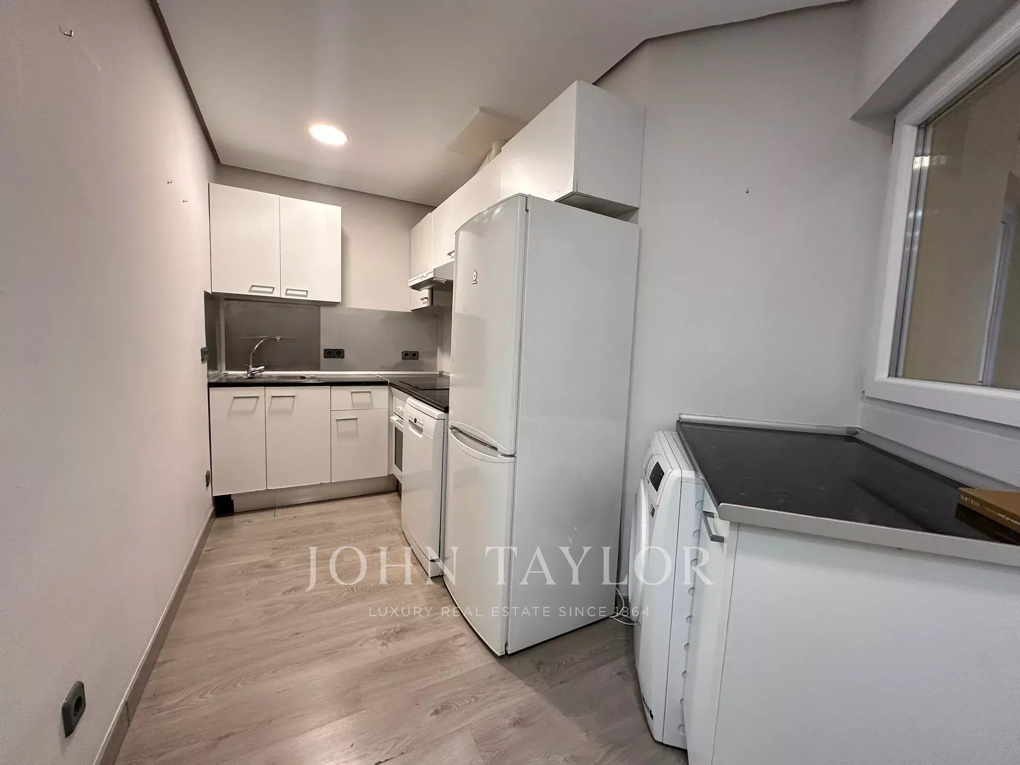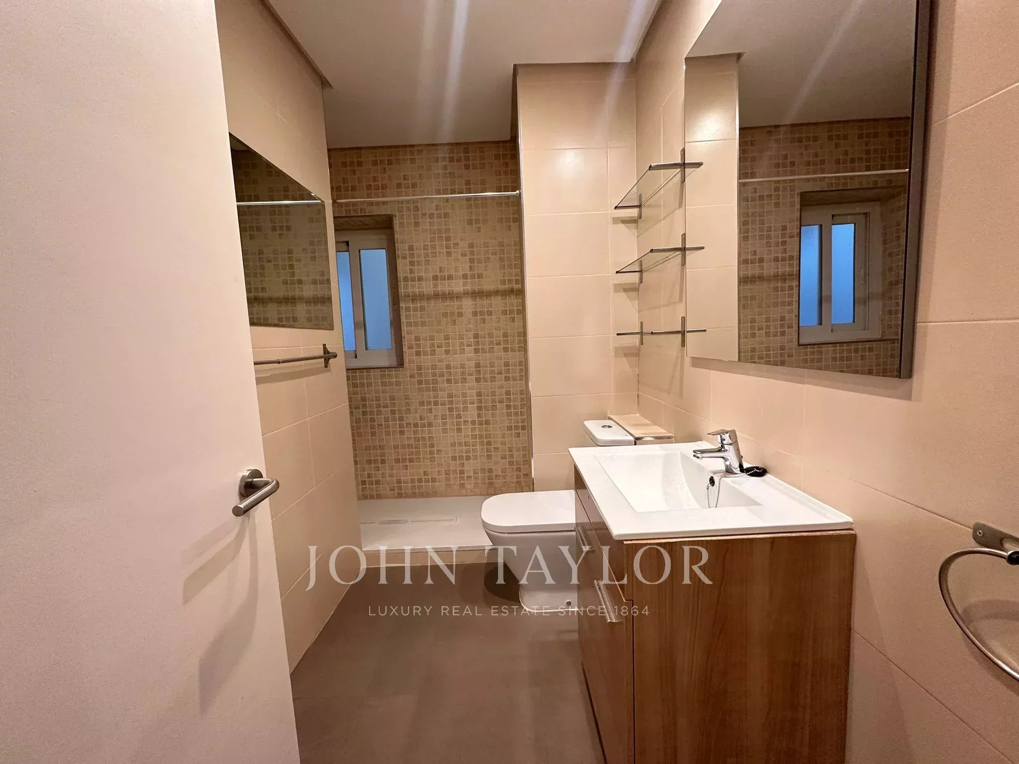 La vivienda dispone de un amplio recibidor, que articula de forma elegante la zona de día y la zona de noche. Desde él se accede a la cocina-office, completamente equipada con todos los electrodomésticos y dotada de videoportero. Junto a la cocina se encuentra un aseo con plato de ducha, recientemente reformado, así como una habitación auxiliar con salida a una terraza interior, actualmente utilizada como tendedero.