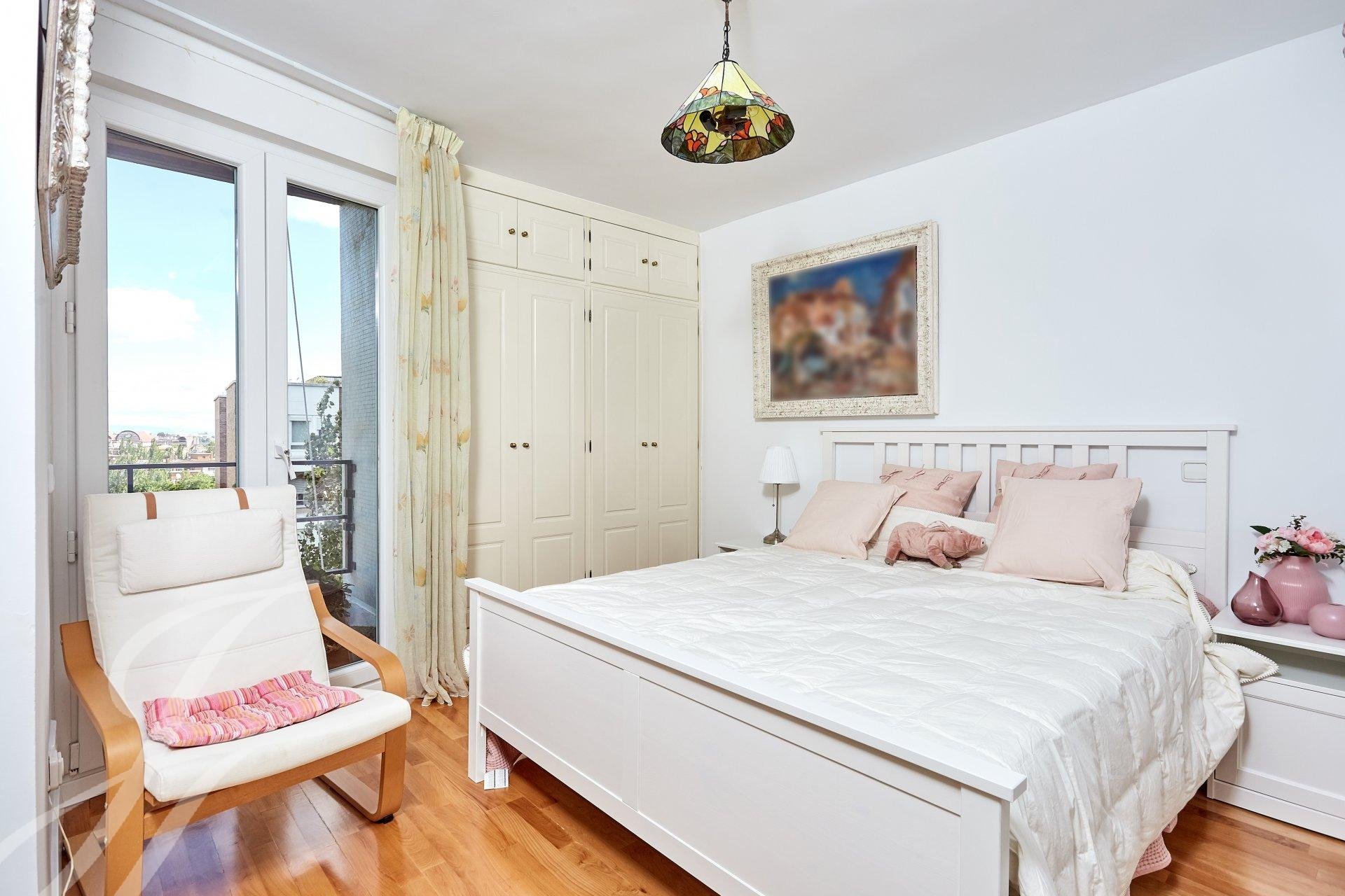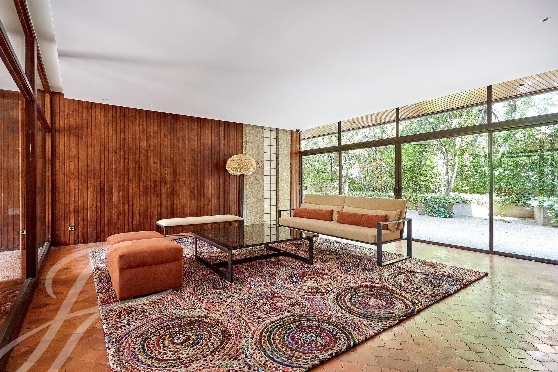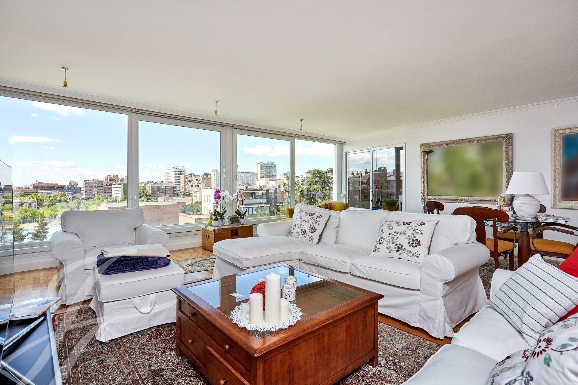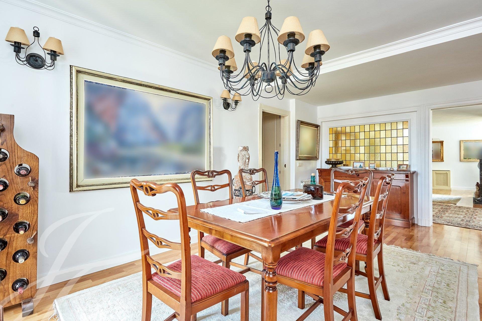 Accedemos a la propiedad mediante un luminoso hall con aseo de cortesía, que da acceso a una habitación que en la actualidad se usa como despacho personal. Nos adentramos en un amplio salón con tres ambientes dotado de amplios ventanales, uno de ellos con chimenea. A destacar excelentes vistas y luminosidad en estas estancias, debido a su orientación Sur. Avanzamos hacia el área de descanso, donde encontramos el dormitorio principal (originalmente dos) con vestidor, cuarto de baño de mármol en suite y una pequeña terraza además de dos dormitorios con salida a otra terraza a los que da servicio un cuarto de baño.