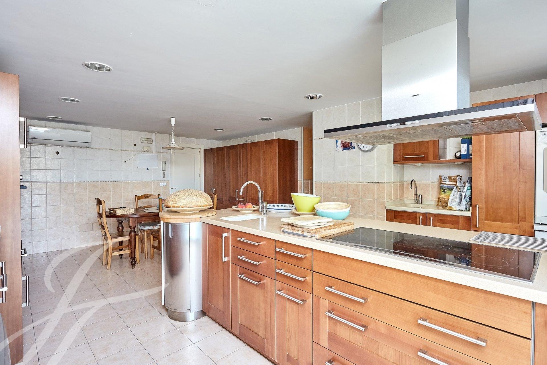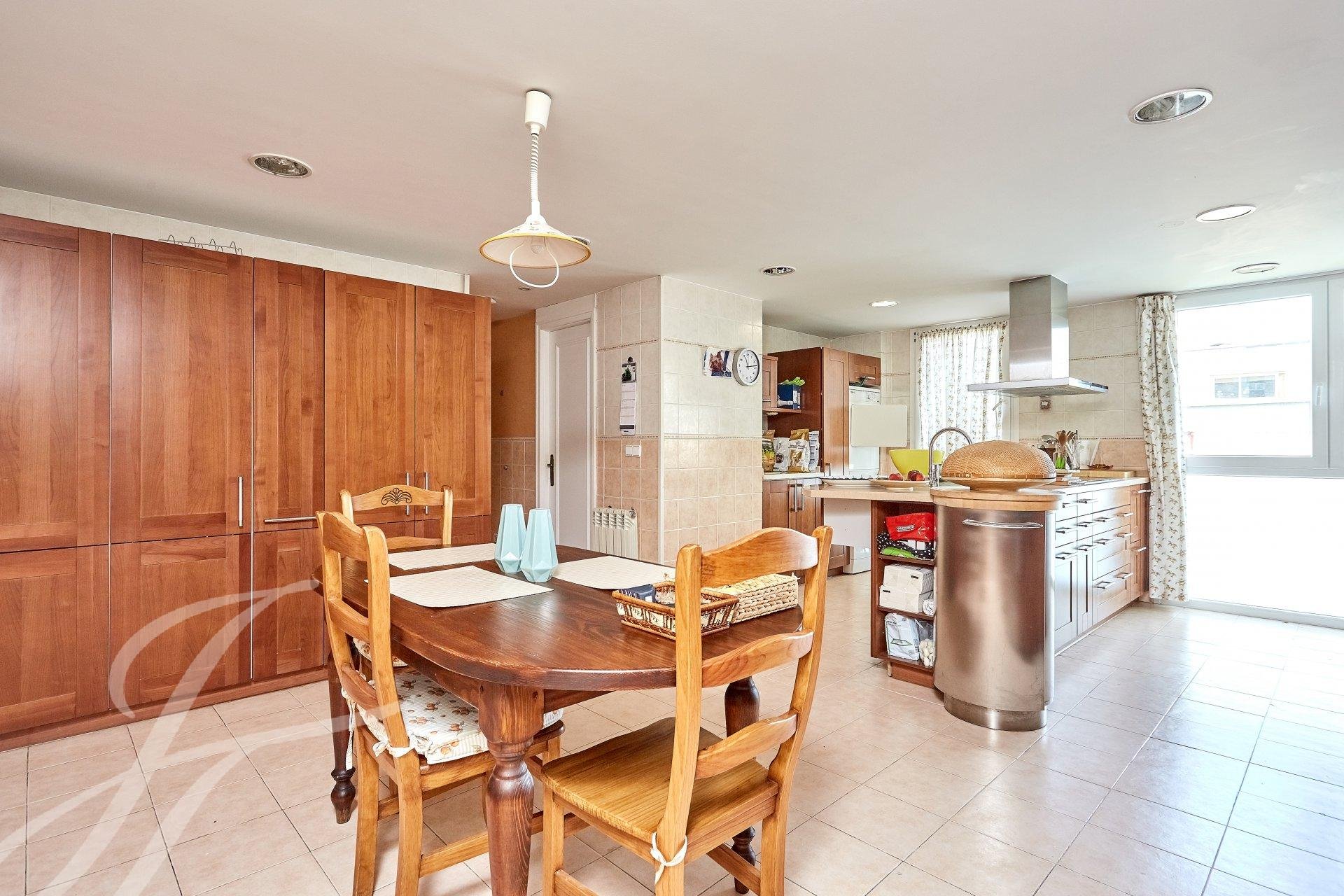 Dejando atrás la zona de descanso accedemos al comedor con acceso directo a amplia zona de cocina con office y habitación de servicio con cuarto de baño independiente.