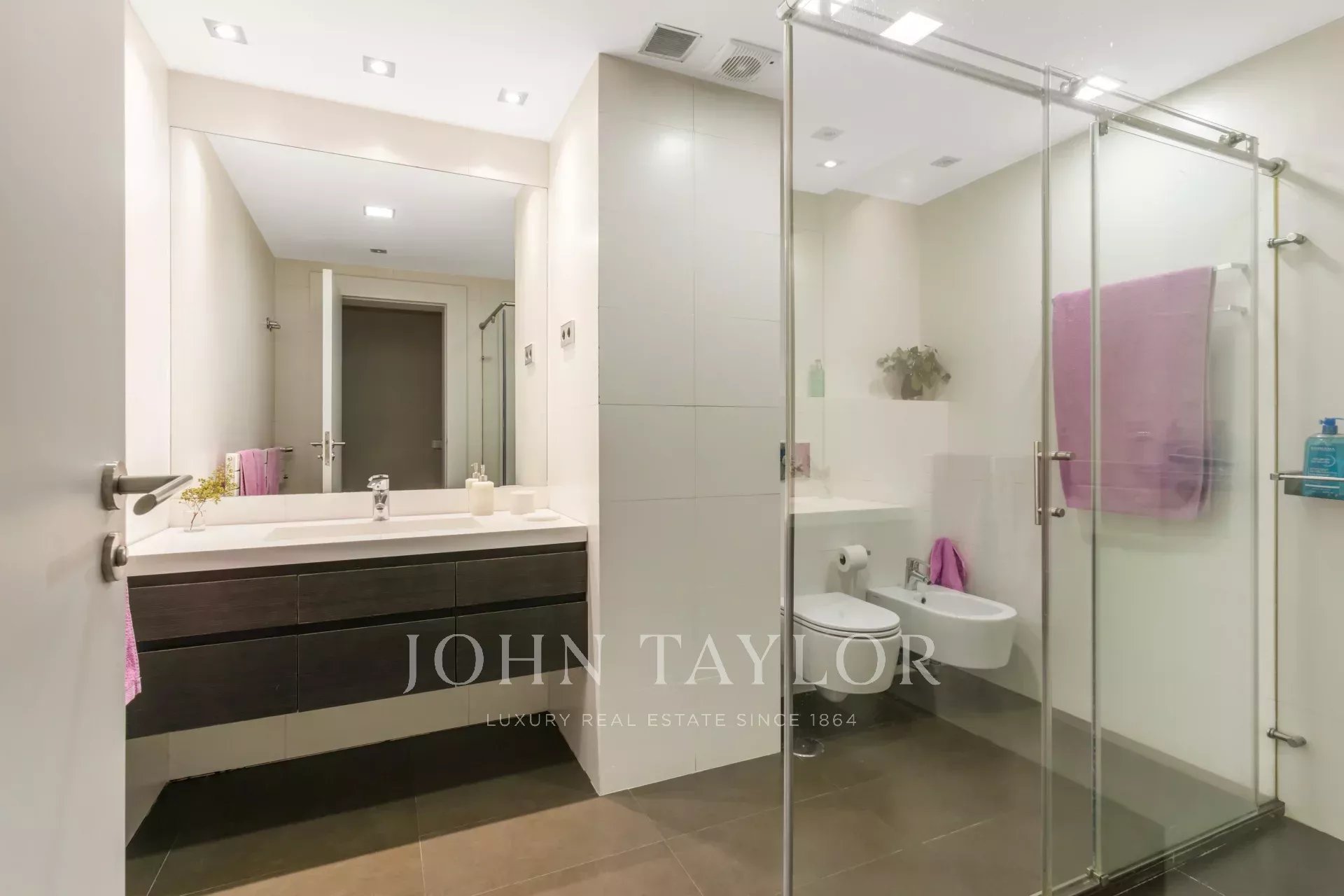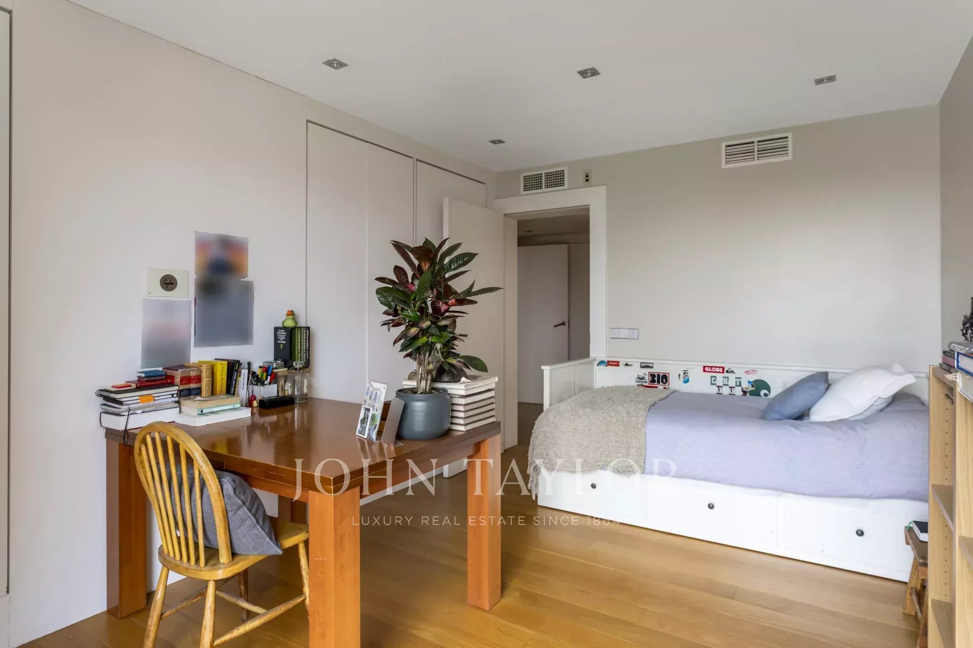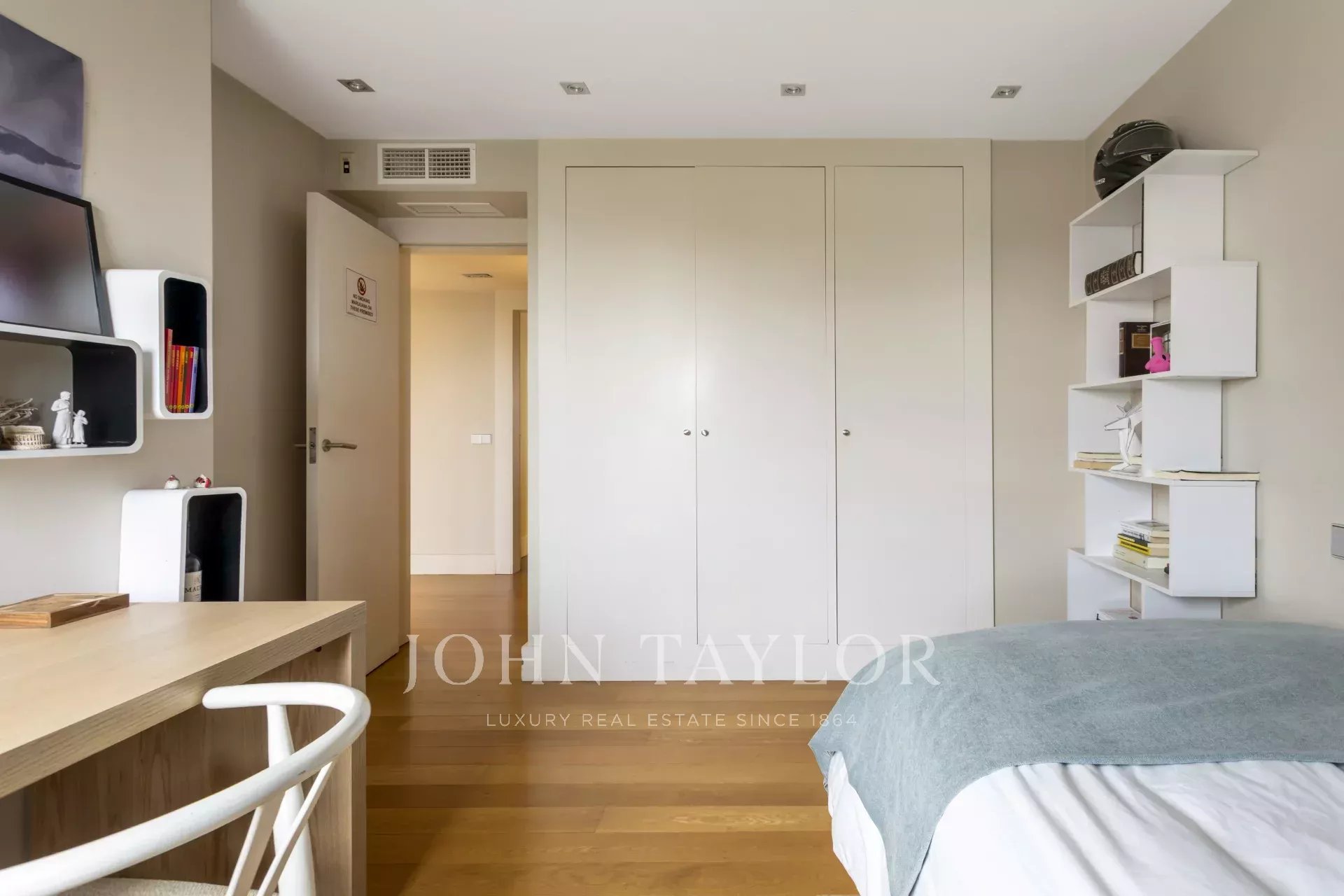 El área de descanso esta compuestas por cuatro espléndidos dormitorios, dormitorio principal con cuarto de baño en suite y vestidor, dos cuartos de baño adicionales en distribuidor para dar servicio a los tres dormitorios restantes. Amplia capacidad de almacenamiento debido a gran número de armarios repartidos por el piso. Calefacción individual y aire acondicionado por conductos en toda la propiedad.