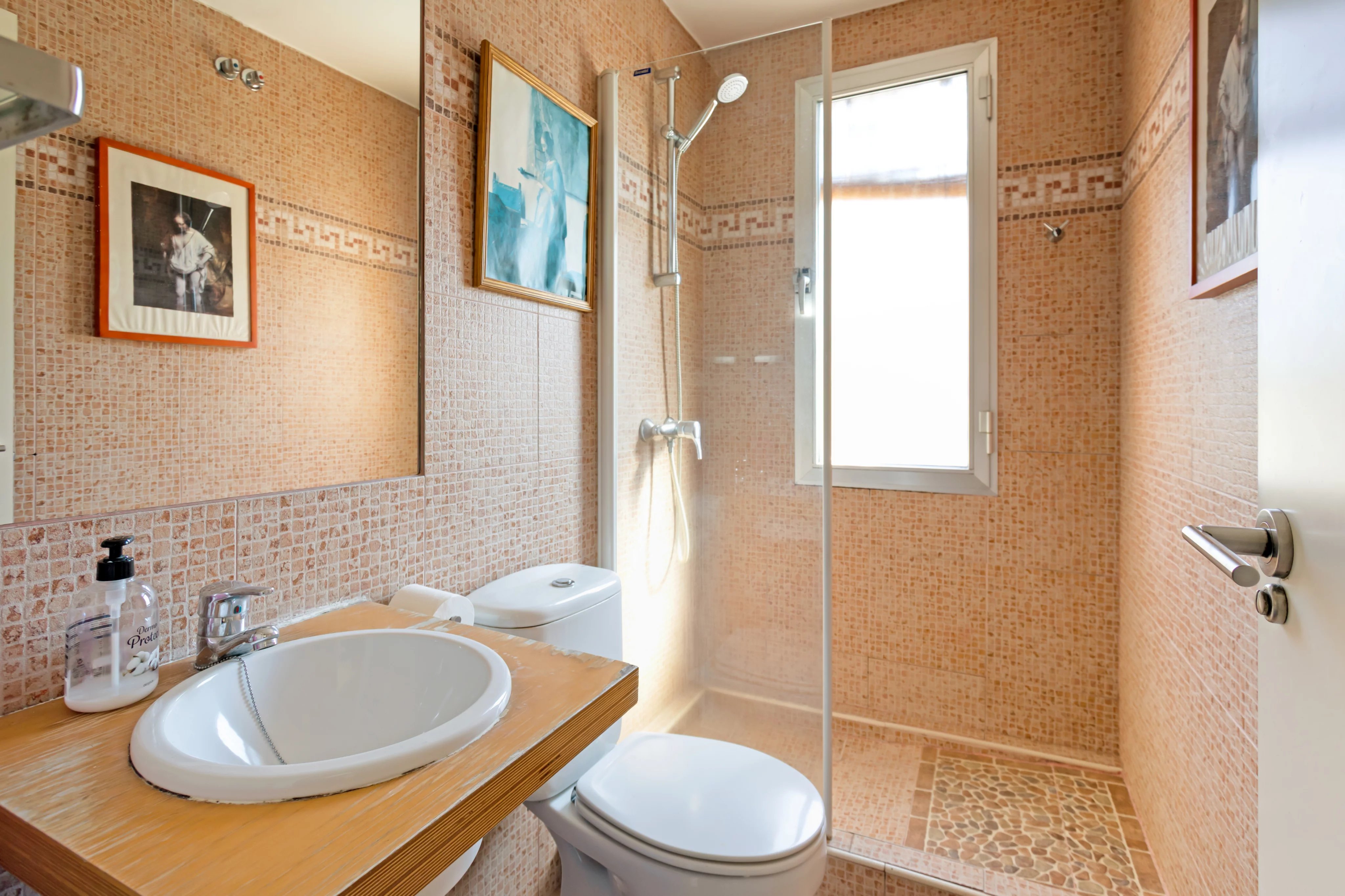 La zona de descanso ofrece tres dormitorios, dos de ellos con baño en suite, configurando un espacio íntimo y confortable. Un tercer baño completa la vivienda, pensado para invitados o como apoyo al dormitorio adicional.