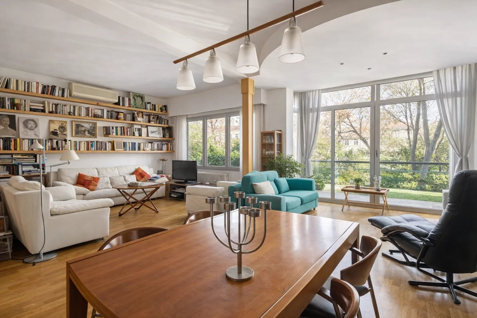 Ubicada en una finca completamente renovada, esta luminosa propiedad de 128 m² destaca por su cuidada distribución y su doble orientación, que garantiza luz natural durante todo el día. La zona de día se articula en torno a un amplio salón-comedor con distintos ambientes, concebido para disfrutar y recibir, mientras que la cocina, espaciosa y funcional, incorpora un agradable office orientado al sur.