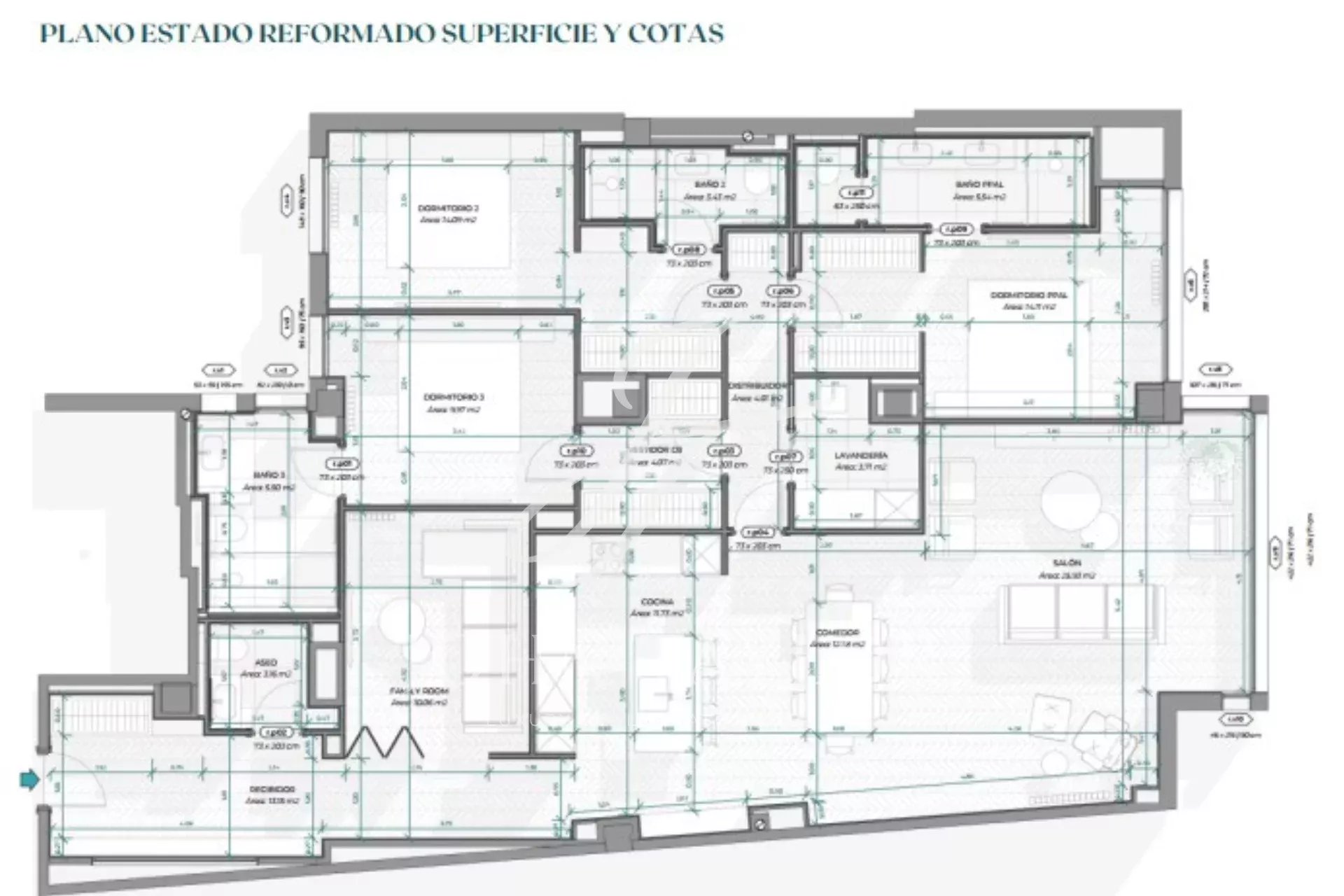 La vivienda cuenta con tres dormitorios, tres baños completos y un aseo de cortesía, con una distribución equilibrada que prioriza el confort y la funcionalidad. Cada espacio ha sido concebido para ofrecer amplitud, privacidad y una conexión fluida con el exterior.