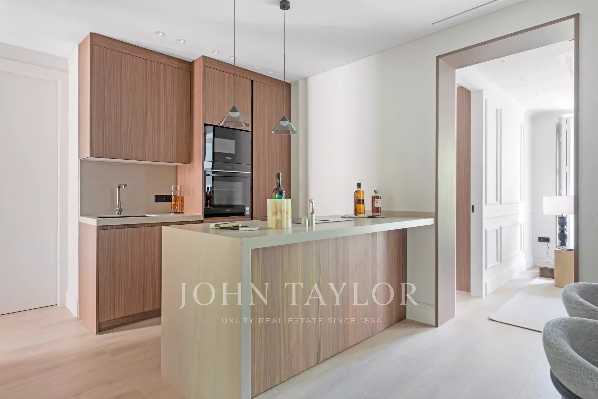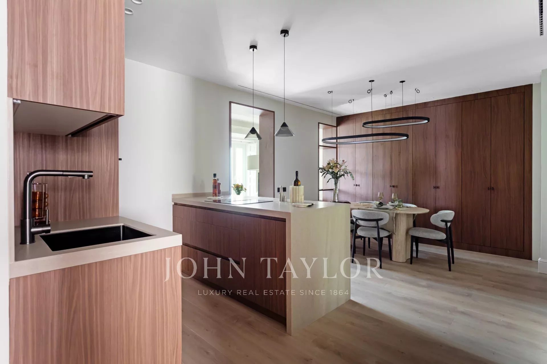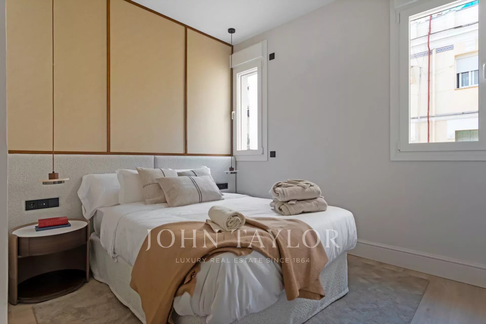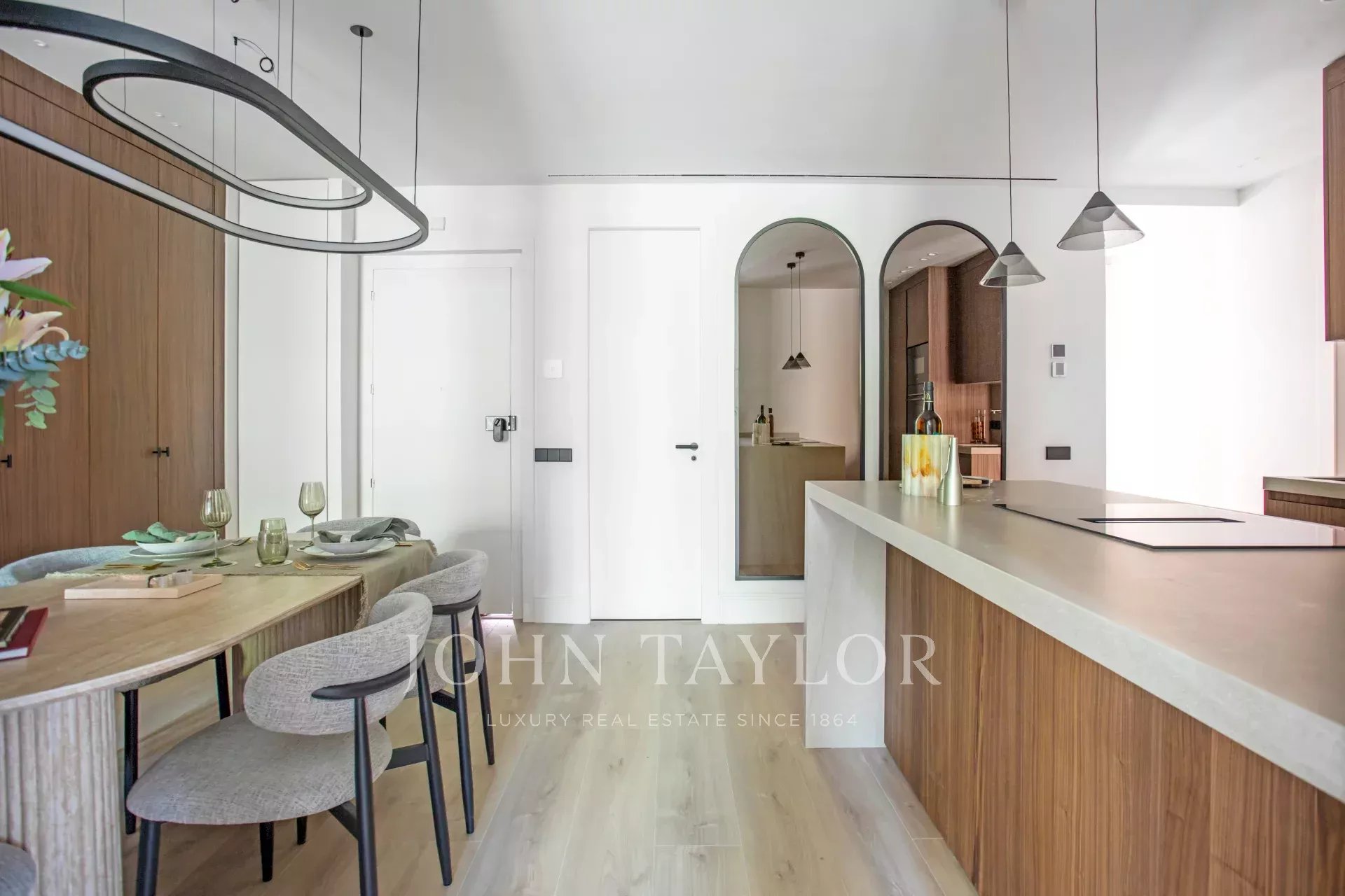 Con una superficie construida de 119 m², la propiedad se distribuye de forma funcional y elegante. Al entrar, nos encontramos con el comedor y la cocina abierta totalmente equipada con electrodomésticos de alta gama, integrada pero discretamente separada del coqueto salón que goza de 2 balcones a la calle con vistas despejadas y exposición oeste.