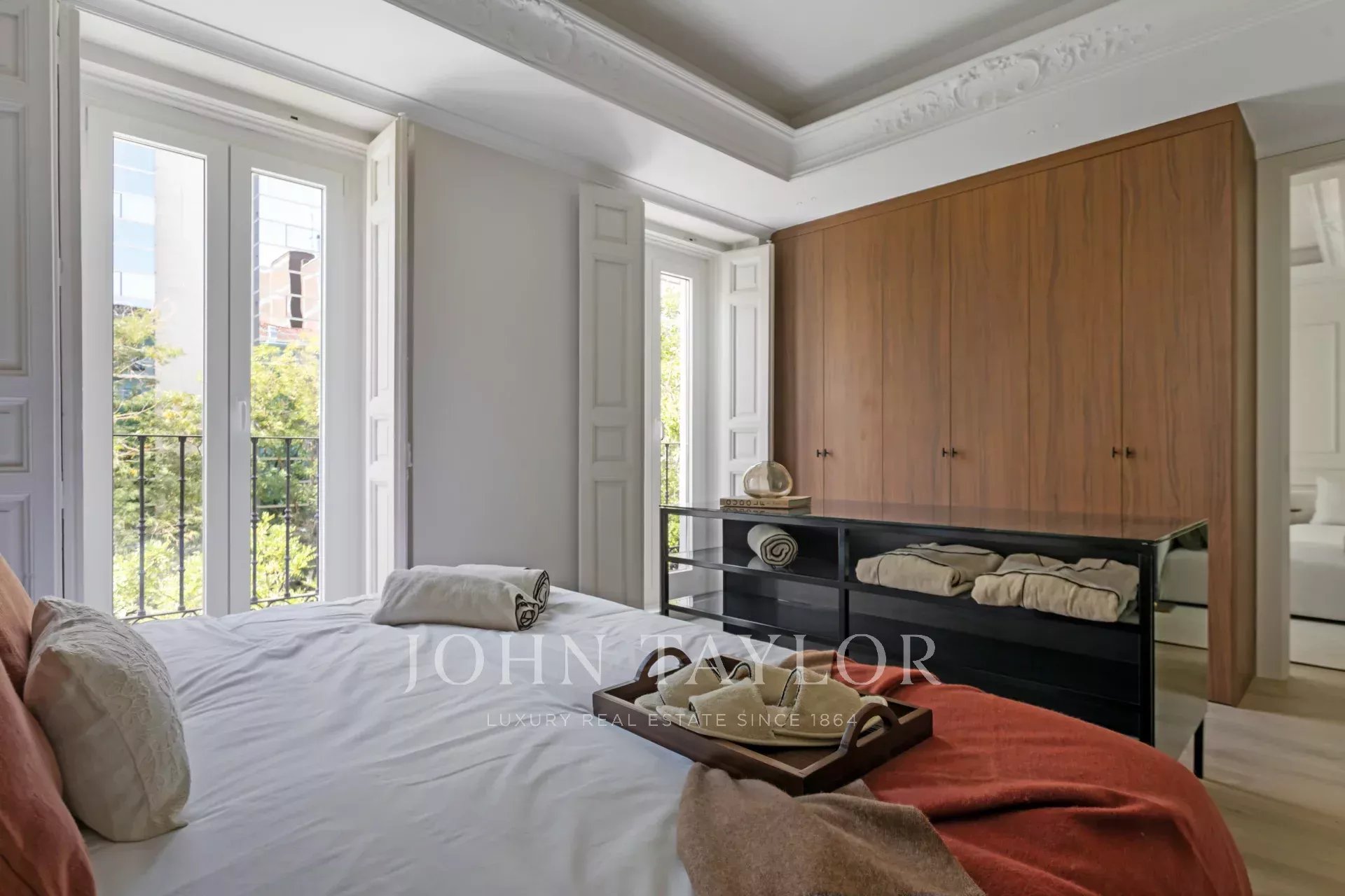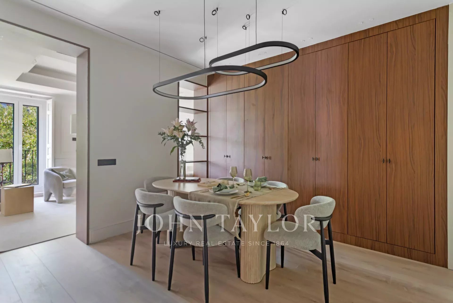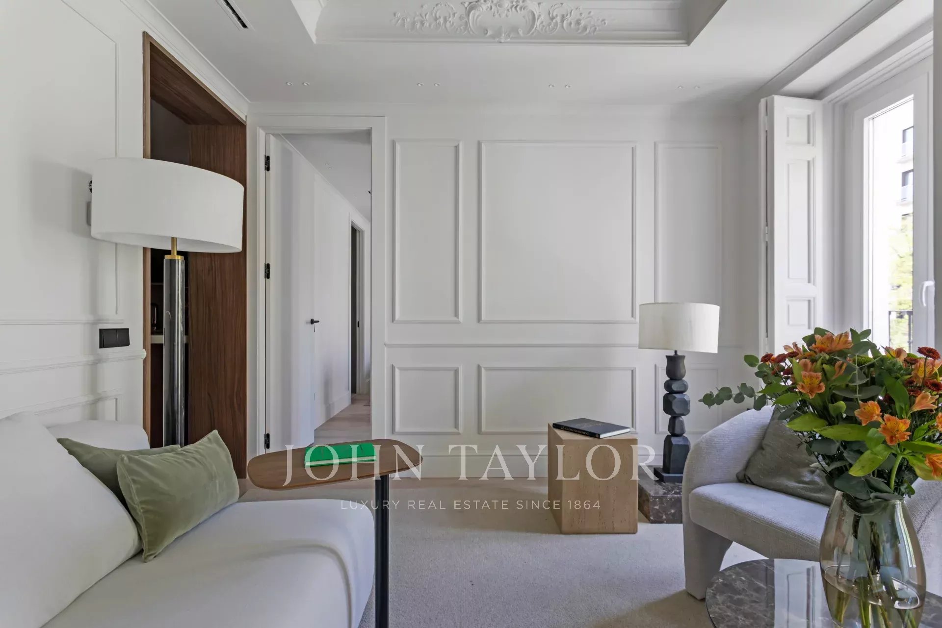 John Taylor presenta esta elegante propiedad completamente reformada y amueblada a estrenar, situada en la segunda planta de una finca clásica de la Calle Santa Engracia, una de las calles más emblemáticas del codiciado barrio de Almagro.