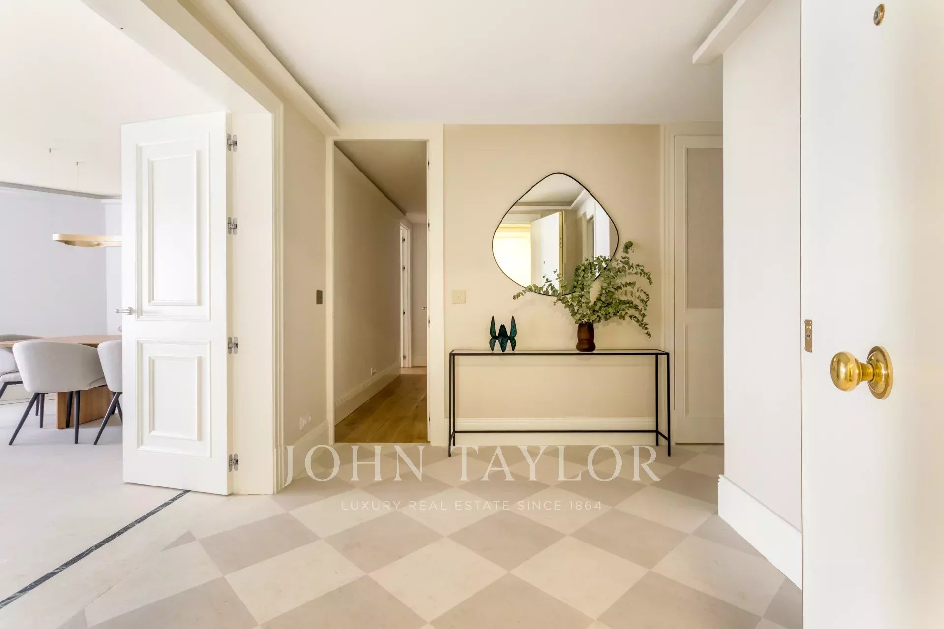La propiedad se encuentra en una finca del 1980 tranquila y bien mantenida, con conserje y todos los servicios en las inmediaciones, en una de las zonas más exclusivas y demandadas de Madrid, rodeada de embajadas, edificios singulares y a escasos minutos del Paseo de la Castellana. La propiedad incluye en el precio una plaza de garaje en la misma finca.
