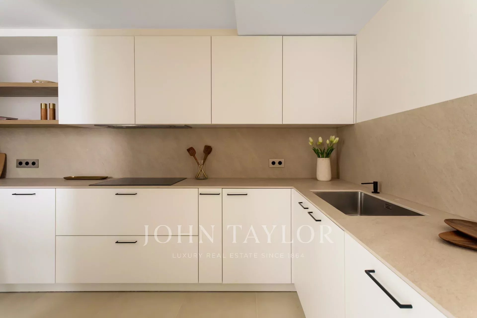 La zona de día se compone de un amplio y elegante salón-comedor. La cocina, completamente equipada, combina diseño y funcionalidad, con electrodomésticos de última generación y acabados en madera natural.