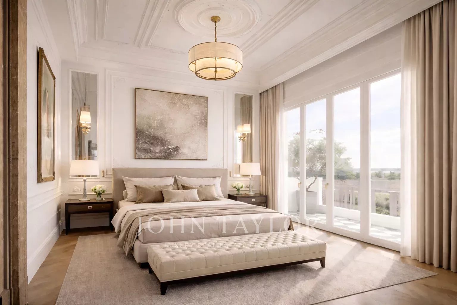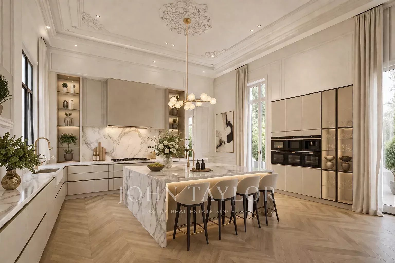 La zona de descanso permite desarrollar tres amplios dormitorios dobles en suite, cada uno con su propio baño, ofreciendo múltiples posibilidades de redistribución según las necesidades del futuro propietario. La propiedad se completa con una zona de servicio en doble altura, con acceso independiente, aportando funcionalidad y privacidad.