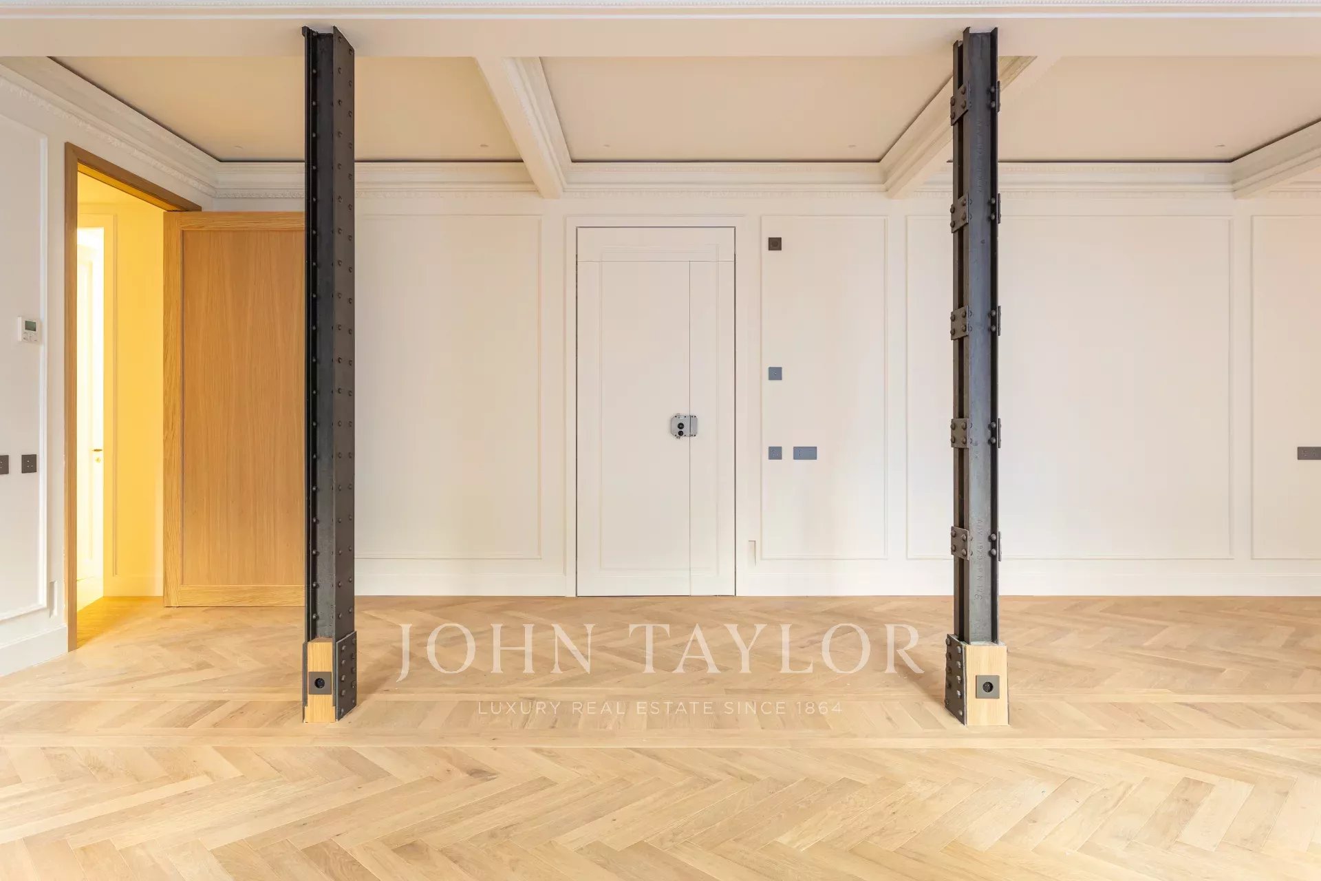 El piso tiene 4 habitaciones completas y amplias, con armarios empotrados. Los baños son de marmol y griferia de alta Calidad. La cocina ha sido diseñada por Gunni&Trentino y completamente equipada con electrodomésticos Miele, como merece la categoría de esta propiedad. La cocina es semi-incorporada y tiene una lavandería independiente, equipada con lavadora y secadora, espacio de plancha y tendedero.