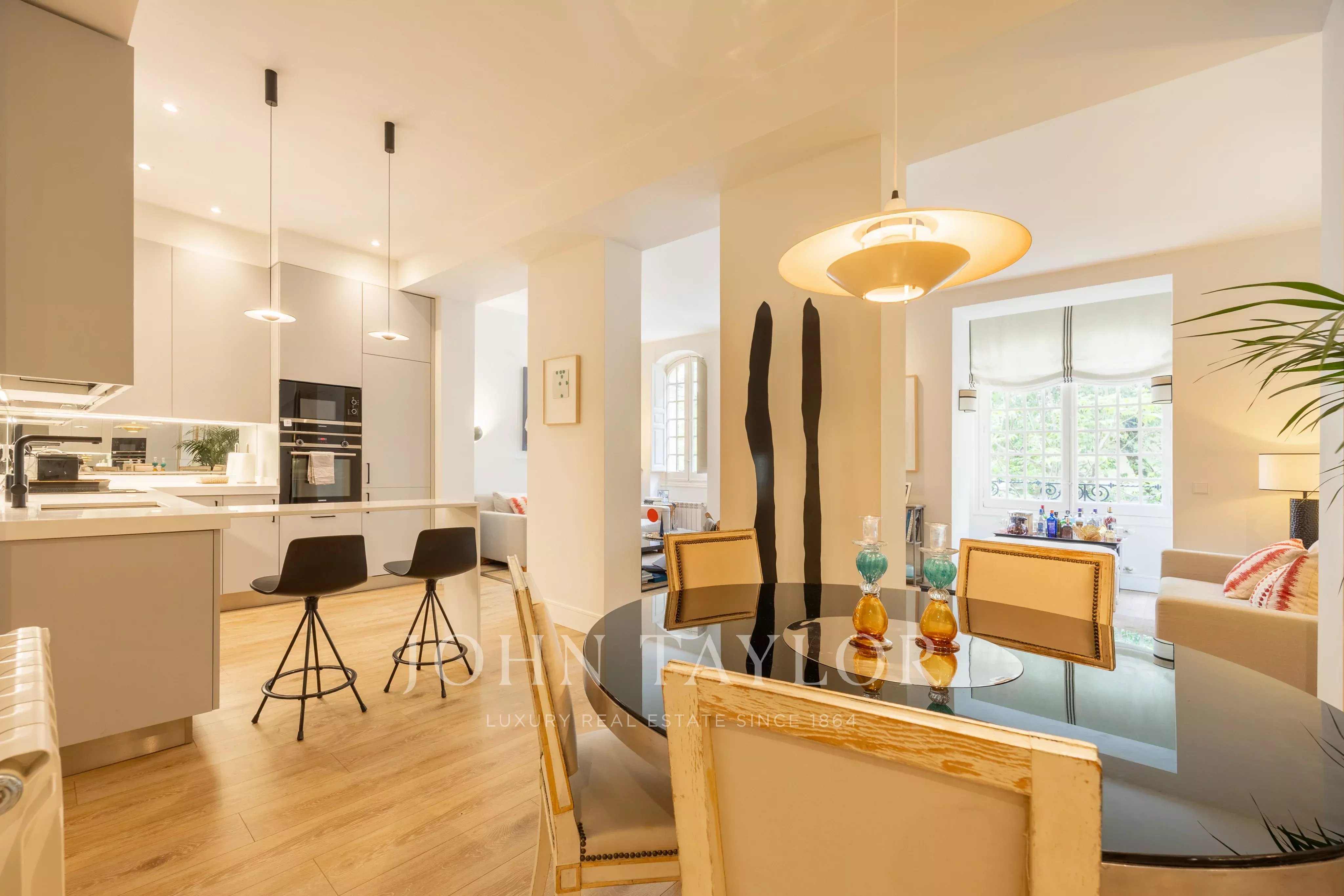 Se presenta completamente amueblada, con un cuidado diseño interior y equipada con aire acondicionado, garantizando confort durante todo el año. La cocina, de líneas modernas, se integra de forma armoniosa en el conjunto, equipada con electrodomésticos de alta gama y pensada tanto para el día a día como para momentos de encuentro.