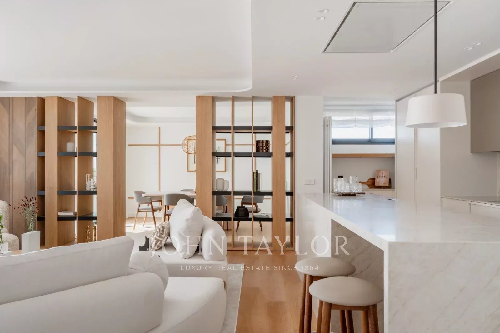 La reforma de la vivienda se ha llevado a cabo buscando maximizar las inigualables vistas. La zona social está formada por salón, comedor y cocina abierta, completamente equipada y con gran isla central. Toda esta zona tiene salida a la terraza, con zona de estar, mesa de comer y por supuesto espectaculares vistas.