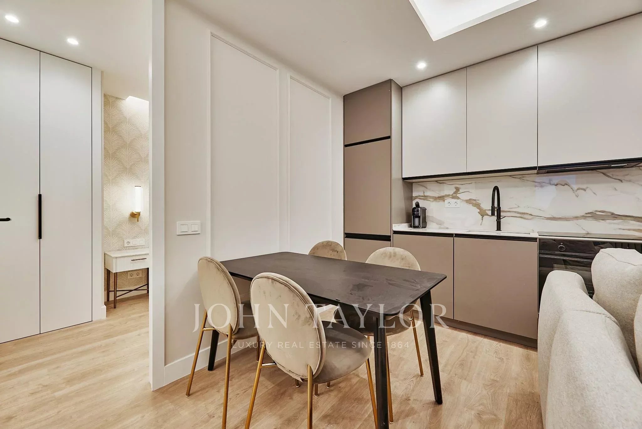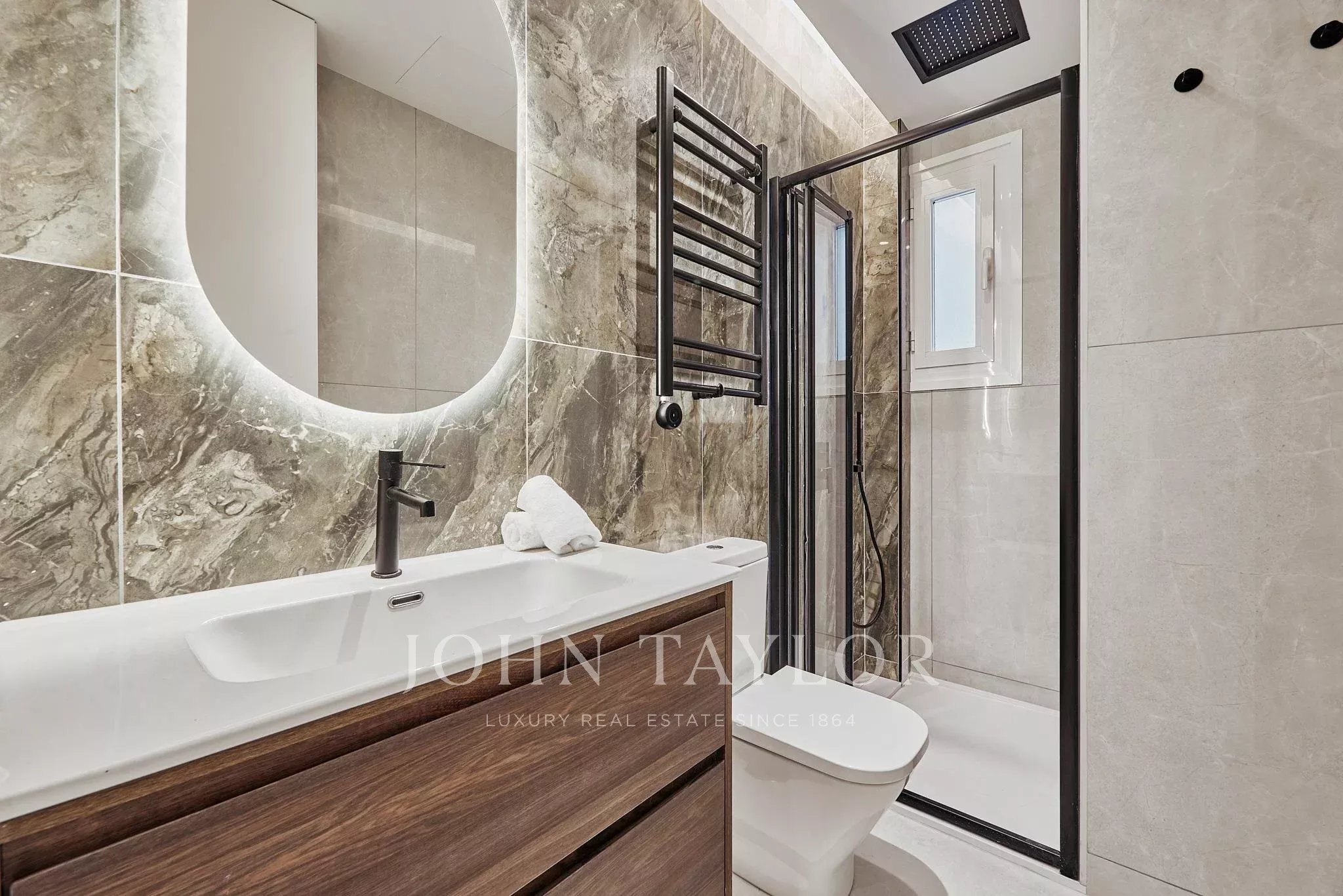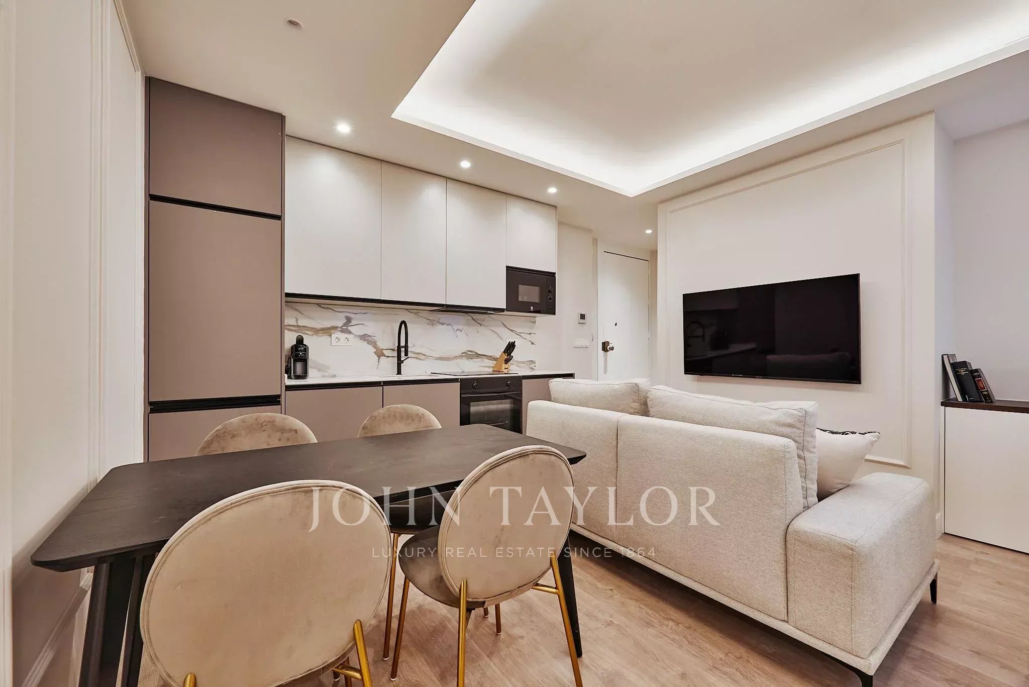Situada en una segunda planta interior de un edificio clásico con ascensor y portería, la vivienda ha sido reformada con un diseño funcional y cuidado, optimizando cada espacio. El salón con cocina integrada, completamente equipada, crea un ambiente práctico y acogedor.