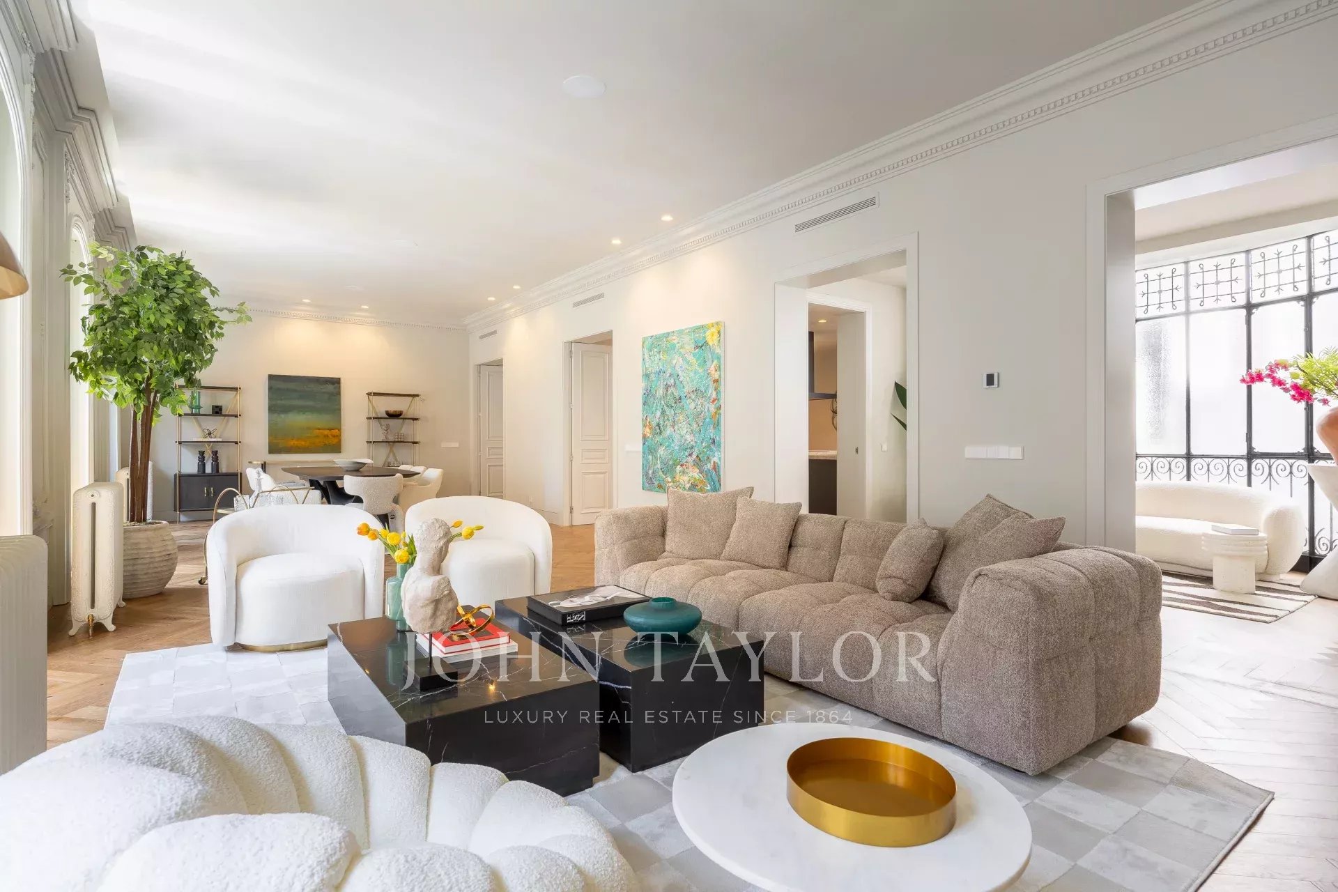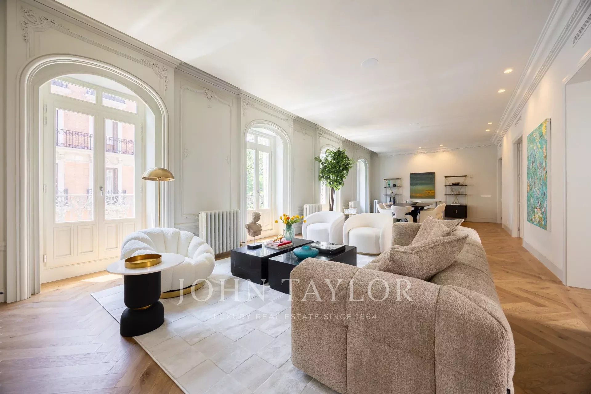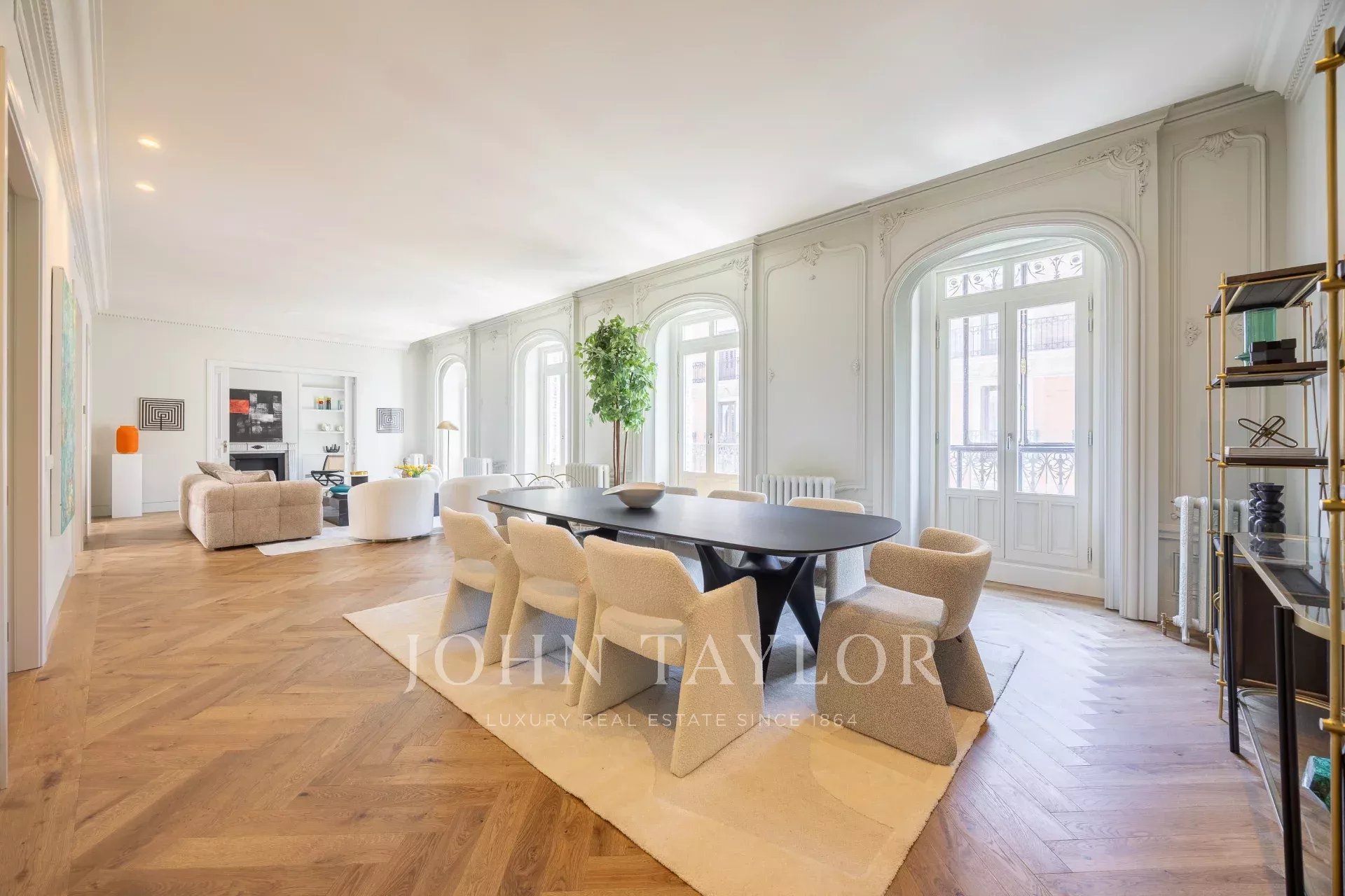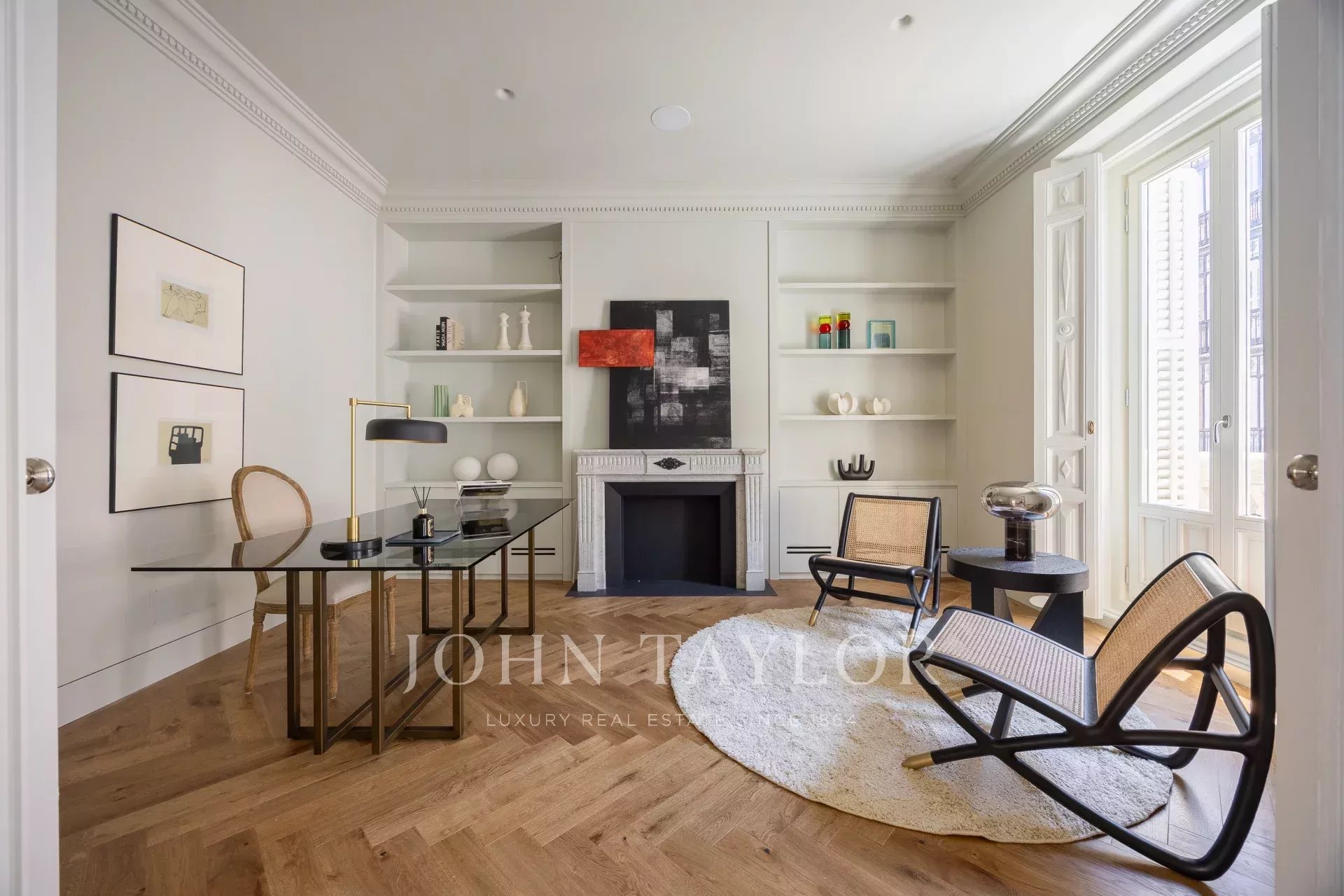 John Taylor presenta en exclusiva esta propiedad única, situada en la segunda planta de un edificio señorial construido en el año 1900, excelentemente conservado. La propiedad cuenta con 11 balcones a la calle, dos de ellos son miradores propios de la época.