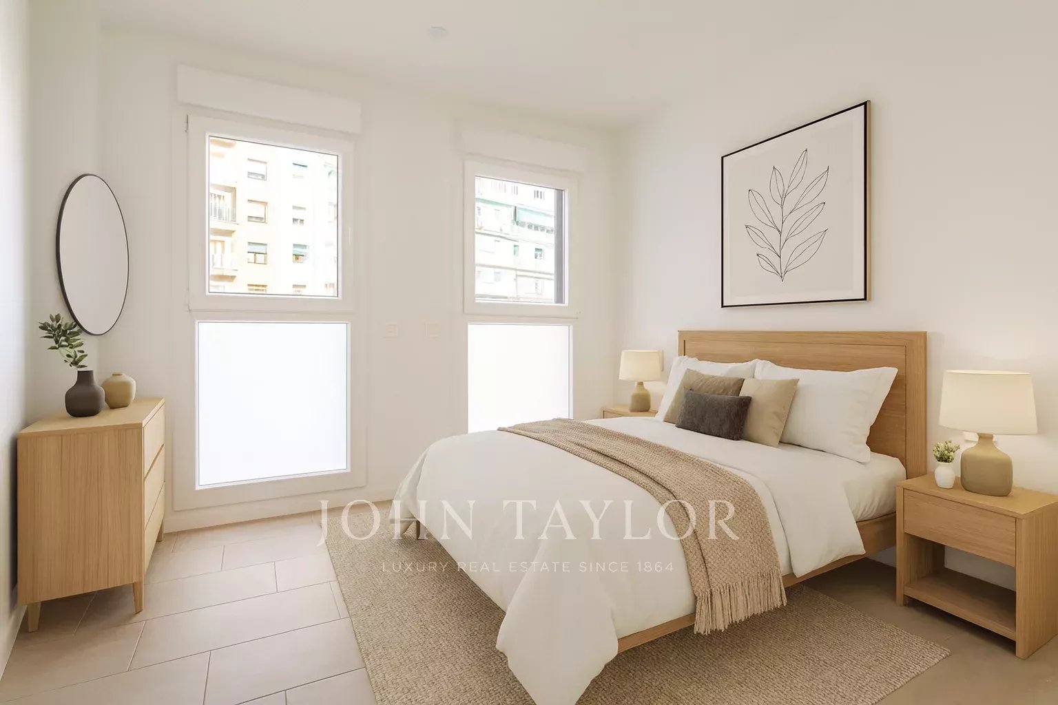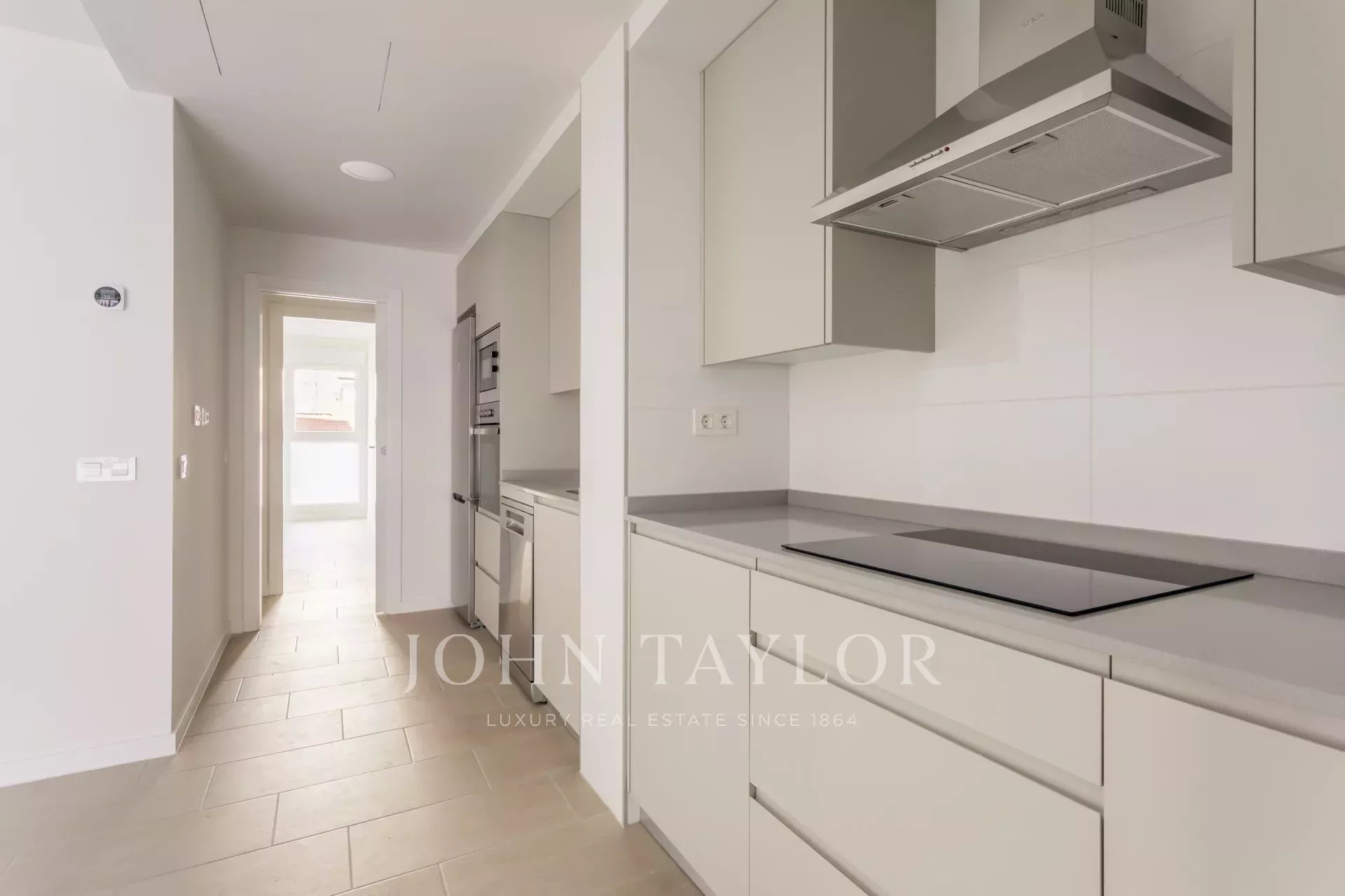 El inmueble se encuentra en la segunda planta del edificio, tiene una superficie de 127 m², con 82 m² privativos de vivienda, se distribuye en distribuidor con armarios gabaneros, cocina integrada al salón, completamente equipada, zona de lavandería independiente. Salón comedor. La zona de descanso está compuesta por dos dormitorios. Dormitorio principal con vestidor y cuarto de baño en suite. Un baño completo adicional dará servicio al dormitorio secundario. Toda el piso es exterior, a excepción de los cuartos de baño.