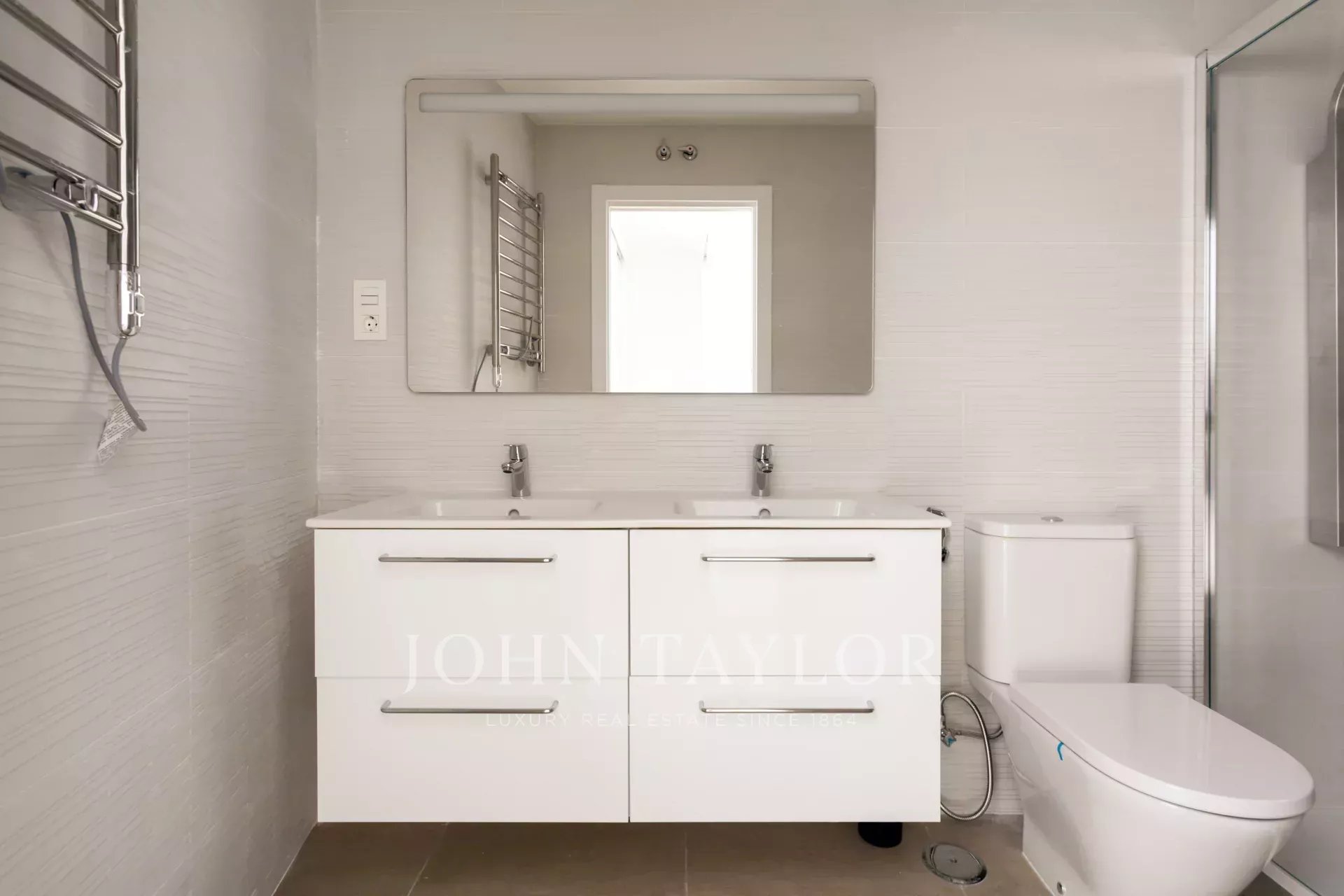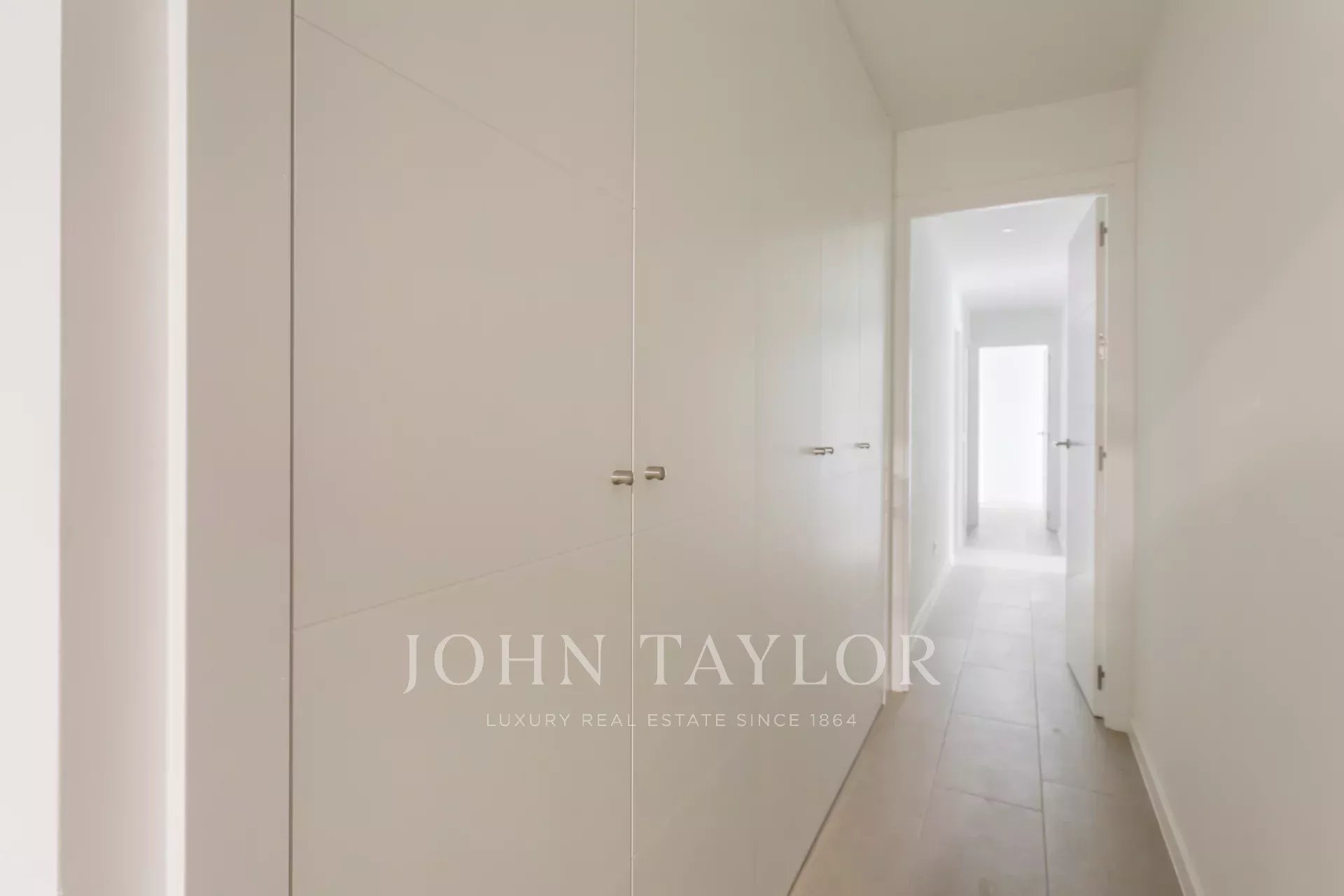 El inmueble se encuentra en la segunda planta del edificio, tiene una superficie de 127 m², con 82 m² privativos de vivienda, se distribuye en distribuidor con armarios gabaneros, cocina integrada al salón, completamente equipada, zona de lavandería independiente. Salón comedor. La zona de descanso está compuesta por dos dormitorios. Dormitorio principal con vestidor y cuarto de baño en suite. Un baño completo adicional dará servicio al dormitorio secundario. Toda el piso es exterior, a excepción de los cuartos de baño.