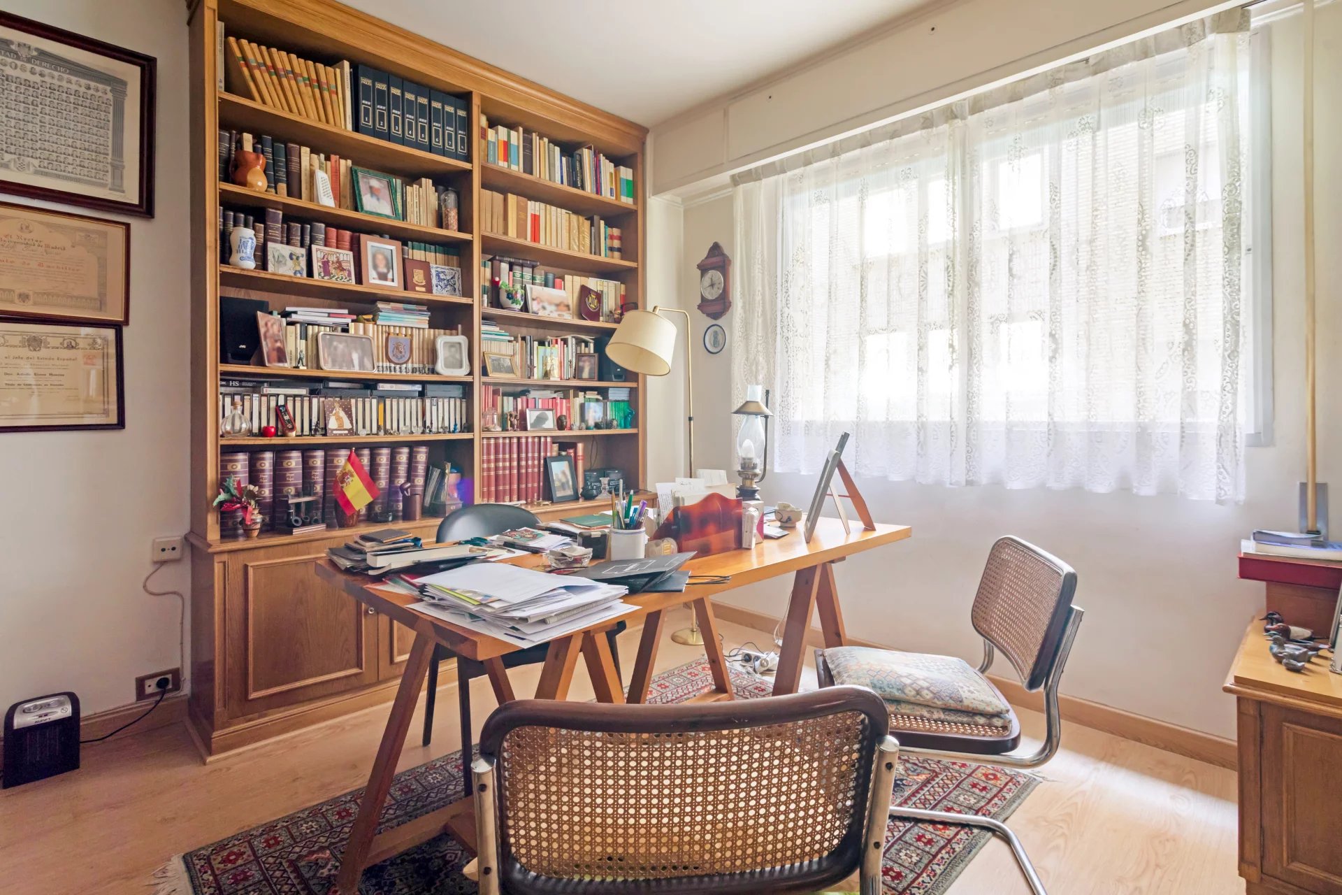 La vivienda destaca por sus posibilidades de reforma, su tranquilidad y privacidad a pocos metros del Paseo de la Castellana, su zona ajardinada de uso exclusivo de la Comunidad y el lujo de disponer de garaje de acceso directo.