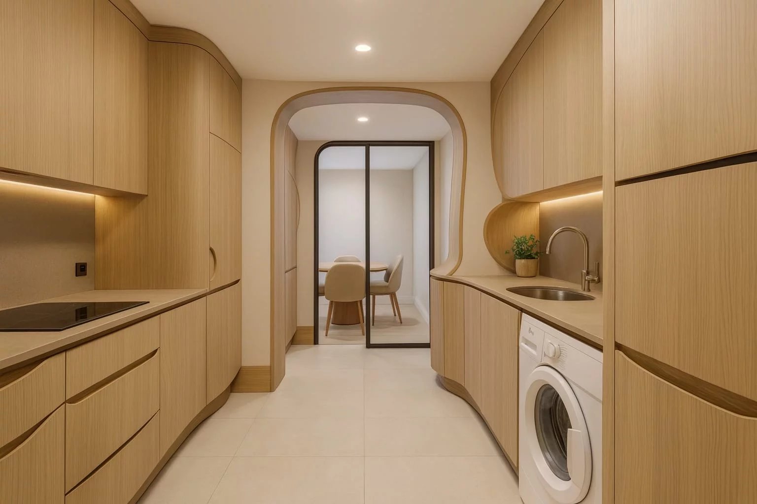 Amplia cocina con office, terraza - tendedero, despensa y habitación de servicio con baño y acceso independiente.