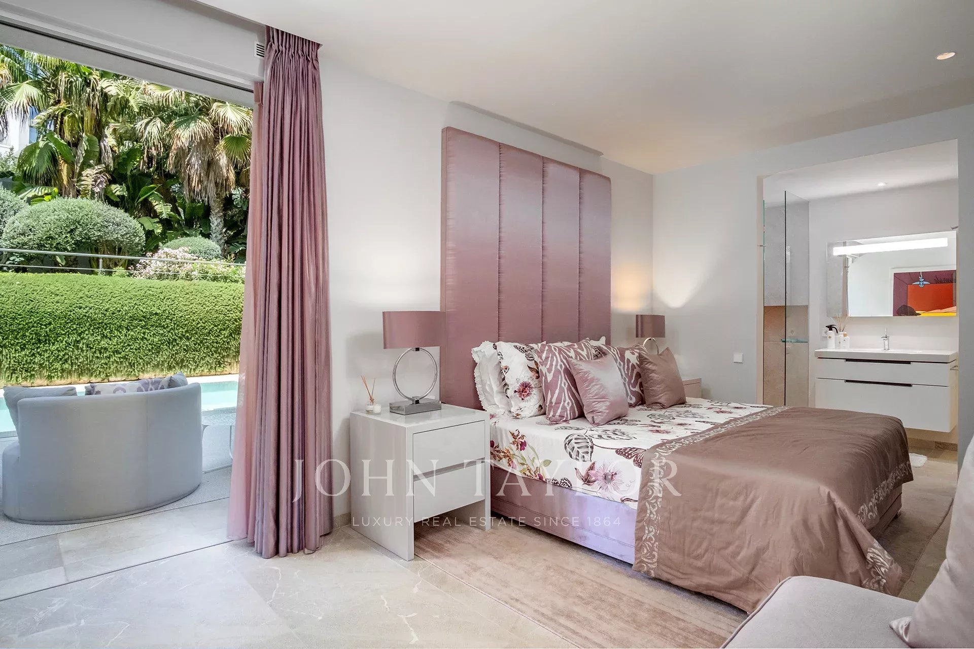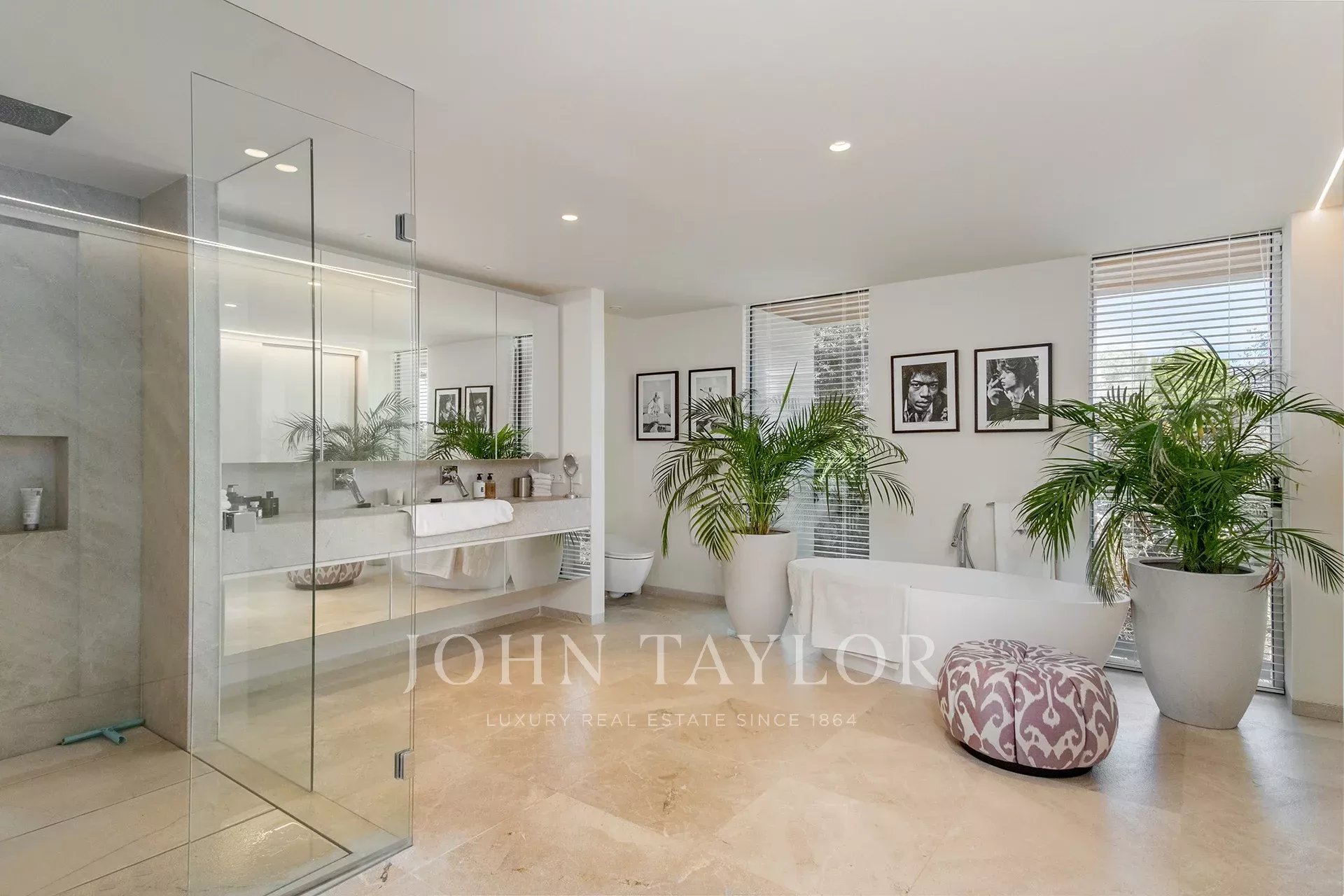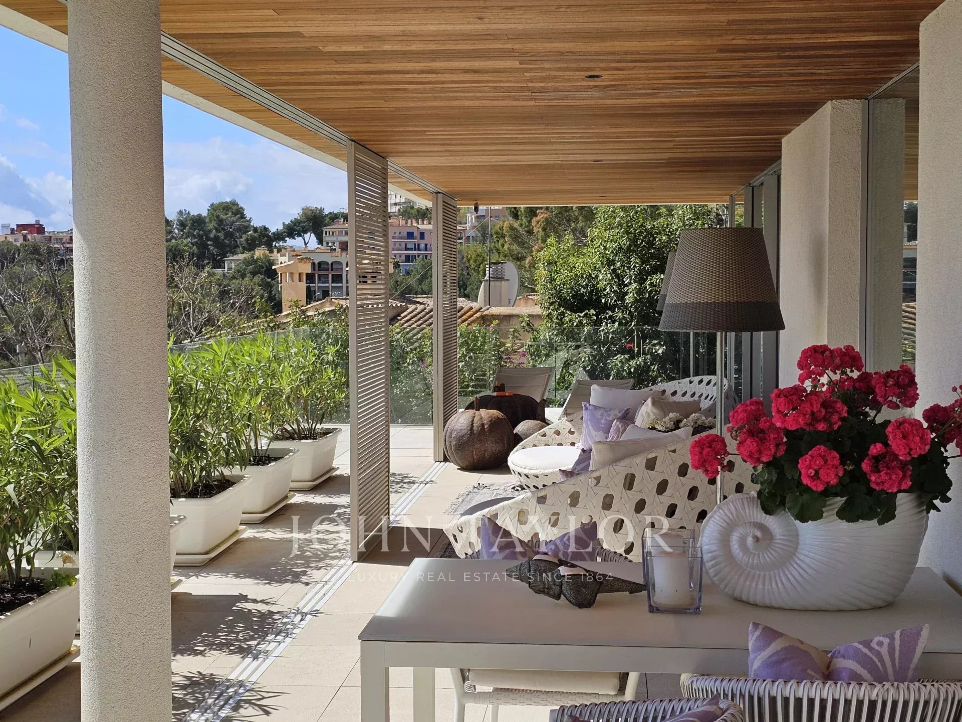 Este gran apartamento de lujo forma parte de una pequeña y exclusiva comunidad de pocos vecinos en la prestigiosa zona de Cas Catalá, muy solicitada por su combinación de tranquilidad y cercanía a Palma y todo tipo de servicios. Incluso se puede ir andando 5 minutos a una pequeña calita de arena. La propiedad ocupa una planta entera del edificio y está rodeada de terrazas. Dispone además de su propia piscina privada. La zona de estar se compone de un gran salón-comedor de grandes dimensiones y una cocina abierta completamente equipada. La comunicación con los espacios exteriores es excelente. El salón conecta con una terraza cubierta con bonitas vistas al mar. En la parte trasera se accede a una gran terraza descubierta al lado de la piscina, que invita a tomar el sol y darse un baño en cualquier momento del día. La distribución de la vivienda se adaptó en el momento de la construcción a los deseos de los propietarios actuales. Hay un suite principal impresionante con un vestidor y un baño muy generoso. Desde este dormitorio también hay un acceso directo a la terraza y desde la cama se puede disfrutar de las vistas al mar. Hay un dormitorio de invitados con su propio baño. 2 plazas de garaje y un gran trastero completan esta maravillosa propiedad, ideal para una pareja o una familia pequeña que valora los espacios amplios, las buenas vistas y un hogar elegante y confortable.