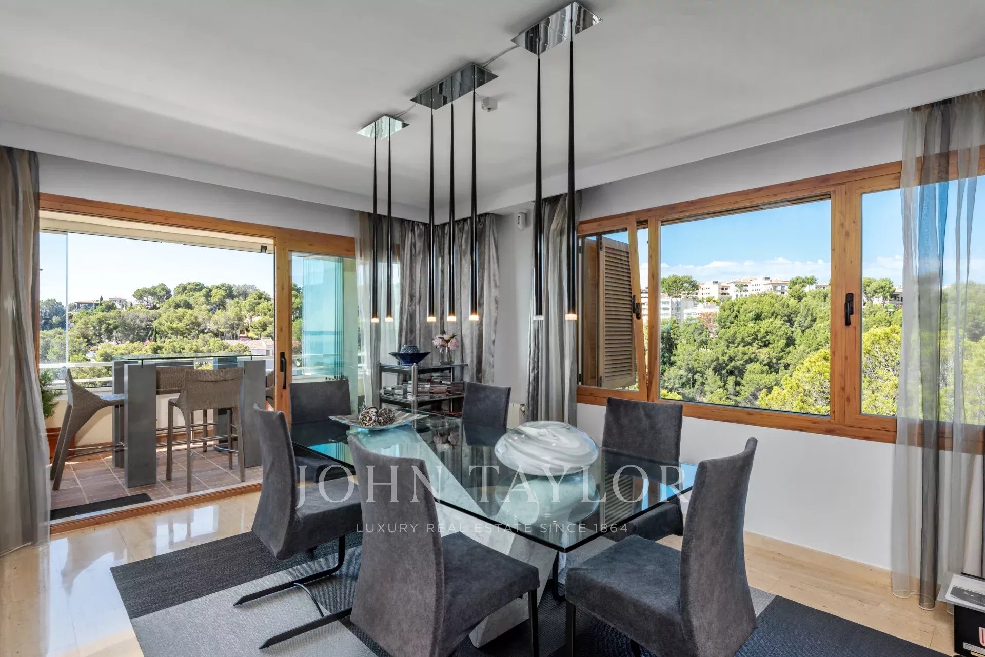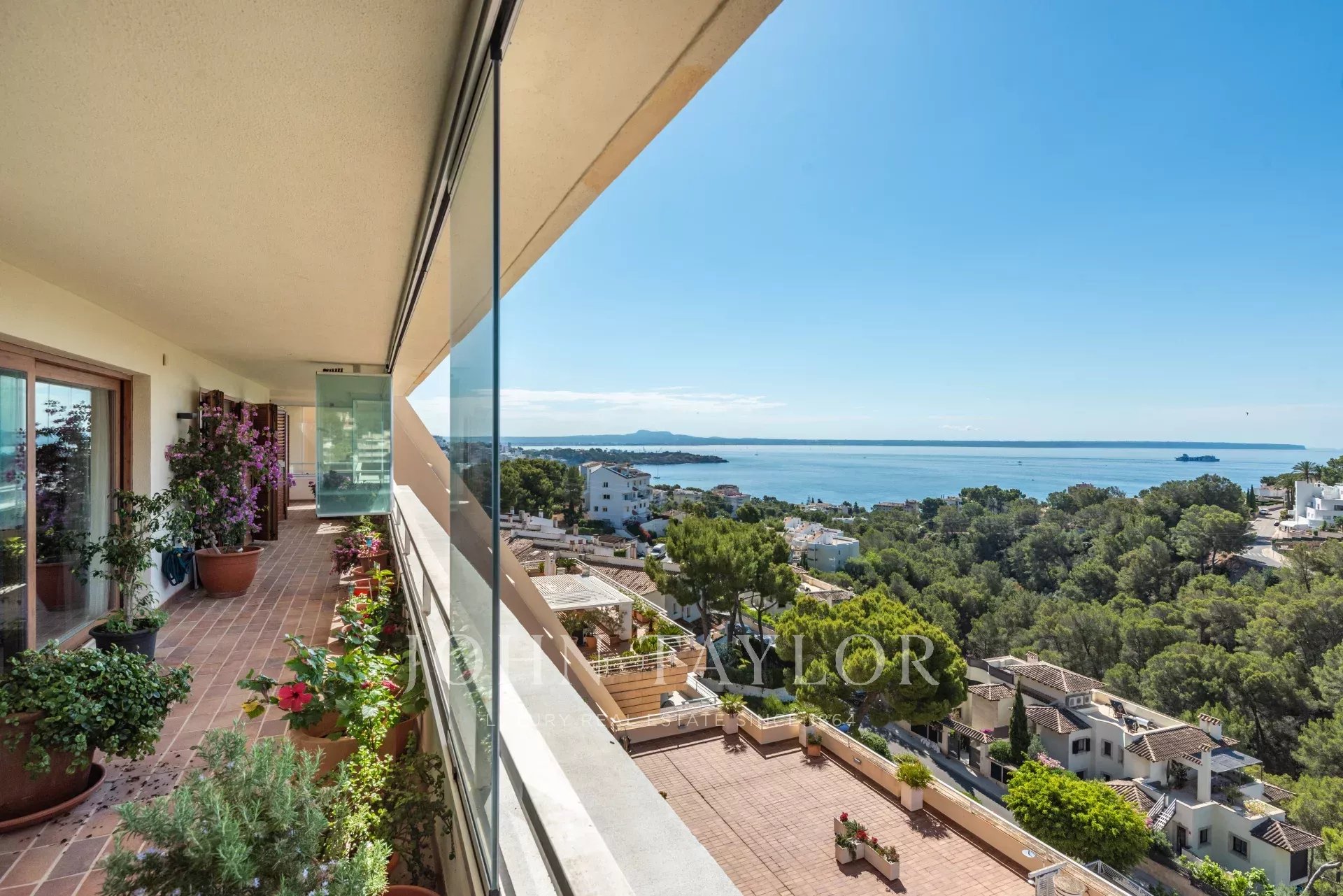 Le ofrecemos este exclusivo ático con impresionantes vistas al mar, situado en una de las zonas más privilegiadas de Mallorca. Ofrece un lujoso y generoso salón-comedor con amplia cocina adyacente, cuatro dormitorios, incluyendo la espaciosa suite principal con vestidor y terraza que también ofrece vistas al mar.