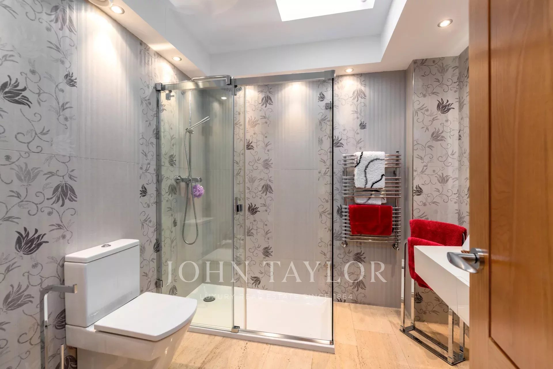 La terraza, orientada al sur, le permitirá disfrutar de mucha luz natural e impresionantes vistas durante todo el año. El lujo y la exclusividad formarán parte de su vida diaria, con sólo dos pisos por planta. El ático cuenta con suelos de mármol, chimenea, calefacción por radiadores y aire acondicionado central, así como armarios empotrados y grandes ventanales.