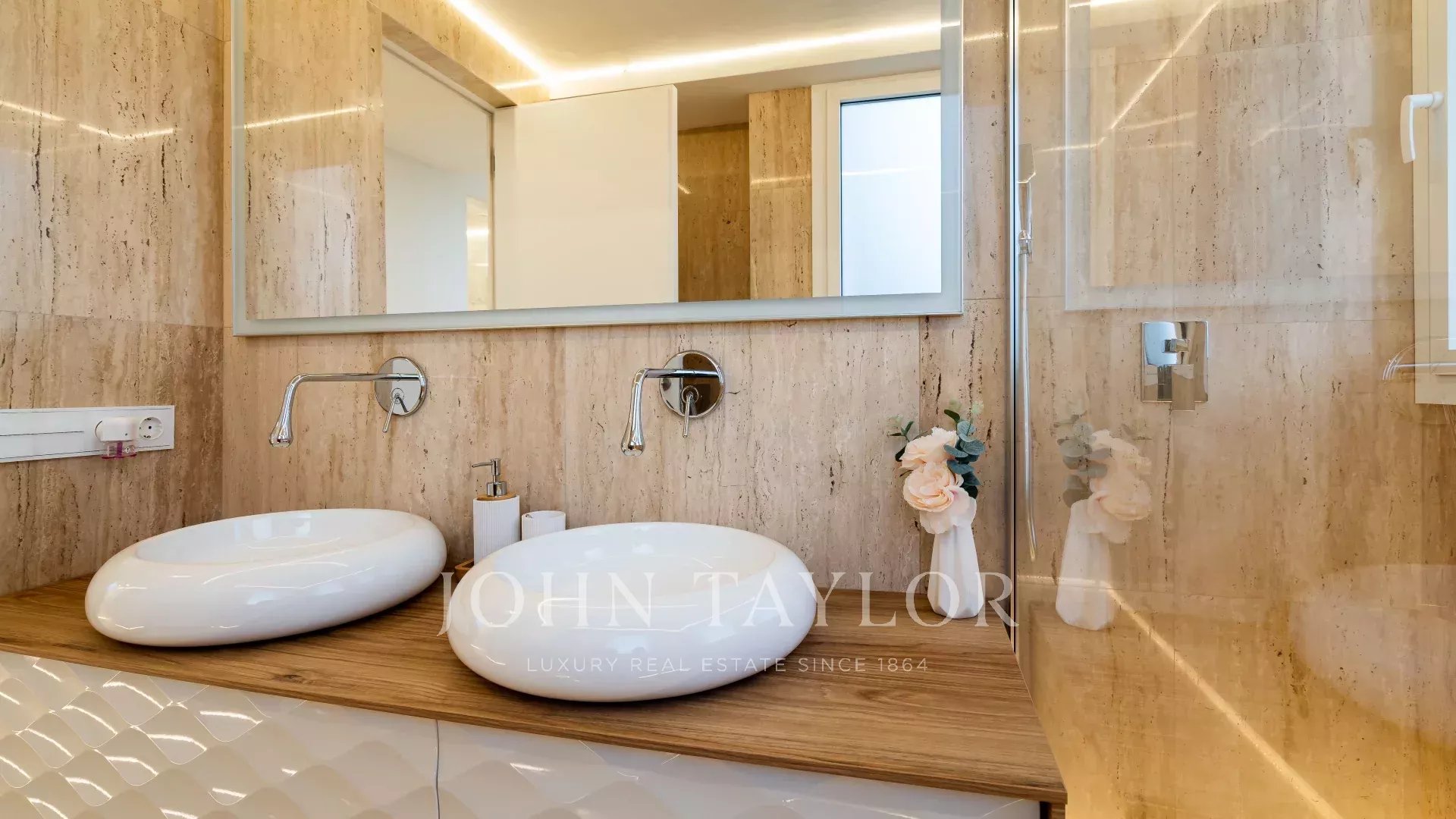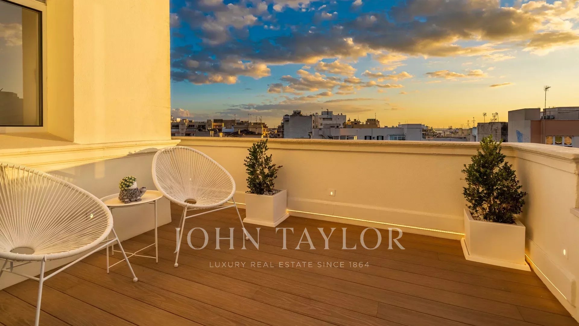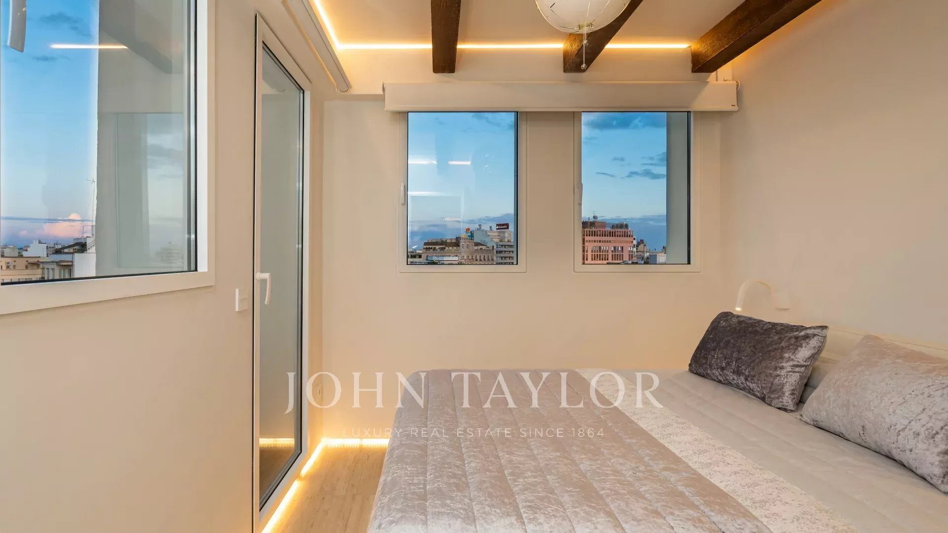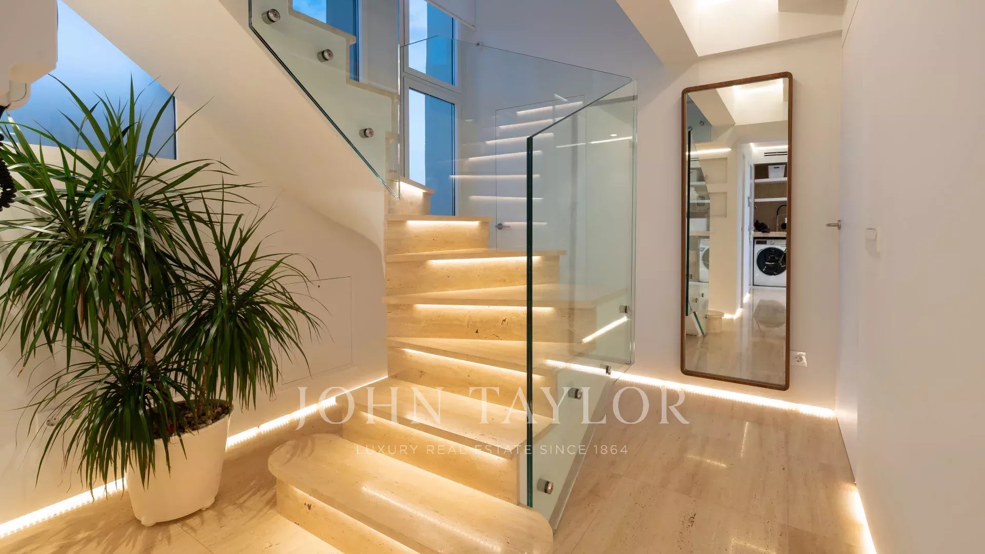 Este singular ático dúplex ha sido objeto de una completa reforma durante el año 2021. Ubicado en lo alto de uno de los edificios más emblemáticos de las Avenidas, ofrece unas vistas abrumadoras sobre la ciudad y hacia el mar. En la planta inferior hay dos dormitorios, dos baños, aseo de invitados y acceso a una de las dos terrazas. En la planta superior se encuentra la cocina, el salón y el comedor con ventanas envolventes con vistas de 360º, techos con vigas de madera y acceso directo a la segunda terraza. Con calefacción por suelo radiante en toda la casa, aire acondicionado central y la instalación domótica asegura la comodidad y la facilidad de gestionar la propiedad vía teléfono, iPad u ordenador. La propiedad se vende completamente amueblada e incluye dos plazas de garaje.