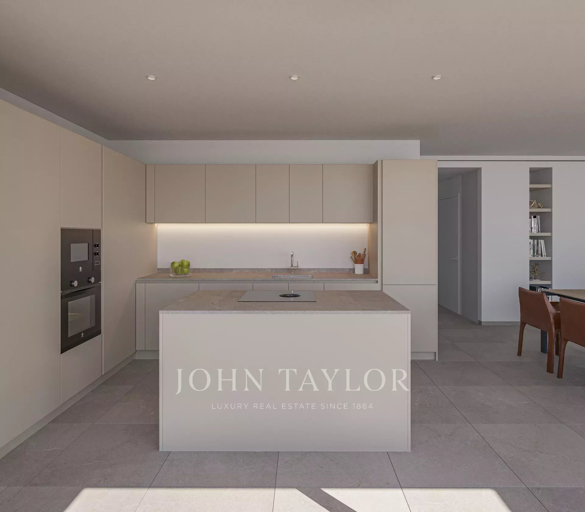 El interior del edificio de pisos se inspira en el estilo de vida mallorquín. Los frentes de ventanas que van del suelo al techo, las puertas y armarios hasta el techo y los suelos de piedra en toda la superficie permiten que las habitaciones fluyan unas con otras y confieren a cada apartamento una elegancia especial. Junto con el diseño moderno, sencillo y funcional y la paleta de colores claros y mediterráneos, los interiores desarrollan su propio carácter moderno e intemporal.