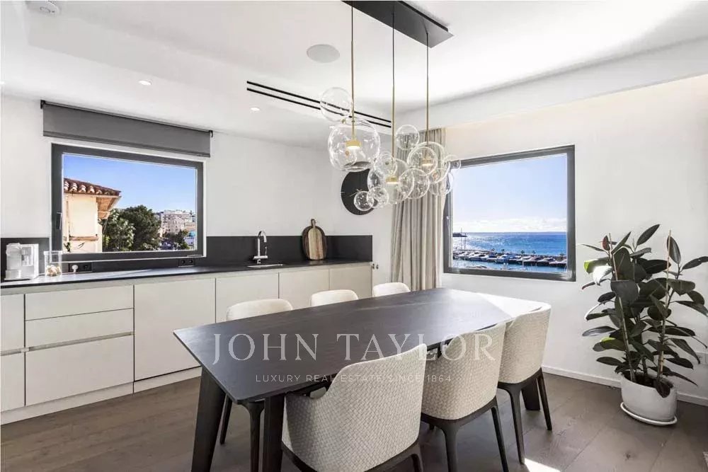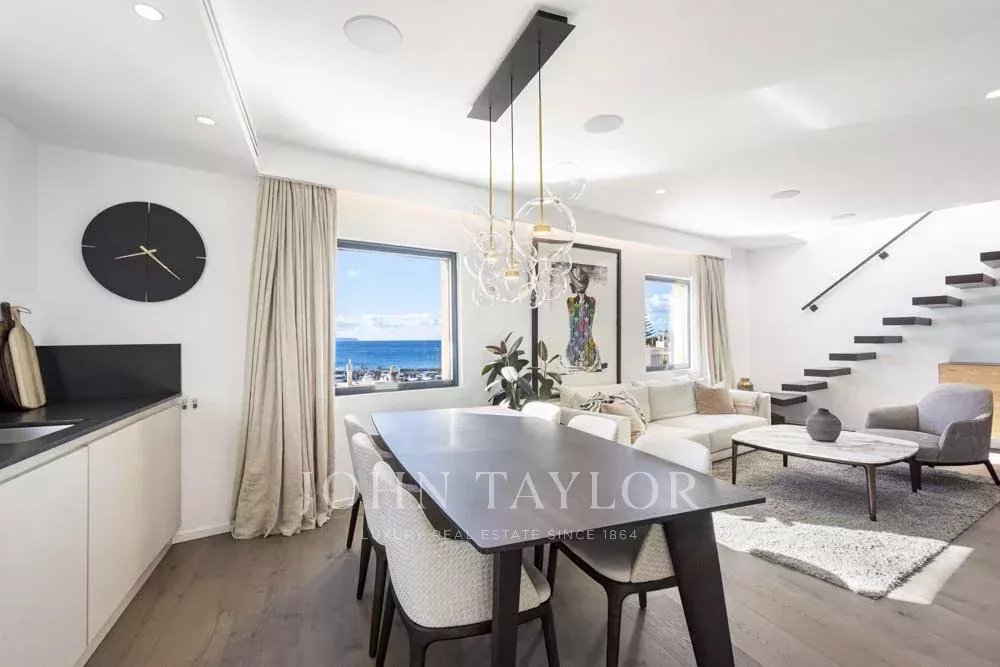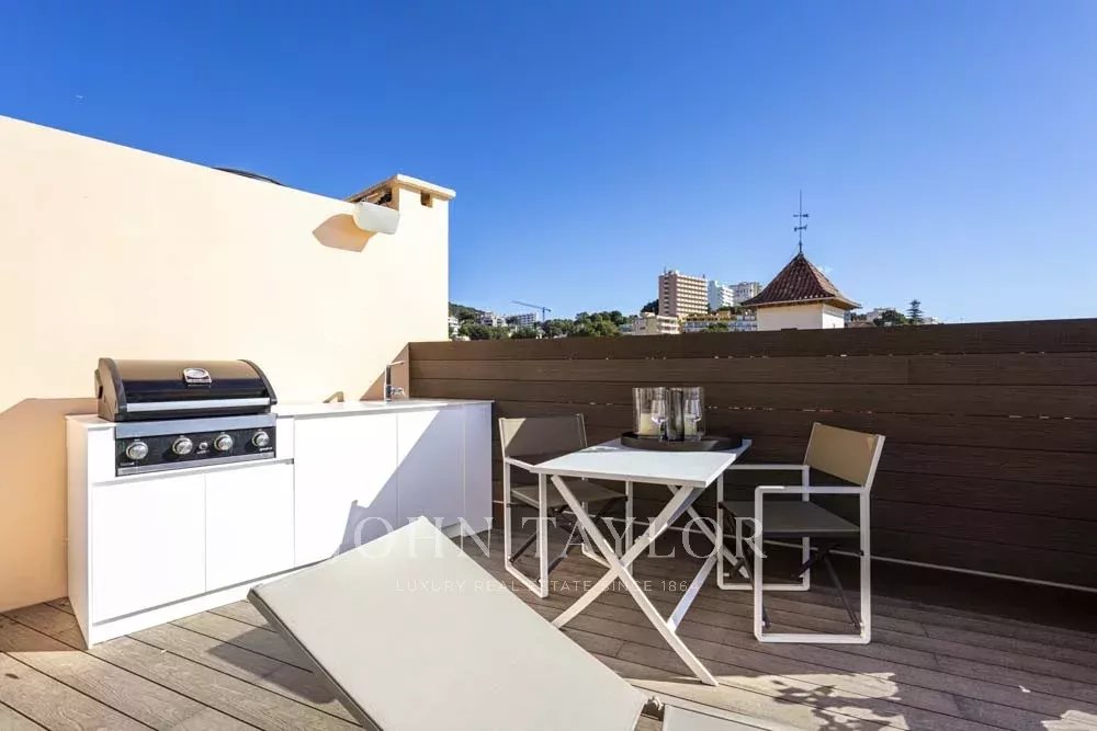 Ático de nueva construcción en una de las ubicaciones más privilegiadas de Mallorca con Calanova Marina como su vecino. Vistas panorámicas al puerto y al mar desde todas las habitaciones de este Ático único. El interior es con los mejores materiales y marcas más exclusivas. Ofrece una cocina abierta totalmente equipada, comedor y sala de estar, dos dormitorios, dos baños (uno en suite), y un área de lavandería. Todo el apartamento dispone de aire acondicionado central, calefacción por suelo radiante y equipo de música de alta fidelidad integrado. Desde el salón se accede a la terraza de la azotea a través de una escalera de diseño hecha a medida que ofrece unas vistas realmente espectaculares. La terraza incluye una cocina de verano con barbacoa y nevera, ideal para comer al aire libre y disfrutar de las vistas o simplemente relajarse. El edificio cuenta con piscina y terraza comunitarias. El ático se venderá completamente amueblado y decorado a excepción de la colección de arte. Posibilidad de obtener plaza de garaje en las inmediaciones.