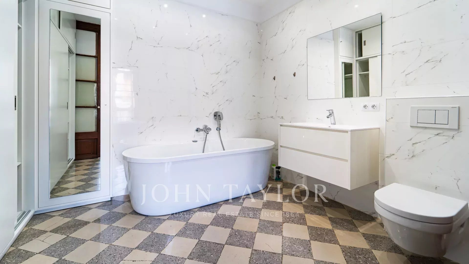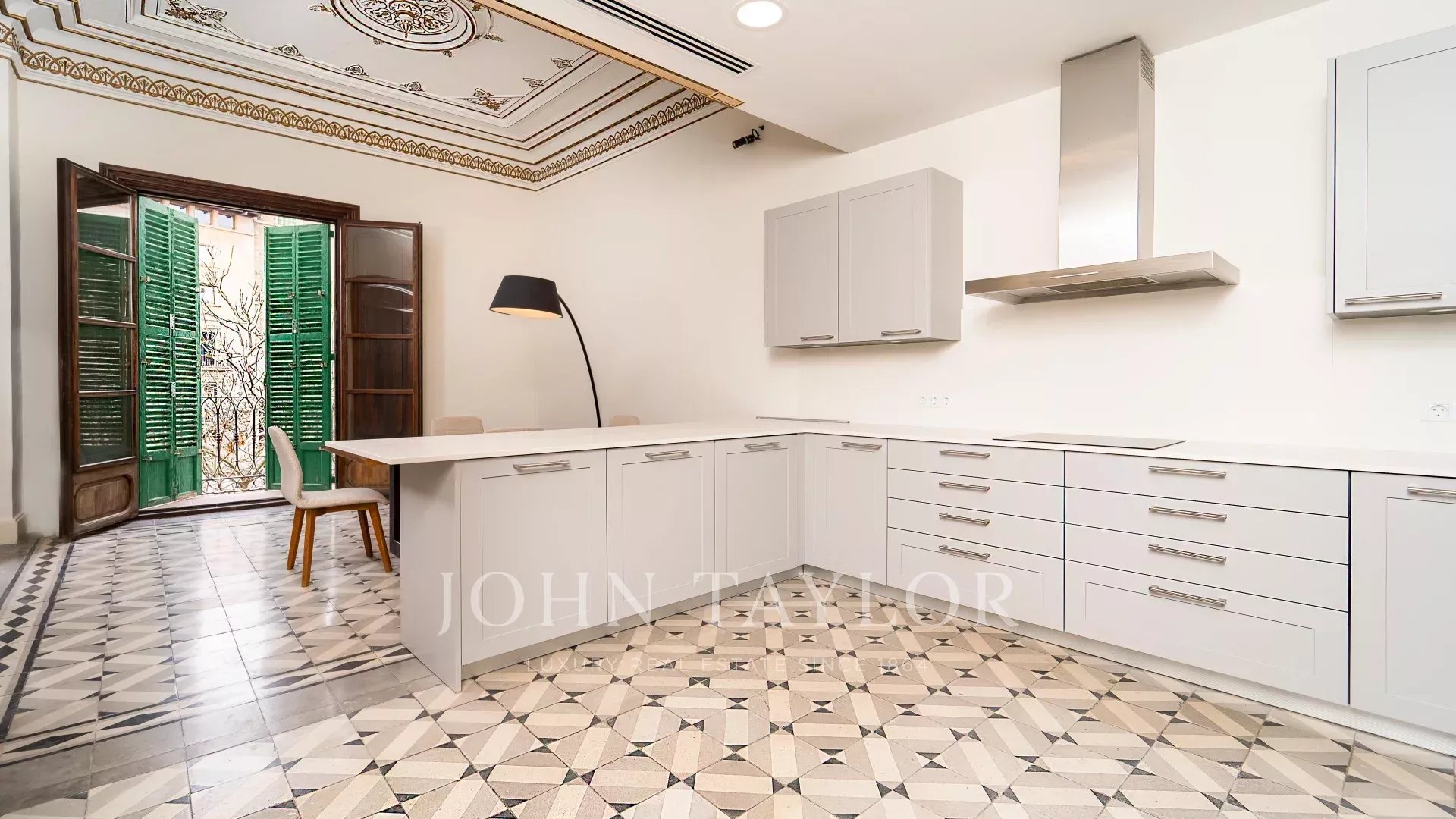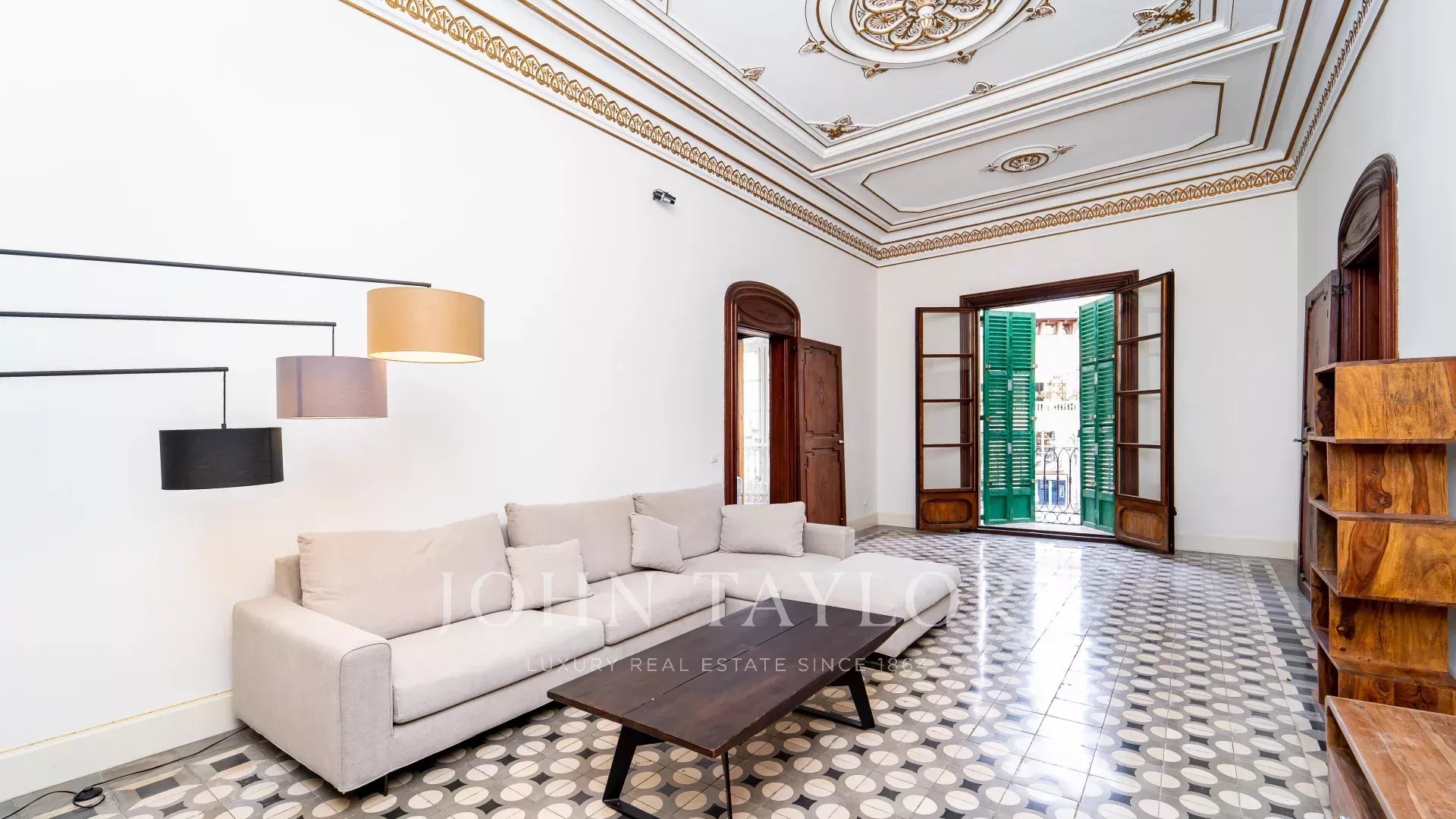 Este amplio apartamento en primera planta está situado en la emblemática zona de El Born, con vistas al paseo y a poca distancia de todo lo que se necesita para un estilo de vida muy cómodo. Al entrar, los techos altos en las áreas sociales de la propiedad, hecho con un trabajo artesanal impecable que incluye rosetones, molduras y cornisas, junto con las ventanas originales de techo al suelo y los azulejos hidráulicos originales, aseguran la garantía de tener ese carácter y encanto del casco antiguo. La propiedad ofrece 4 dormitorios, 3 baños (2 en suite) una cocina/comedor totalmente equipada, un gran salón y un estudio/oficina independiente ideal para los que trabajan desde casa. Una verdadera joya en una de las mejores ubicaciones de la ciudad.