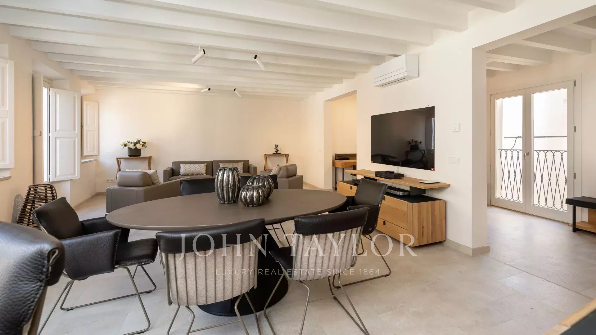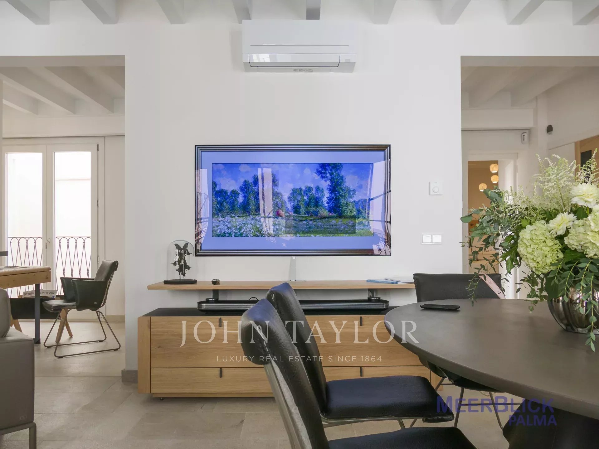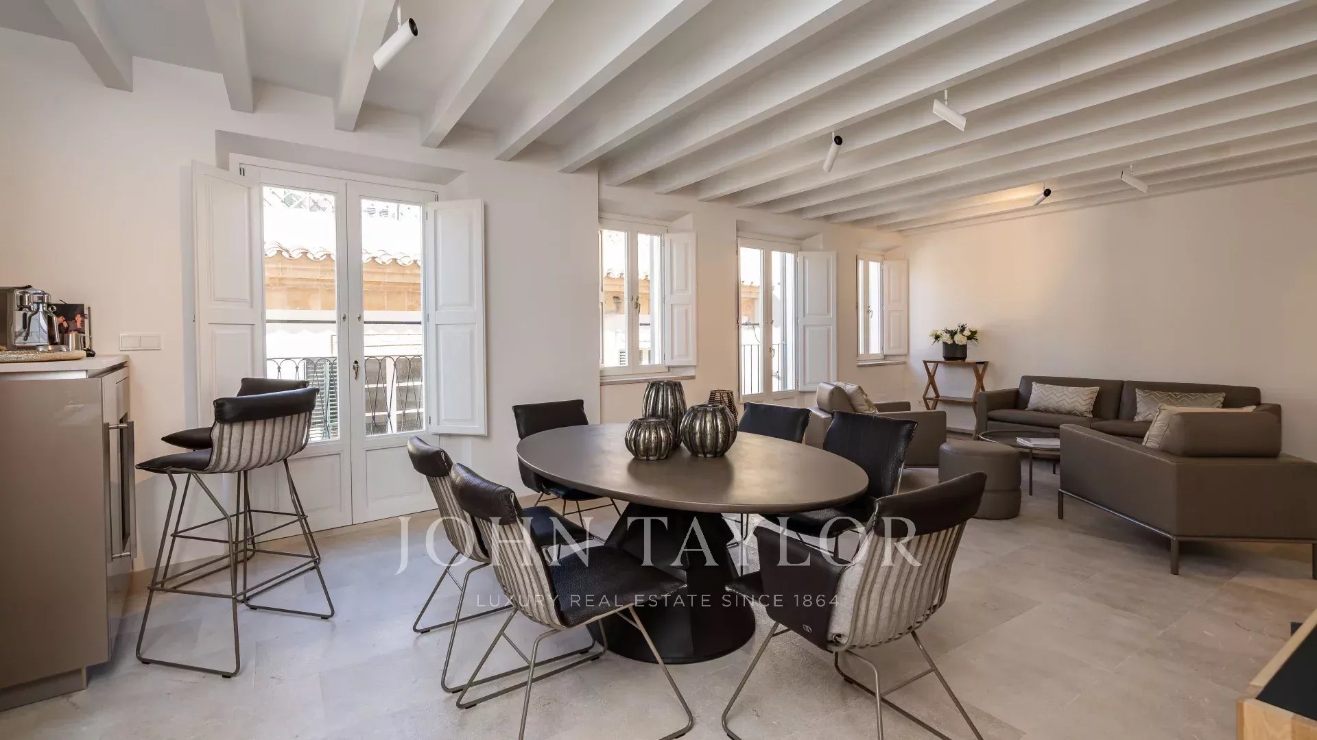 "Sea View Palma Residence" está situado en una de las calles más emblemáticas de Palma justo al lado de la Plaza Santa Eulalia. Este apartamento en primera planta destaca por sus líneas limpias y modernas y por la luminosidad de sus estancias gracias a sus ventanales de suelo a techo. Su interior ofrece tonos naturales cálidos y terrosos con muebles cuidadosamente seleccionados. La zona de cocina, comedor y sala de estar de planta abierta con techo elevado ofrece una sensación de loft, y el trabajo con marcas como De Sede, Voglaur, Joka, Häcker, Miele y Gaggenau garantiza la máxima calidad y comodidad. Tiene dos dormitorios en suite, un baño de invitados y un patio privado. La propiedad se vende completamente amueblada e incluye calefacción por suelo radiante, aire acondicionado central y domótica. El aparcamiento en garaje es opcional con un coste adicional.