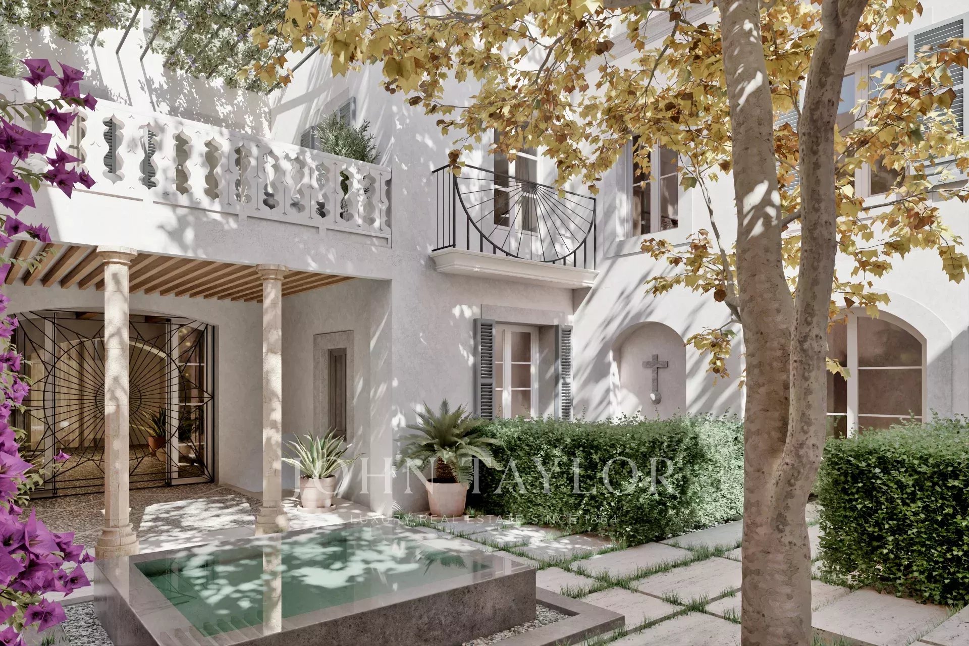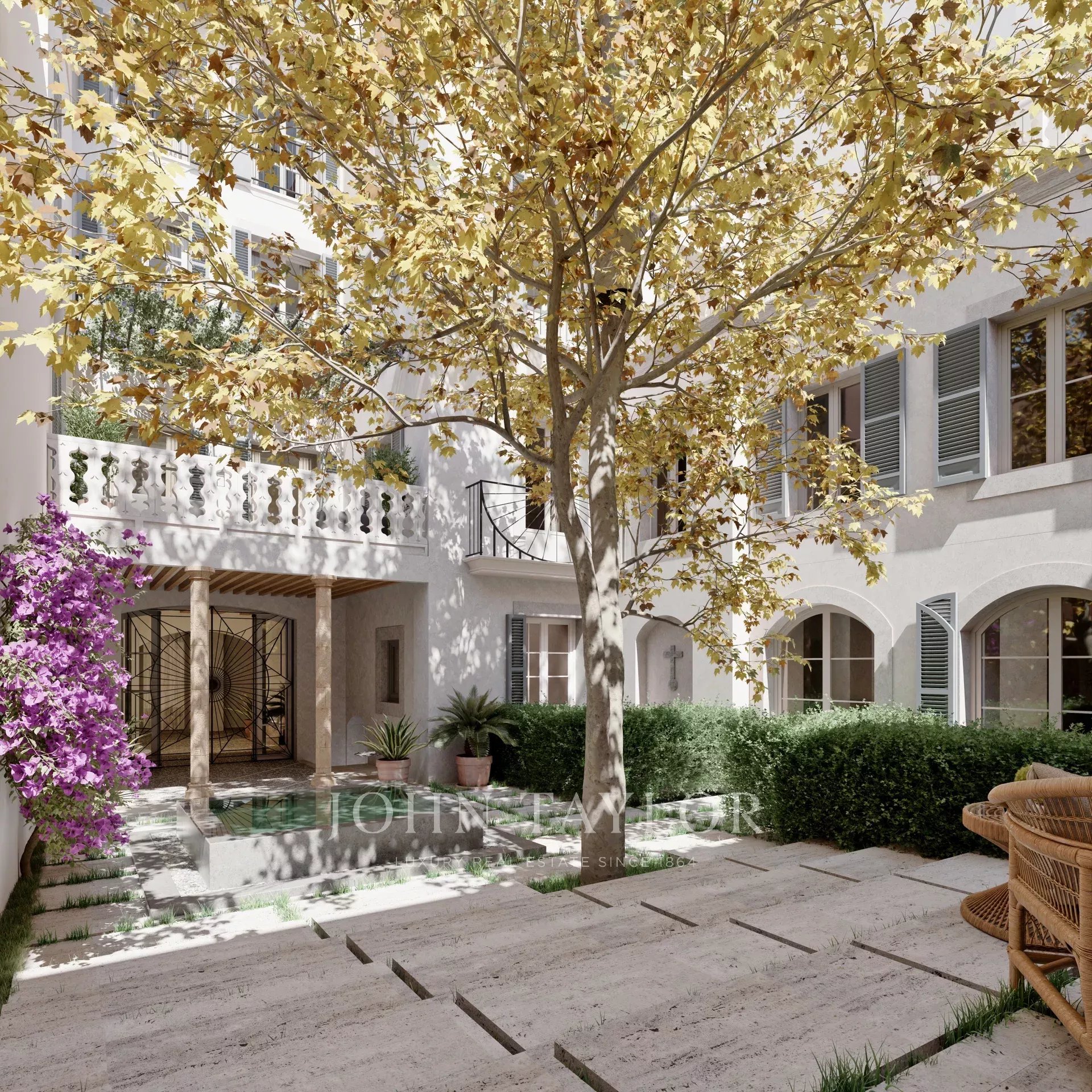 Este fabuloso nuevo proyecto en construcción en la actualidad se transformará en una impresionante residencia de 5 unidades construida alrededor de un jardín privado. Este elegante complejo forma parte integrante del casco antiguo y ofrece un verdadero oasis exuberante de paz, sombra estival y tranquilidad (en invierno, los grandes y viejos árboles de hoja caduca pierden sus hojas y dejan pasar la luz del sol). Las unidades varían entre apartamentos con jardín, dúplex y tríplex, de 81m2 a 190m2, y de 1, 2 y 3 dormitorios. Tanto las viviendas de la planta baja como las de la última planta cuentan con zonas exteriores, ideales para el recreo o el puro relax. El proyecto se centra en devolver al edificio su esplendor original con todas las ventajas de la vida moderna, como techos con vigas, ventanas de suelo a techo, calefacción por suelo radiante, cocinas totalmente equipadas con electrodomésticos Siemens, aire acondicionado central y sistema de domótica, y utilizando materiales nobles como la piedra natural de Binissalem y suelos de roble.