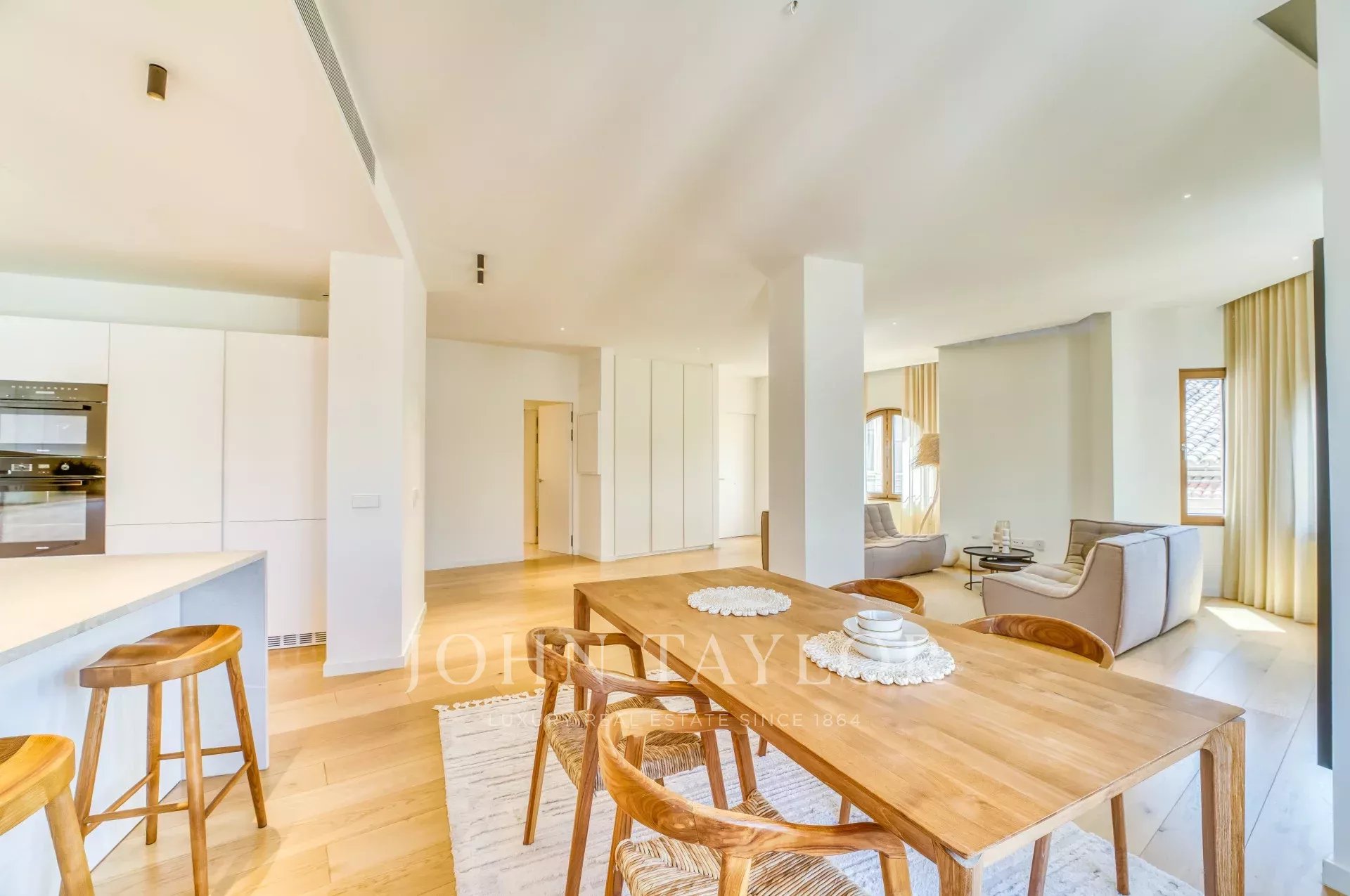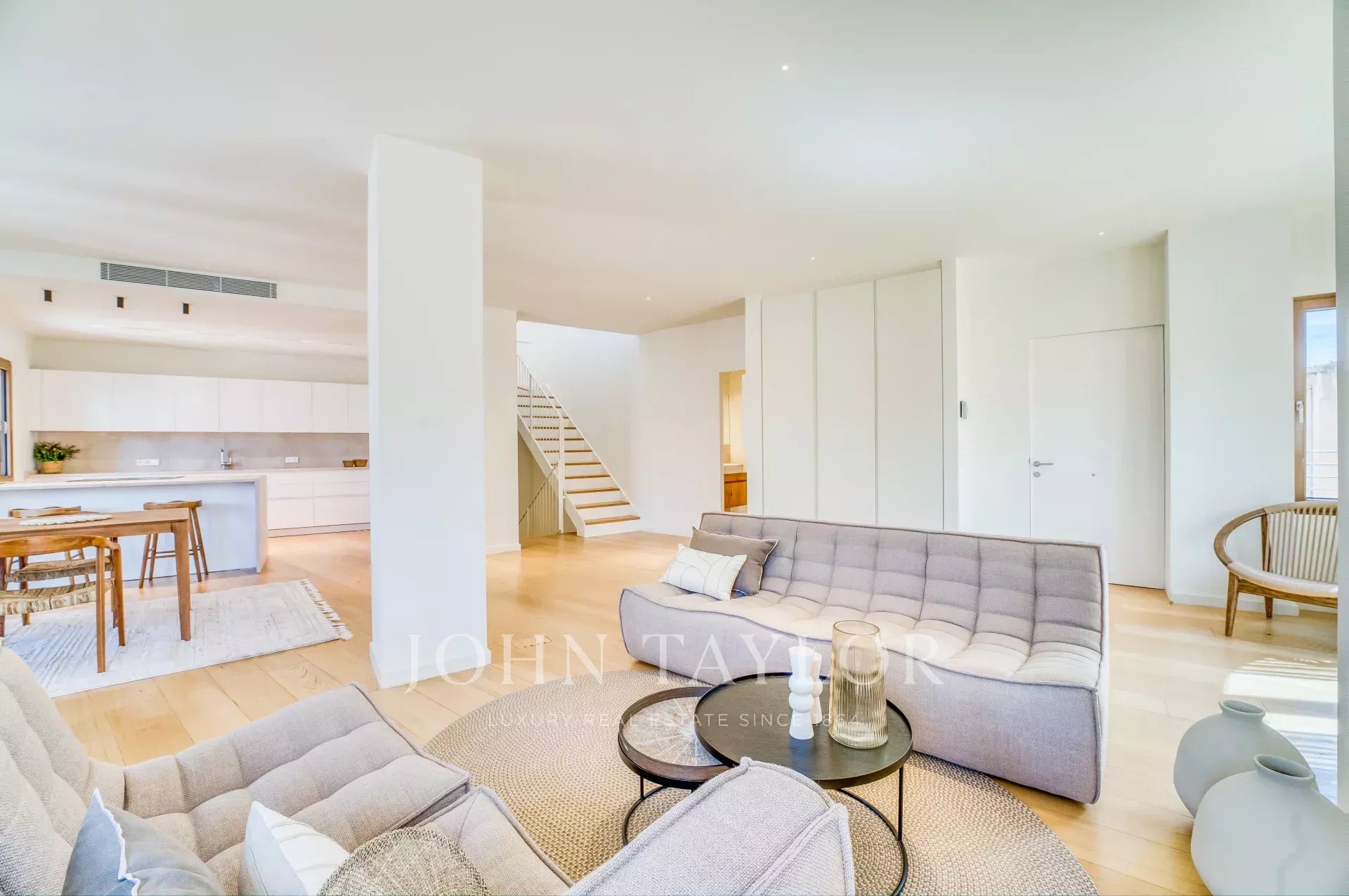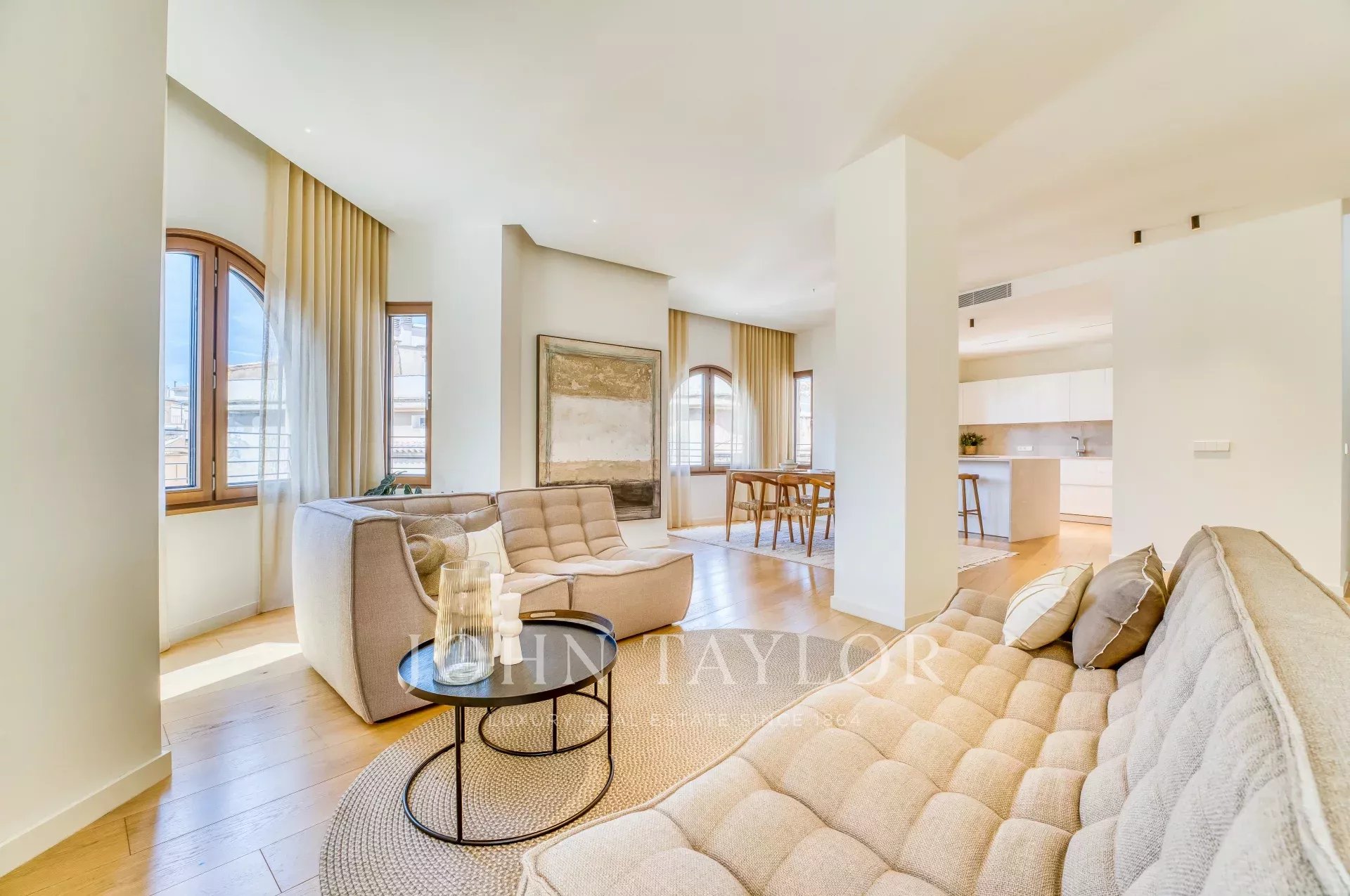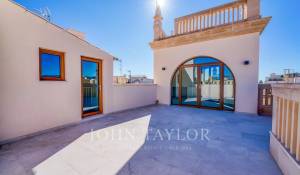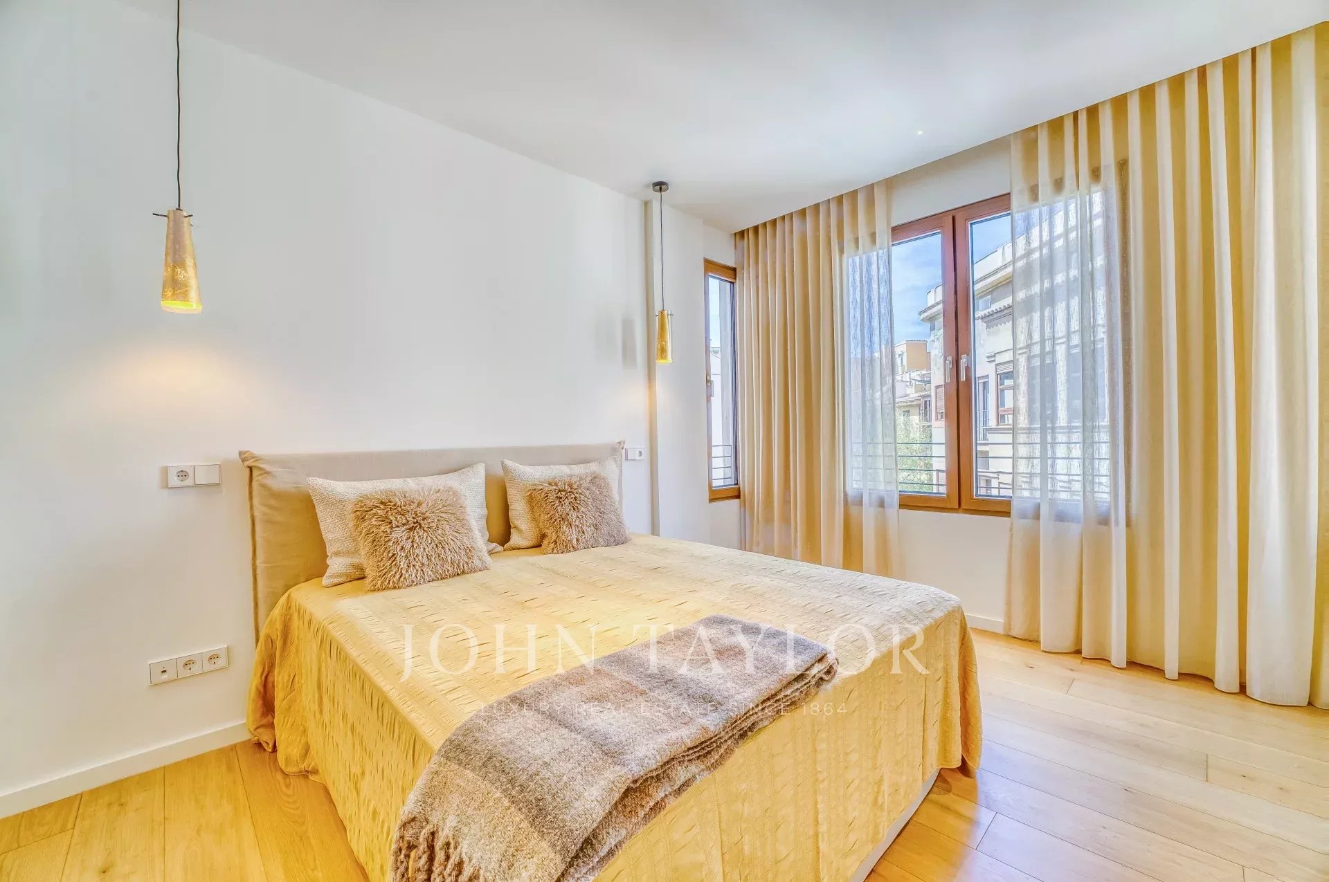 Situado en una tranquila plaza en el corazón del Casco Antiguo de Palma, este lujoso ático dúplex de nueva construcción consta de dos dormitorios, tres baños (dos en suite) y un aseo de cortesía, una zona de lavandería y una terraza solárium espectacular. Mientras que el acceso ofrece una espaciosa planta abierta para la cocina-comedor y sala de estar, los dormitorios de la planta inferior crean una tranquila zona de privacidad. Los grandes ventanales hechos a medida, los suelos de madera y los cálidos tonos del interior crean un ambiente acogedor en todas las estancias. Lo más destacado del apartamento es la terraza privada, que es accesible directamente a través del apartamento. Desde aquí, podrá disfrutar de vistas panorámicas al casco antiguo y al mar. Para su comodidad personal, todo el ático está equipado con calefacción por suelo radiante, aire acondicionado y sistema domótico. Existe la posibilidad de adquirir una plaza de garaje en el mismo edificio.
