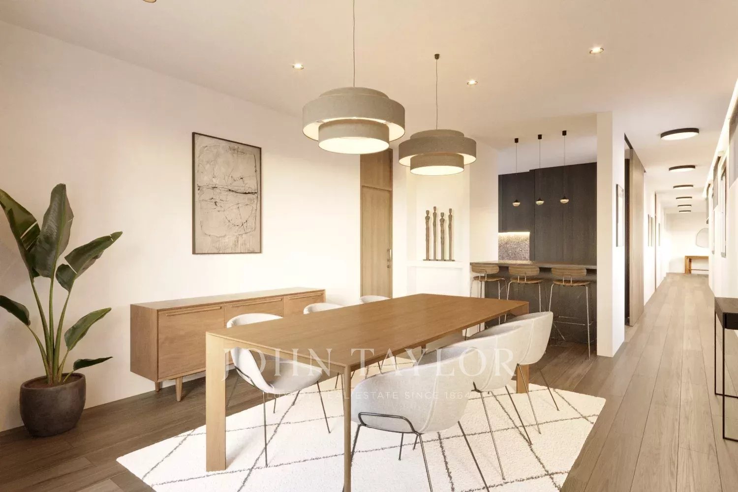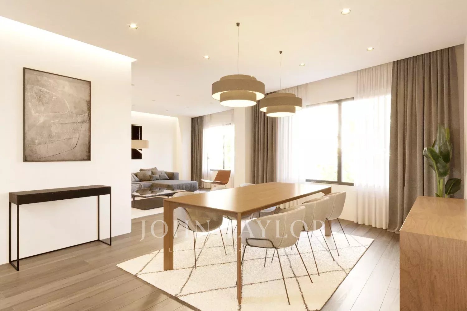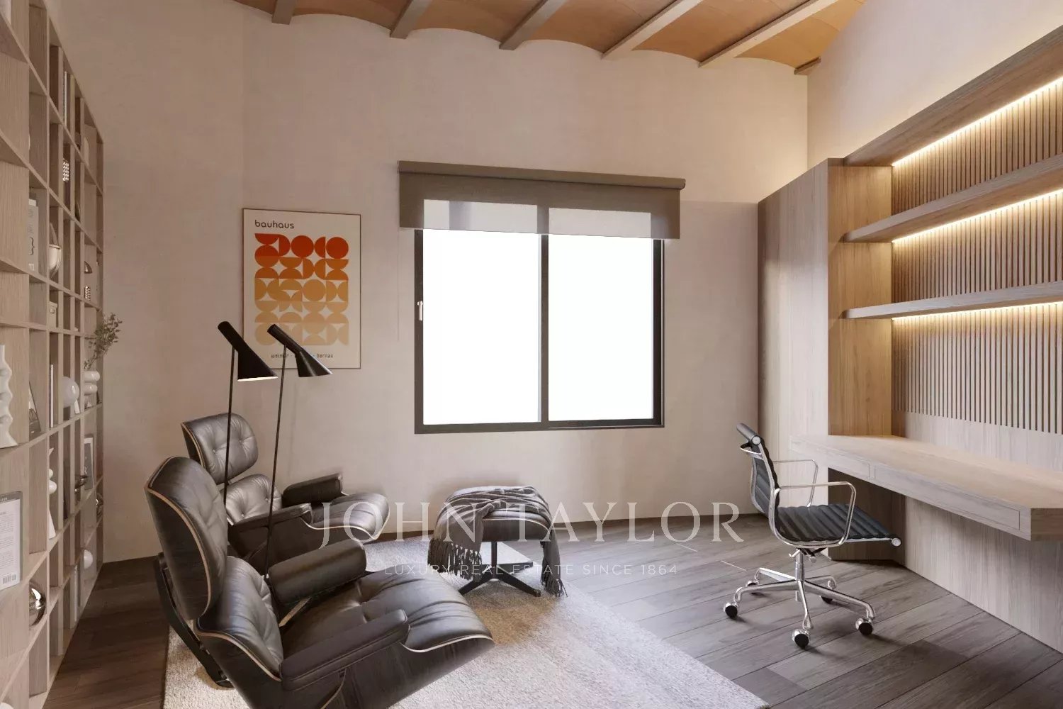 El proyecto contempla un apartamento de 200 m2 con dos amplios dormitorios con baños en suite, una moderna cocina, un comedor, una acogedora sala de estar, un despacho y un lavadero. Aunque el apartamento no tiene terraza, cuenta con grandes ventanales en todas las habitaciones, lo que garantiza la abundancia de luz natural en todo el espacio.