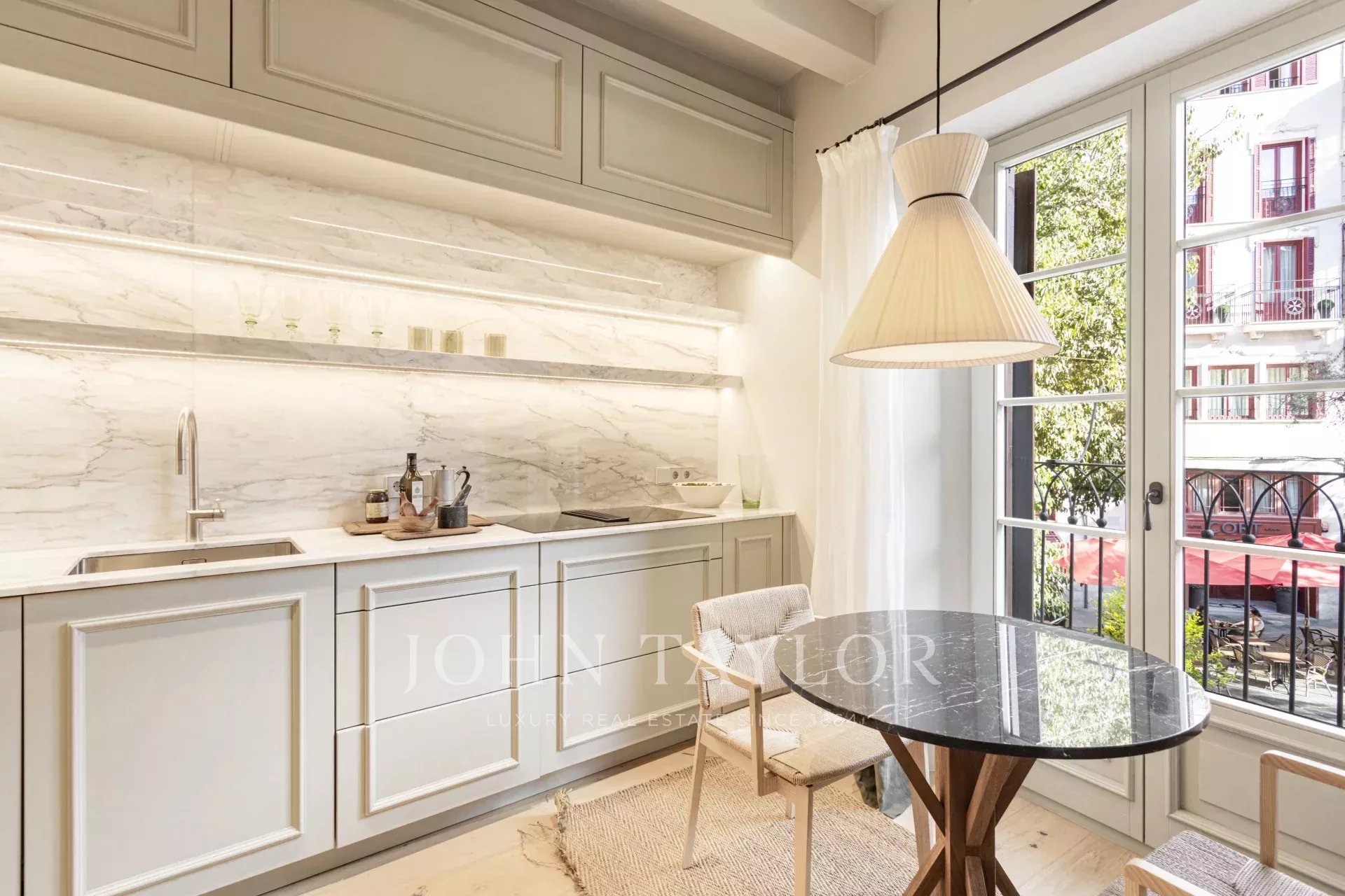 La cuarta planta está dedicada a la zona de día/social con una cocina-comedor abierta que fluye hacia la zona del salón con una acogedora chimenea. Toda esta zona tiene vistas a la emblemática Plaza Cort.
