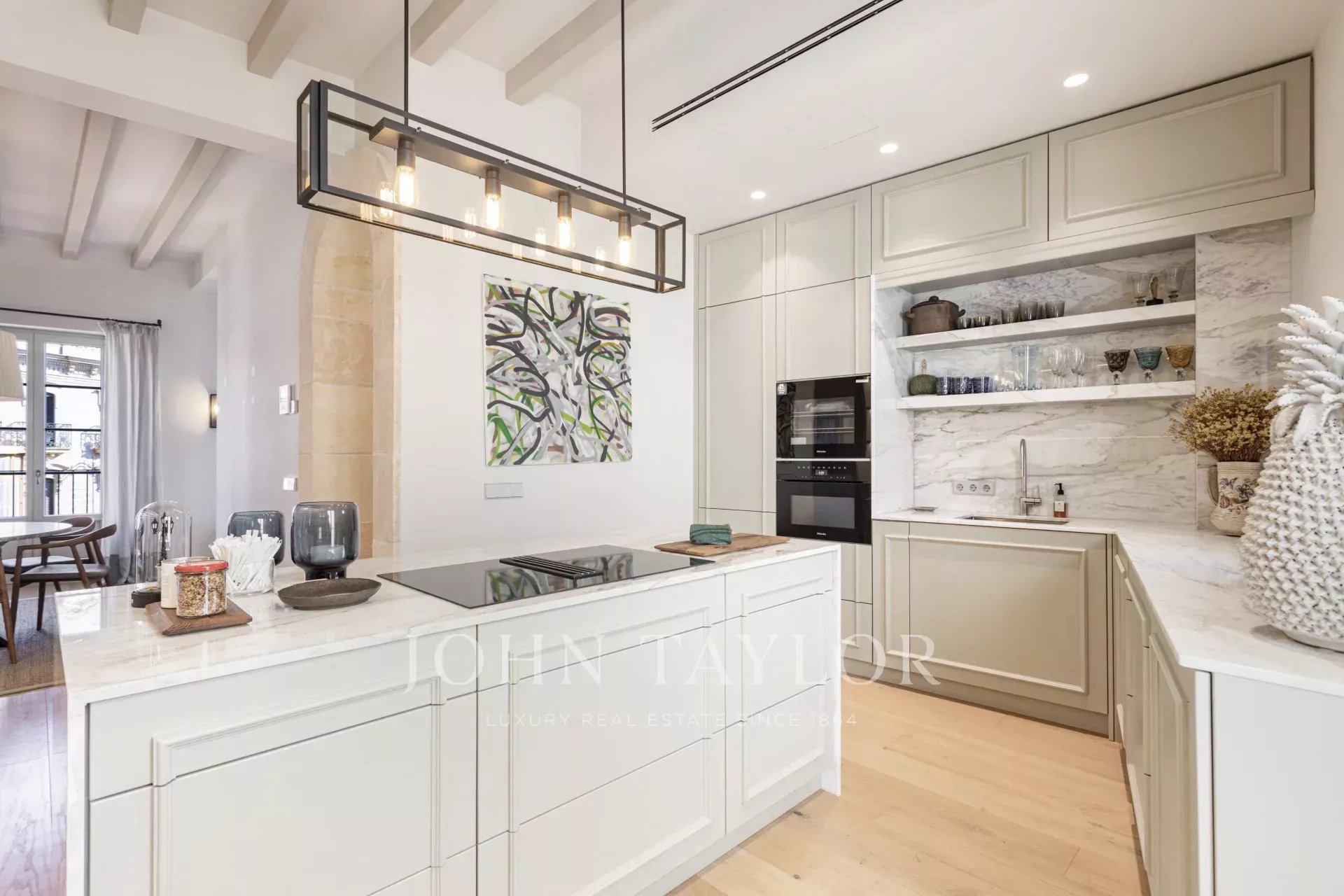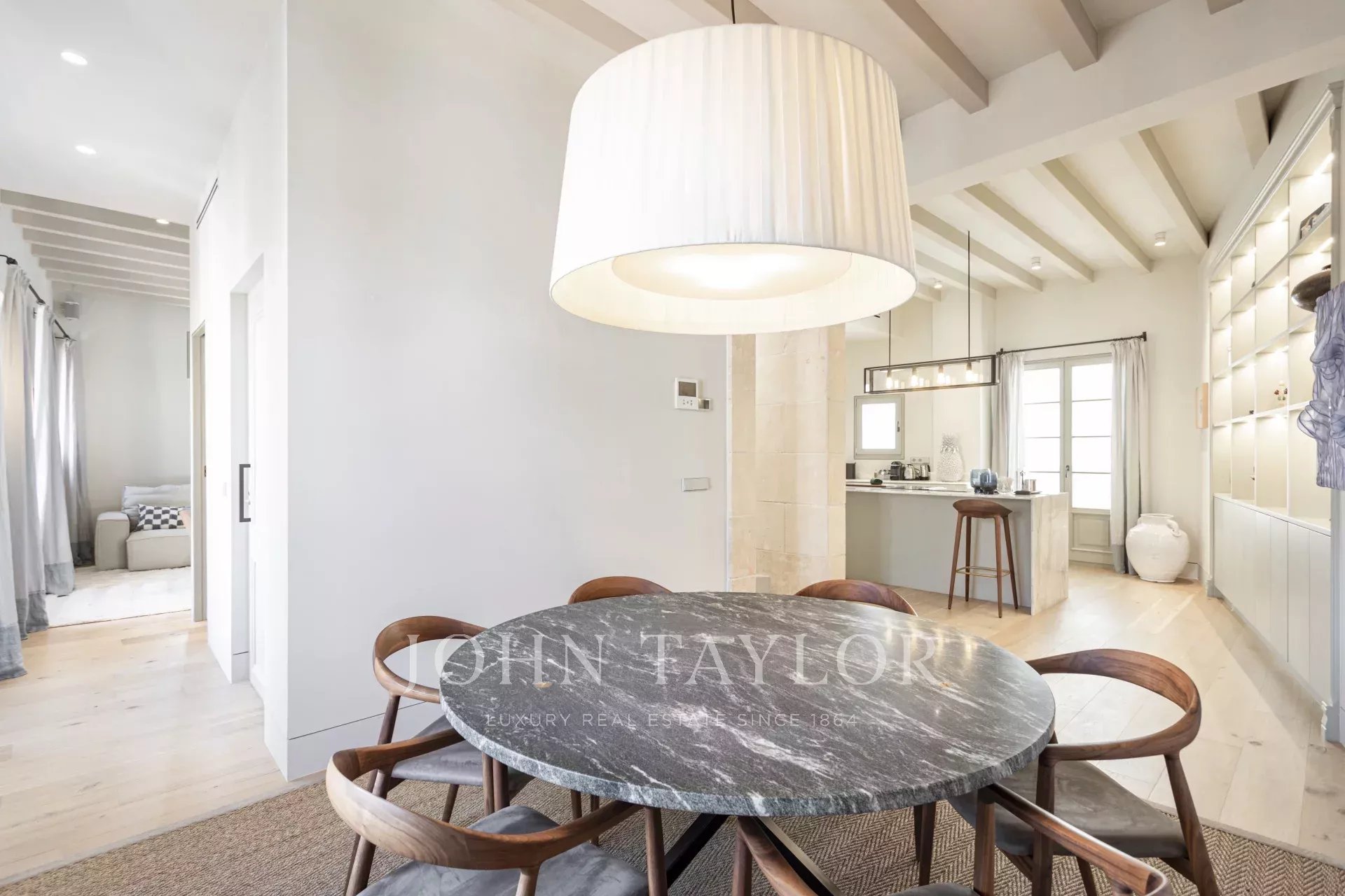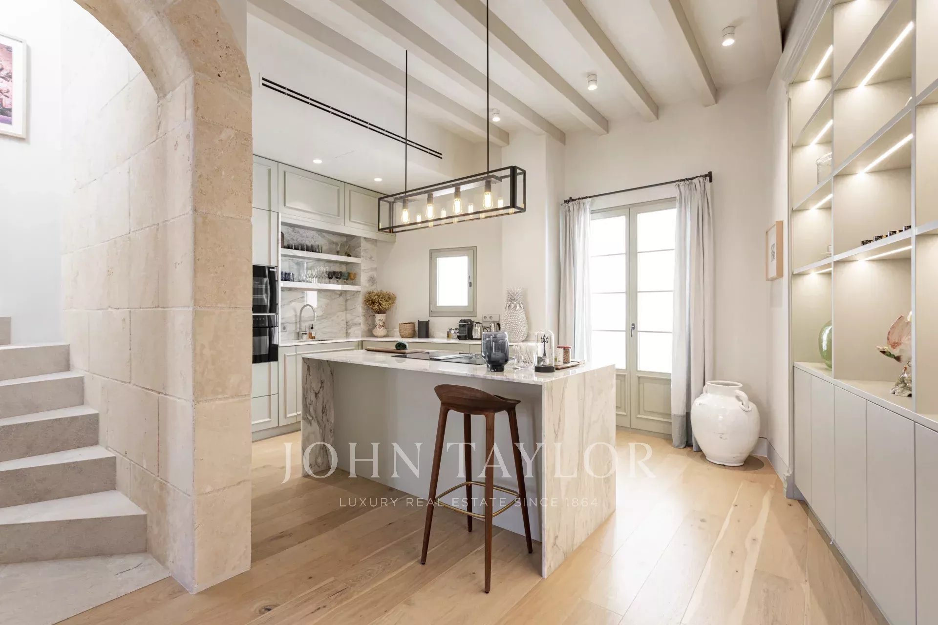 Situado en una de las mejores zonas del Casco Antiguo de Palma, este ático dúplex verdaderamente único se encuentra en el tercer y cuarto piso de un edificio histórico que ha sido restaurado y terminado en 2024.