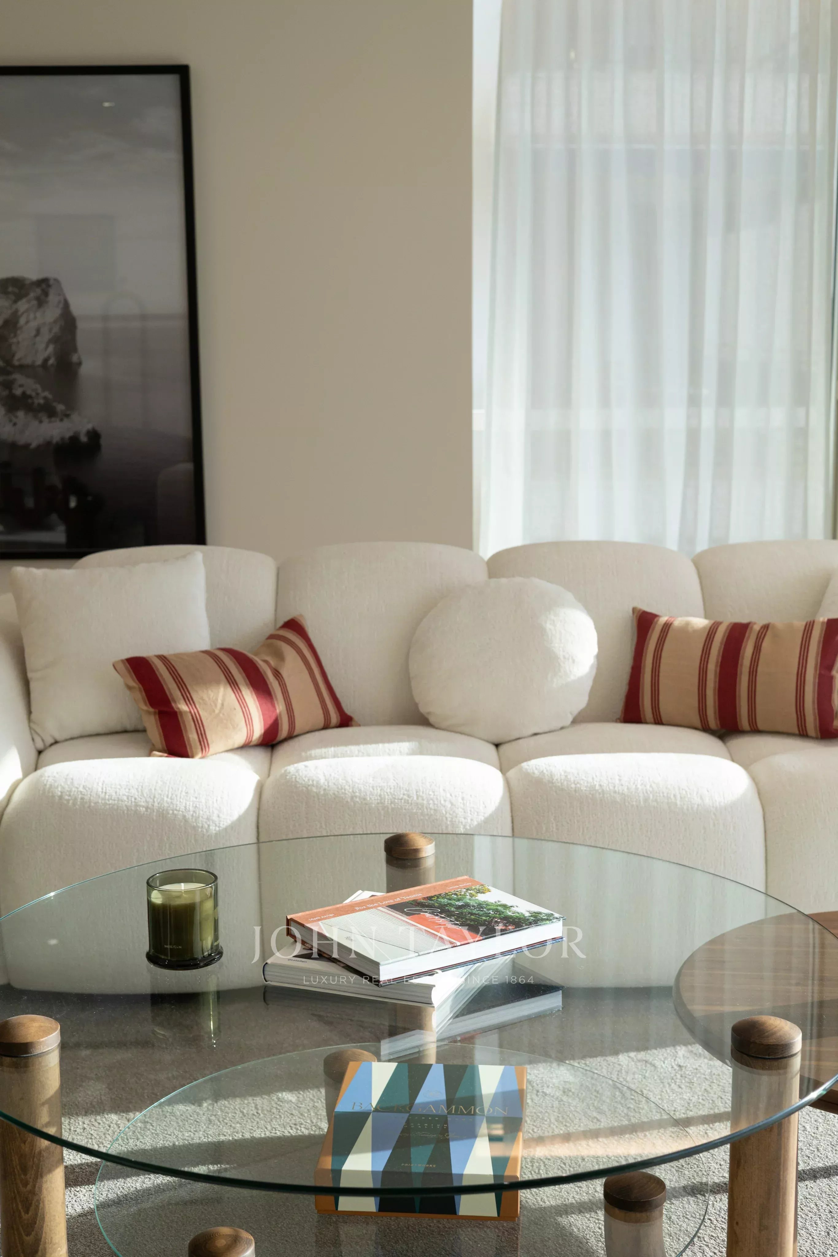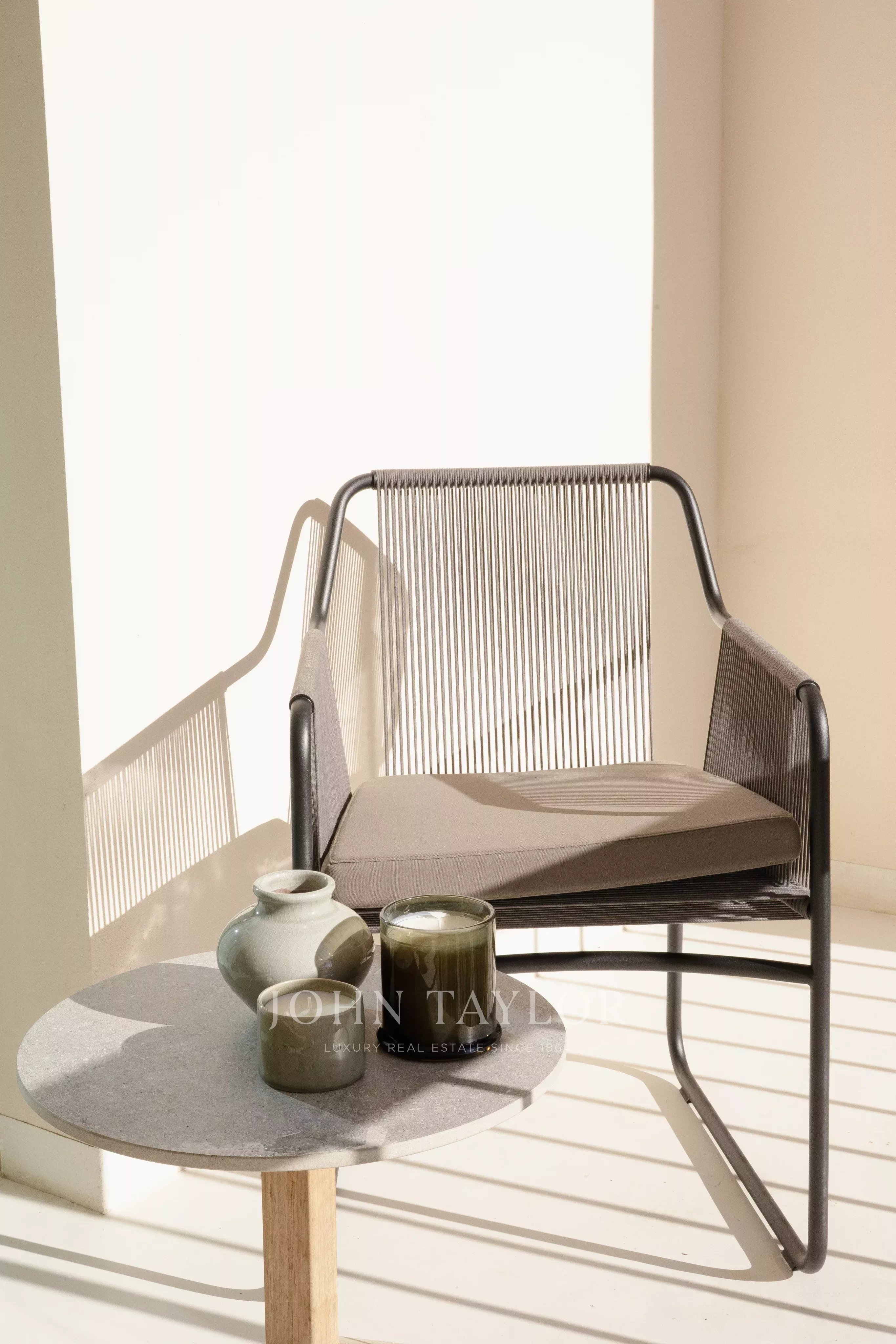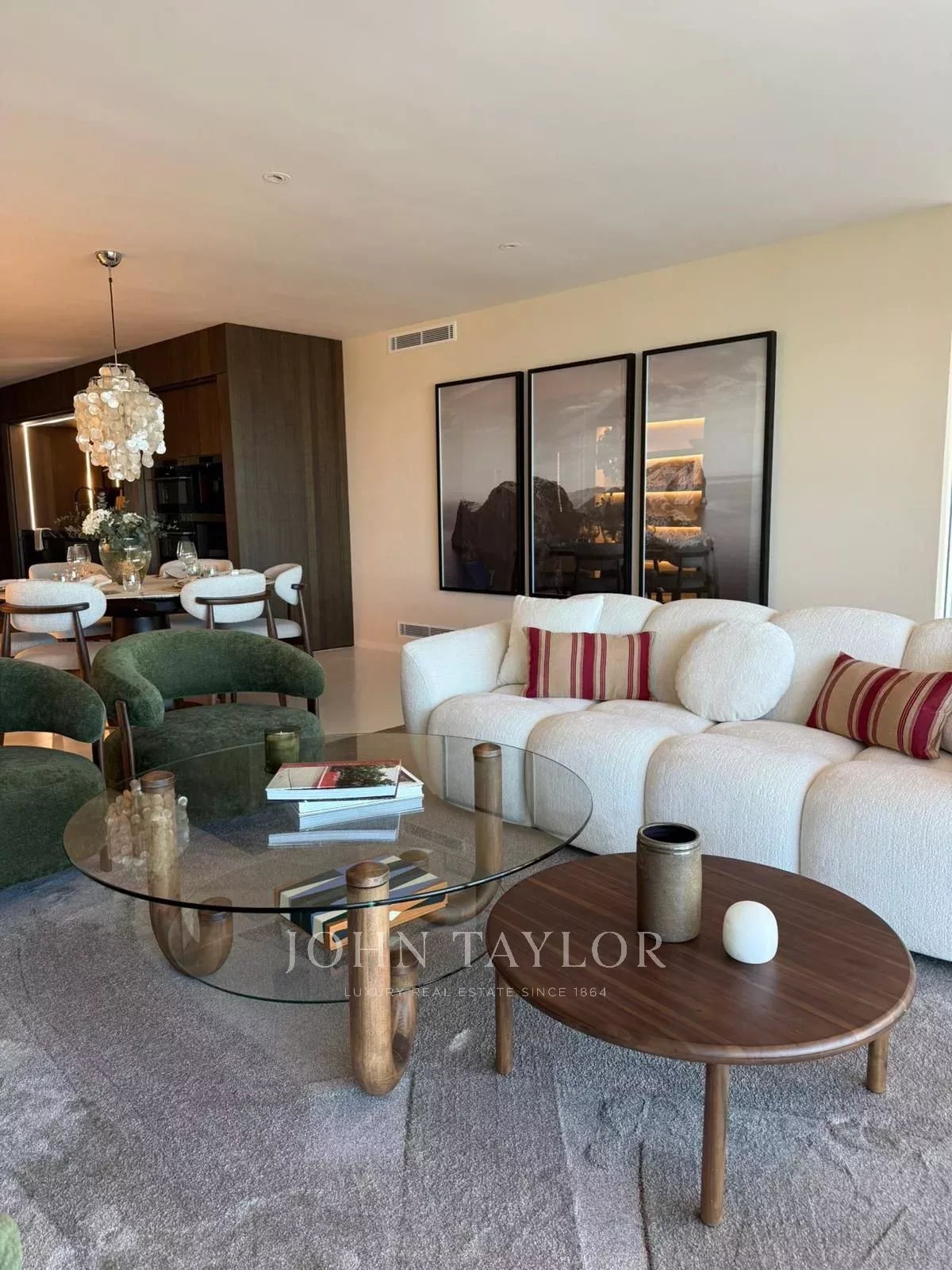 Extras adicionales son aire acondicionado central, suelos de microcemento, sistema de sonido incorporado Sonos, alfombras a medida Besana, muebles de exterior Roda, persianas eléctricas, sonido Bang & Olufsen en la terraza y una colección de arte única.