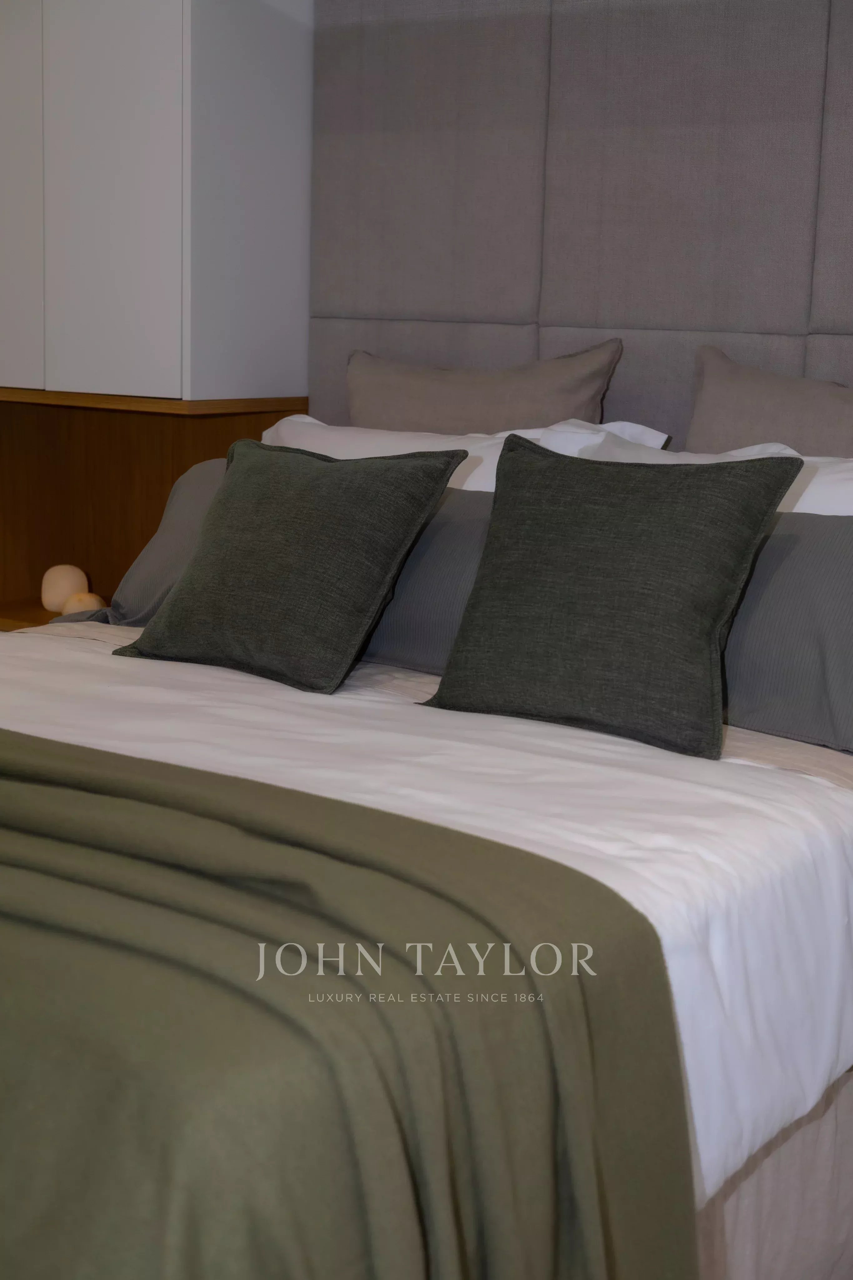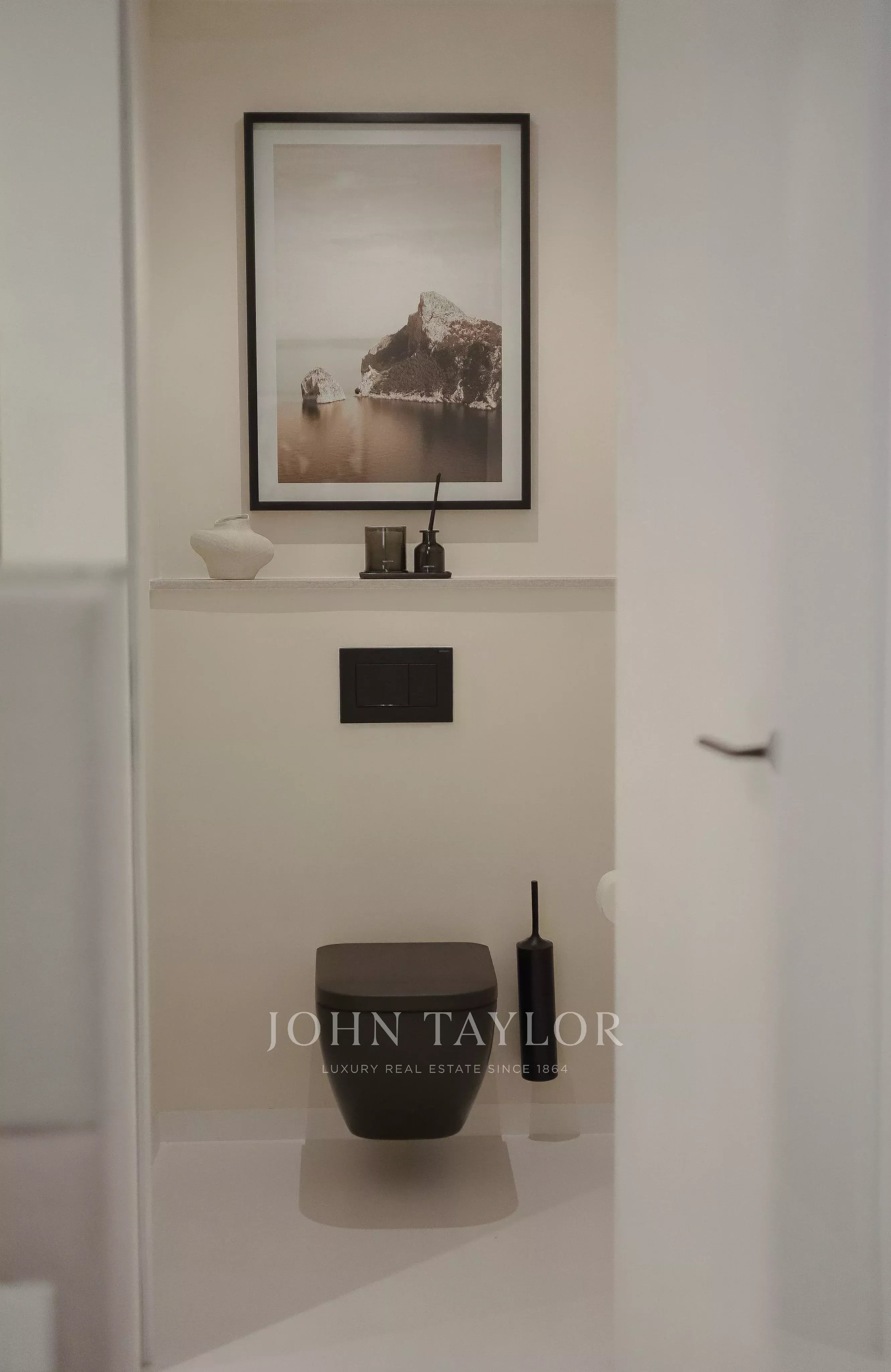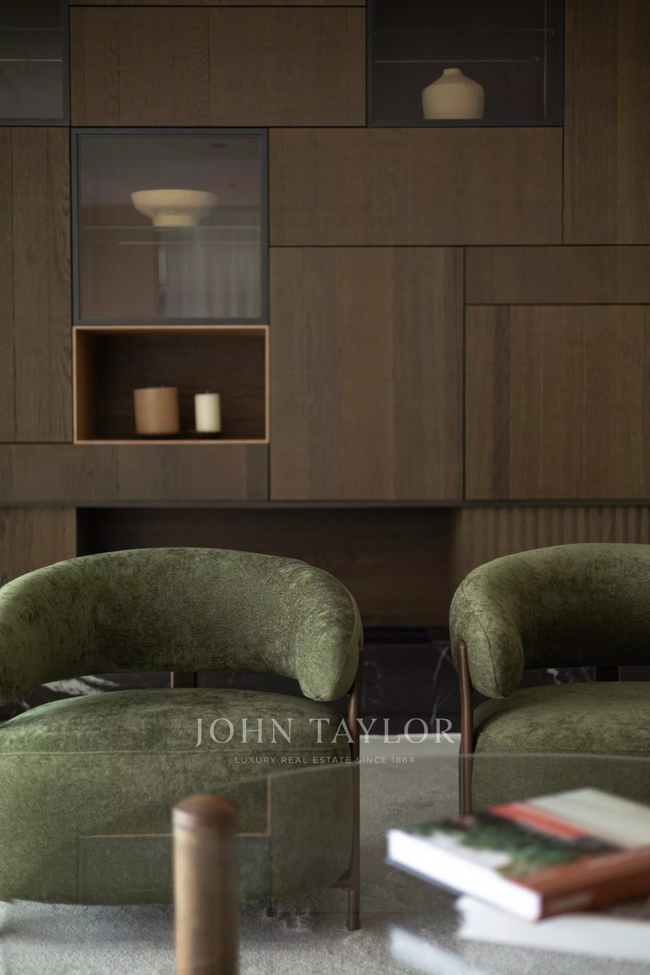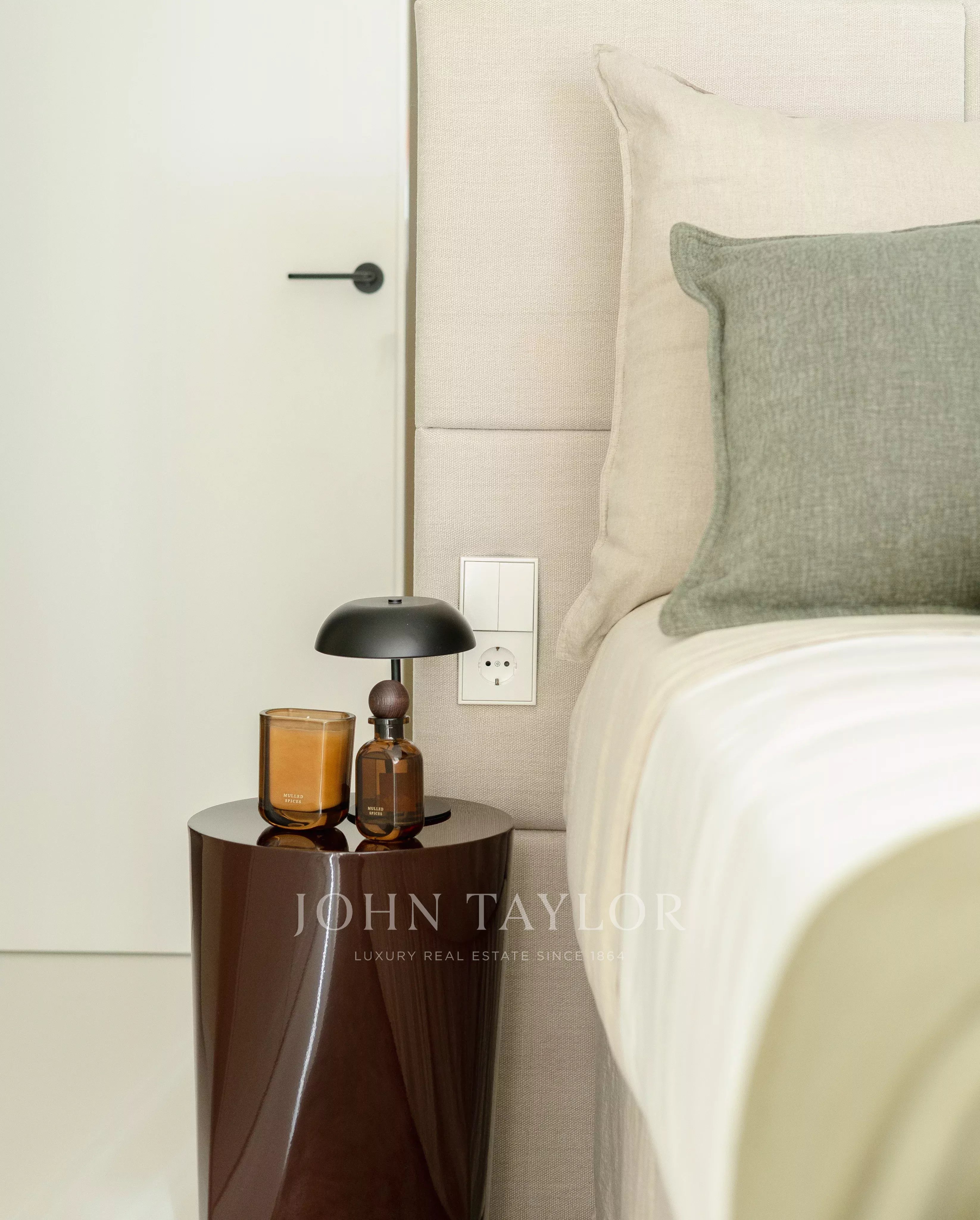 La cocina a medida, totalmente equipada con electrodomésticos AEG, fluye sin esfuerzo hacia el comedor y la zona de estar, completa con una acogedora chimenea. La terraza exterior no podría ser un mejor lugar para entretenerse, disfrutar del sol o simplemente relajarse, y rodea el apartamento.
