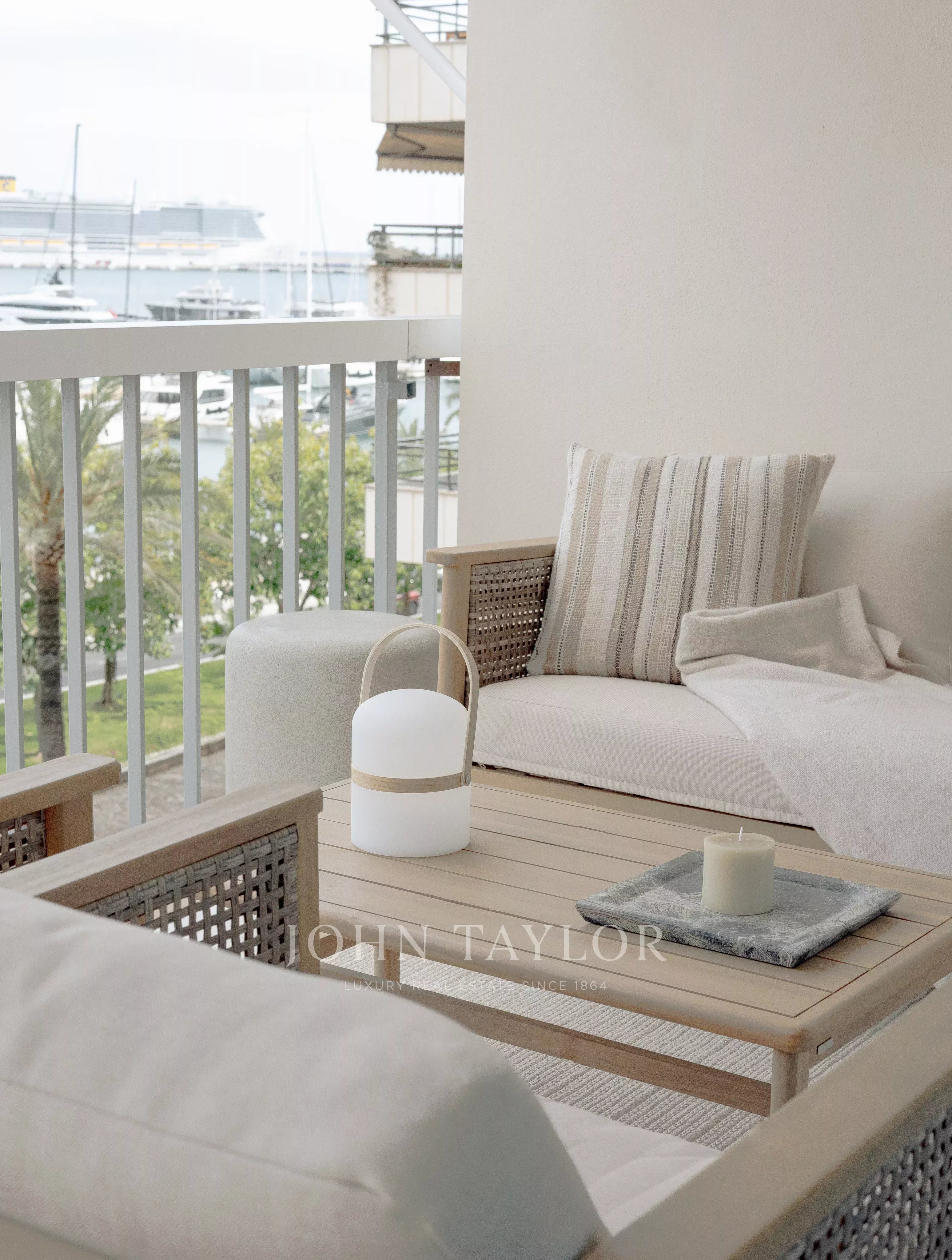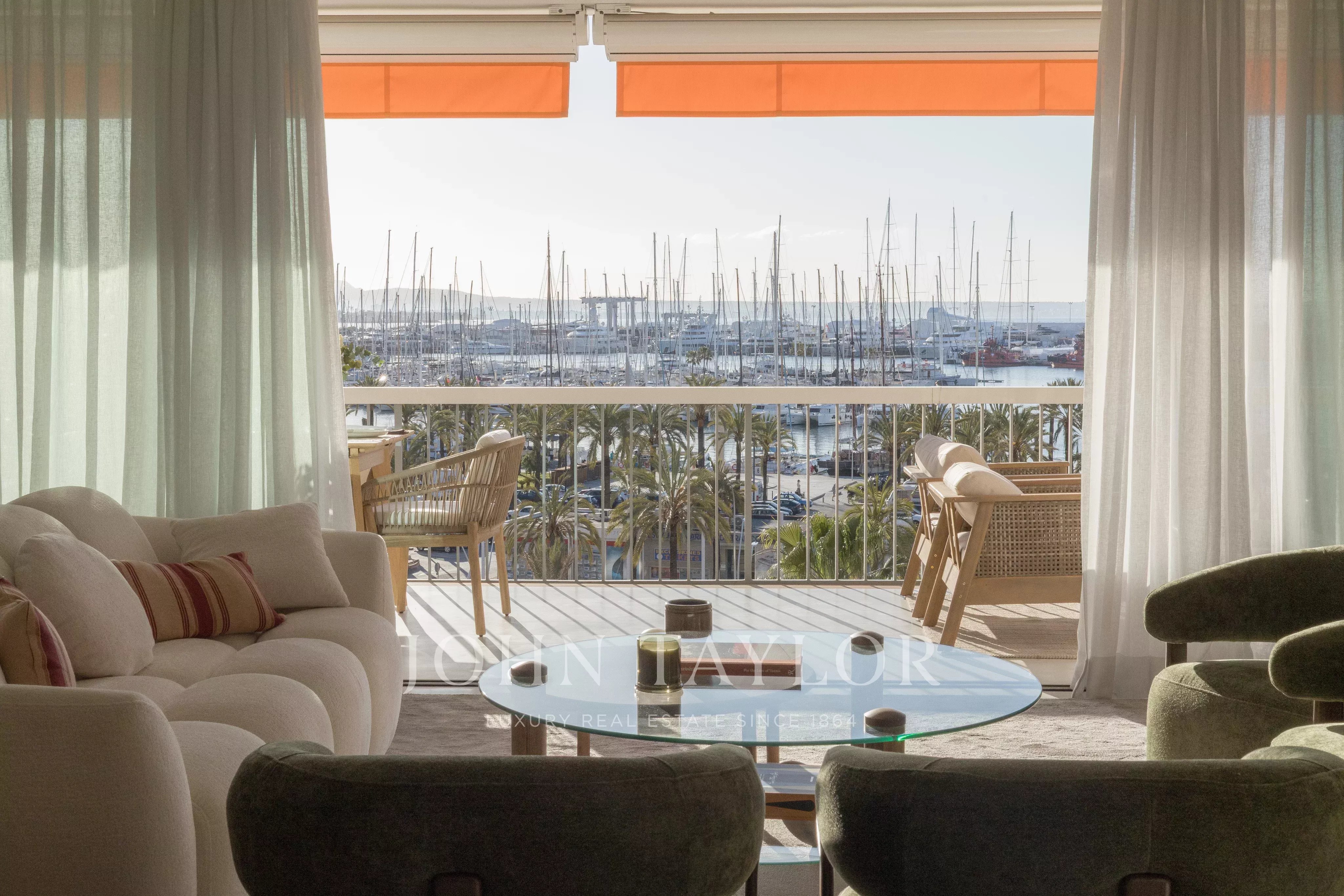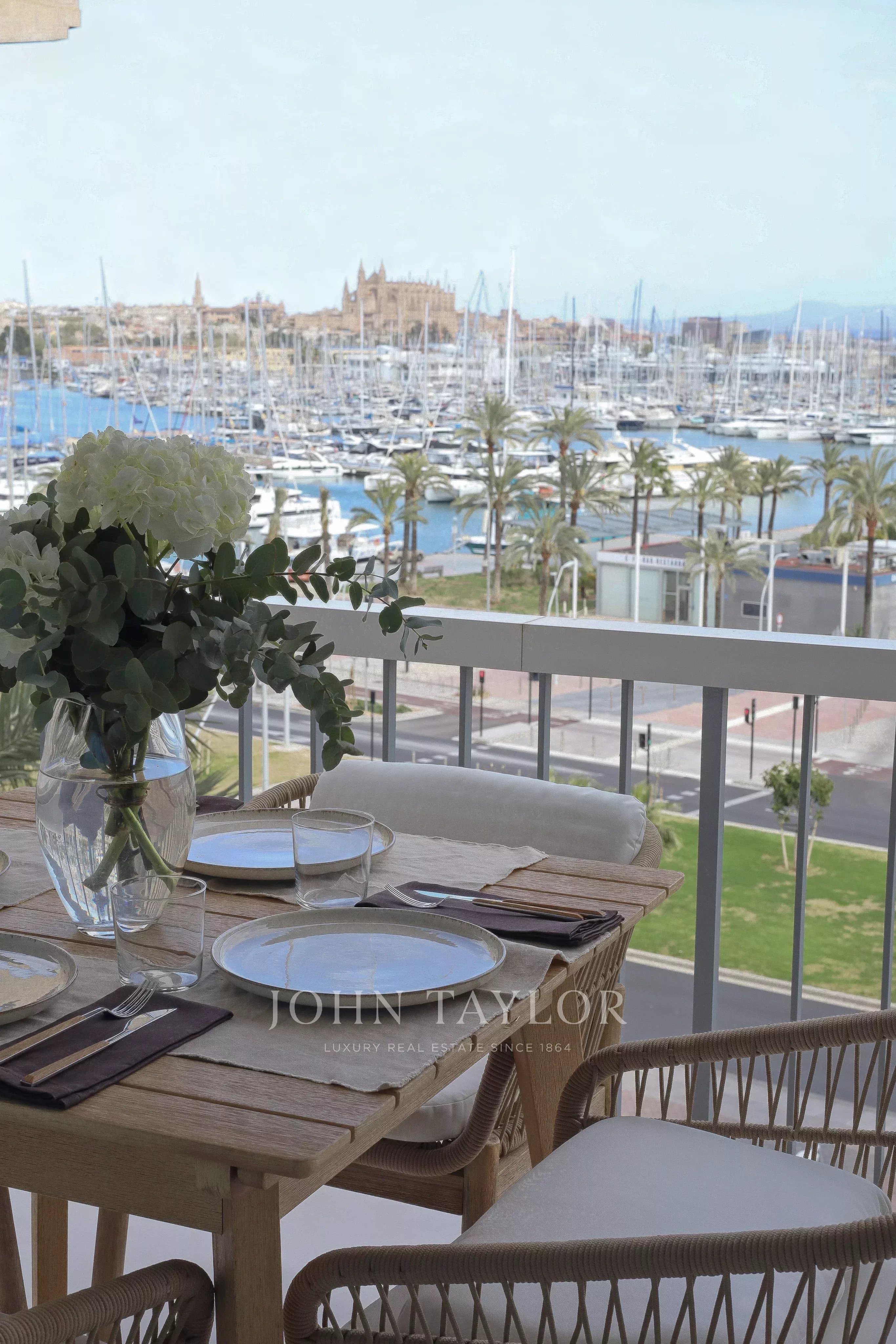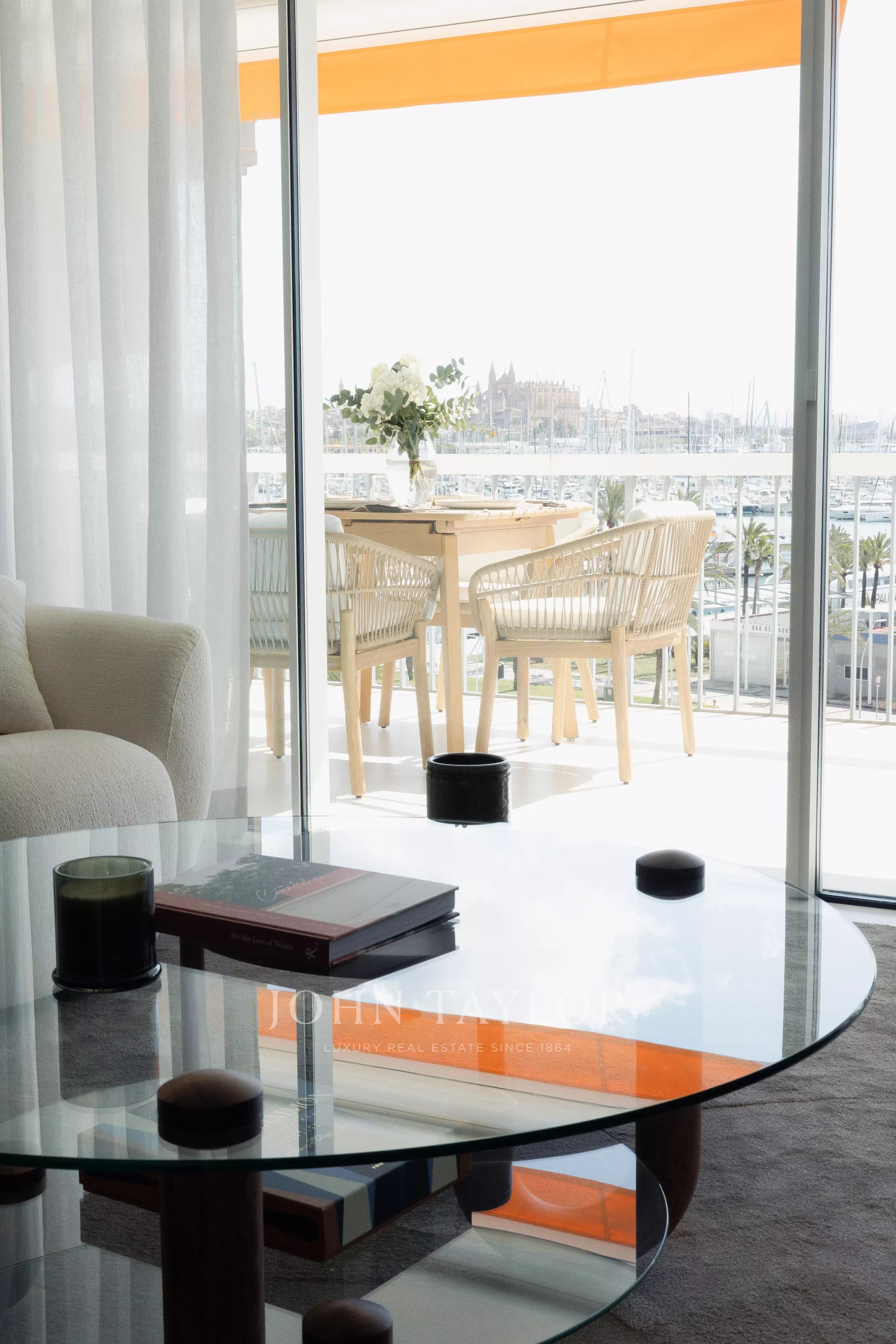 Este apartamento acaba de someterse a una reforma completa, transformándolo en una fabulosa y lujosa residencia que ofrece vistas panorámicas al mar, catedral y puerto. Al entrar no se puede dejar de quedar impresionado por la distribución de concepto abierto muy espaciosa, con un área de estar interior-exterior perfecta, gracias a la ventana oculta instalada.