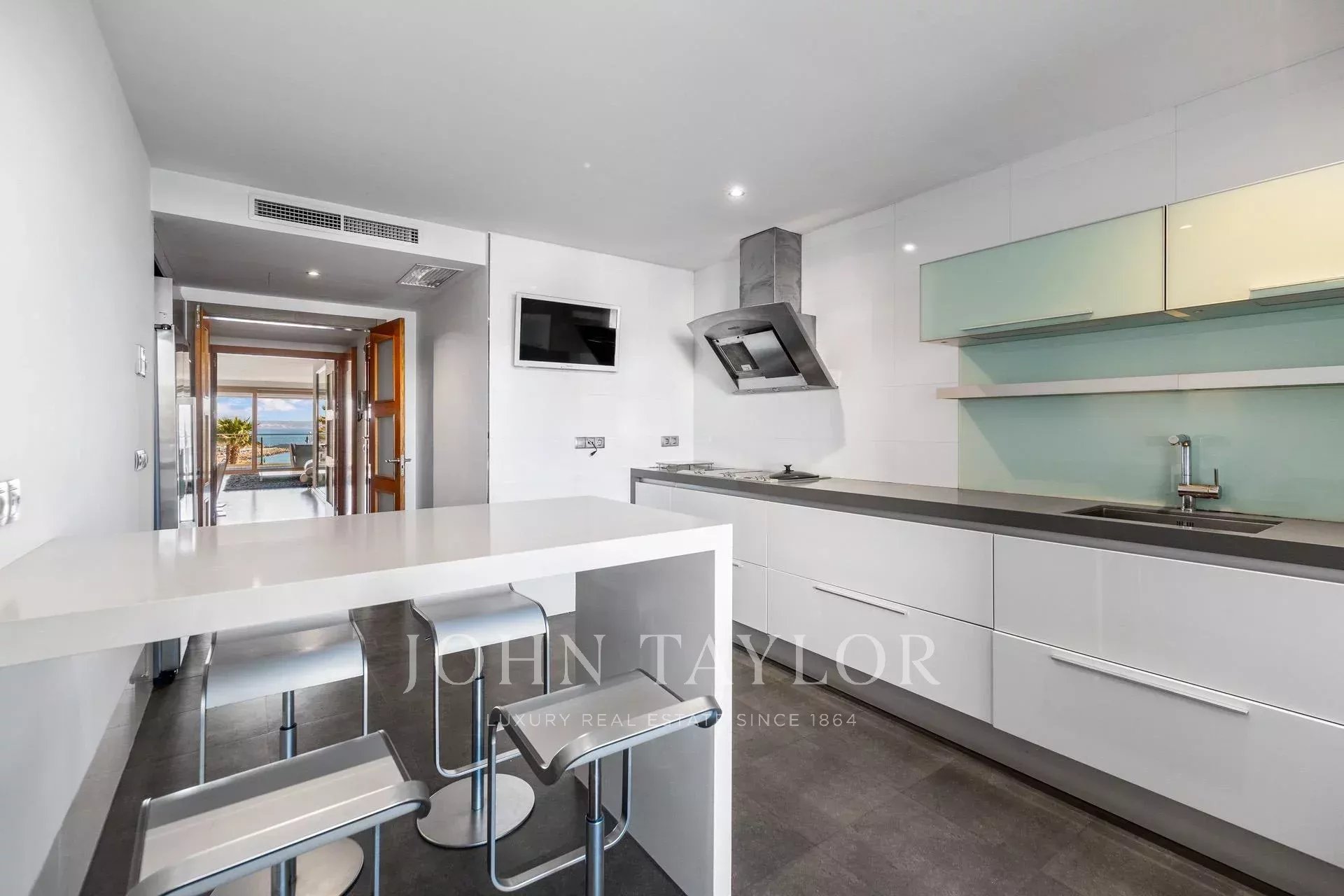 En este espectacular piso ubicado en primerísima línea de mar del Portixol se unen todo el confort actual con un moderno diseño abierto a las magníficas vistas al mar que nos regala la vivienda, con toda la bahía de Palma y el encantador puerto como un auténtico marco de lujo. La zona del Portixol se encuentra en una excelente ubicación dentro de la capital de Mallorca, con el mar a sus pies y a tan sólo 15 min.andando del centro histórico de Palma. Cuenta con una amplia selección de restaurantes con la mejor cocina mediterránea y famosos beach clubs asentados en la arena además de tener acceso directo a la única playa de arena de Palma. Es gran piso de líneas modernas y espacios inundados de por una gran entrada de luz natural, cuenta con 230 m2 donde se han empleado materiales de primera calidad. Está distribuido en cuatro amplios dormitorios con armarios empotrados y el principal de ellos con zona de vestidor, tres baños completos uno de ellos en suite y un aseo de cortesía. Una única superficie está ocupada por el salón-comedor, con amplios ventanales que permiten una gran entrada de luz y que nos dan acceso a la fantástica terraza de 30 m2 con unas increíbles vistas al mar. La amplia cocina está dispuesta de forma independiente, totalmente equipada y con sala de lavandería además de contar con otra terraza posterior. Destacar que la vivienda forma parte de un exclusivo complejo que nos ofrece dos magníficas piscinas comunitarias, zona de parque infantil, pista de pádel y seguridad las 24 horas del día así como parking subterráneo y trastero. Otras características: aire acondicionado, calefacción, armarios empotrados, cocina independiente equipada, zona de lavandería.