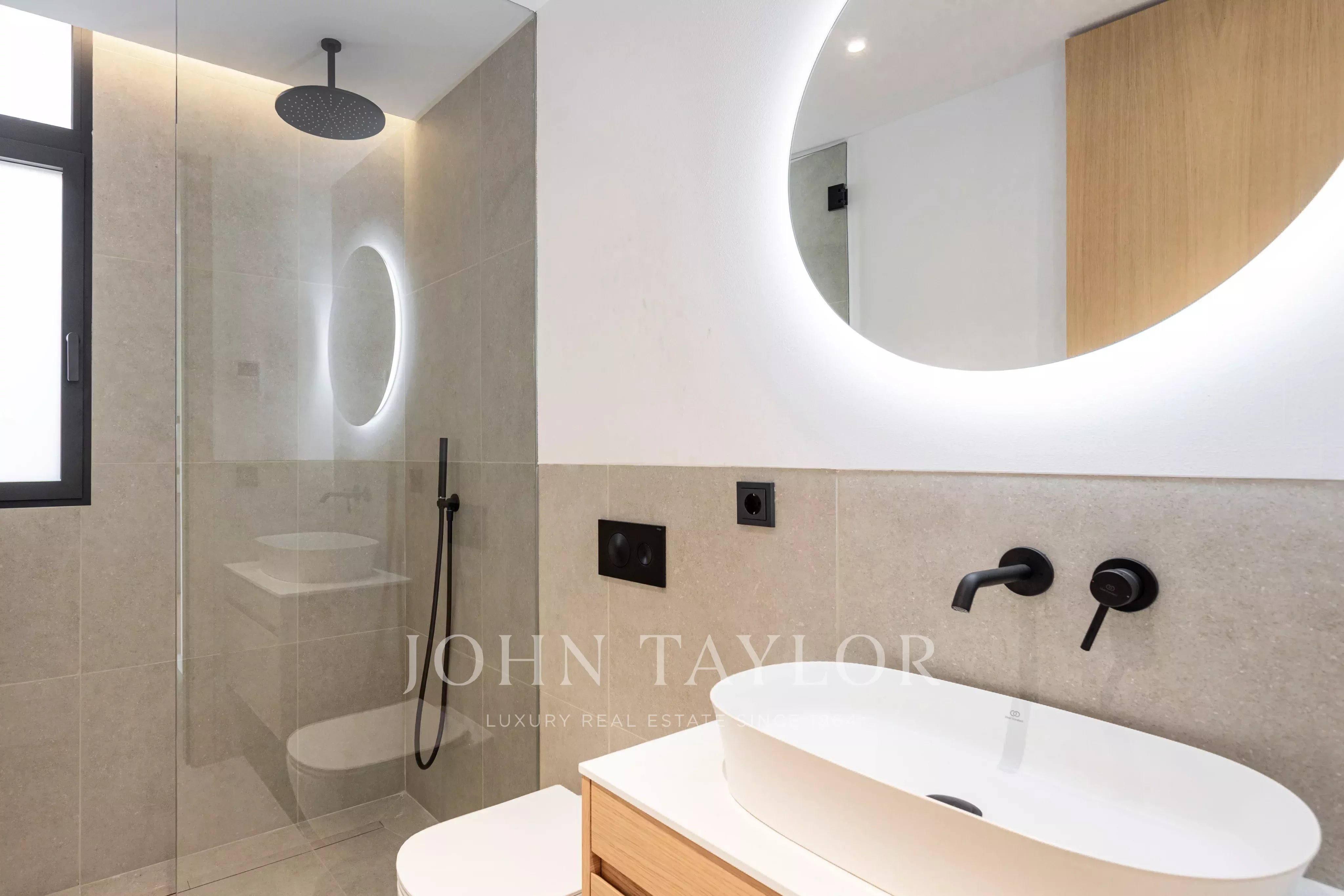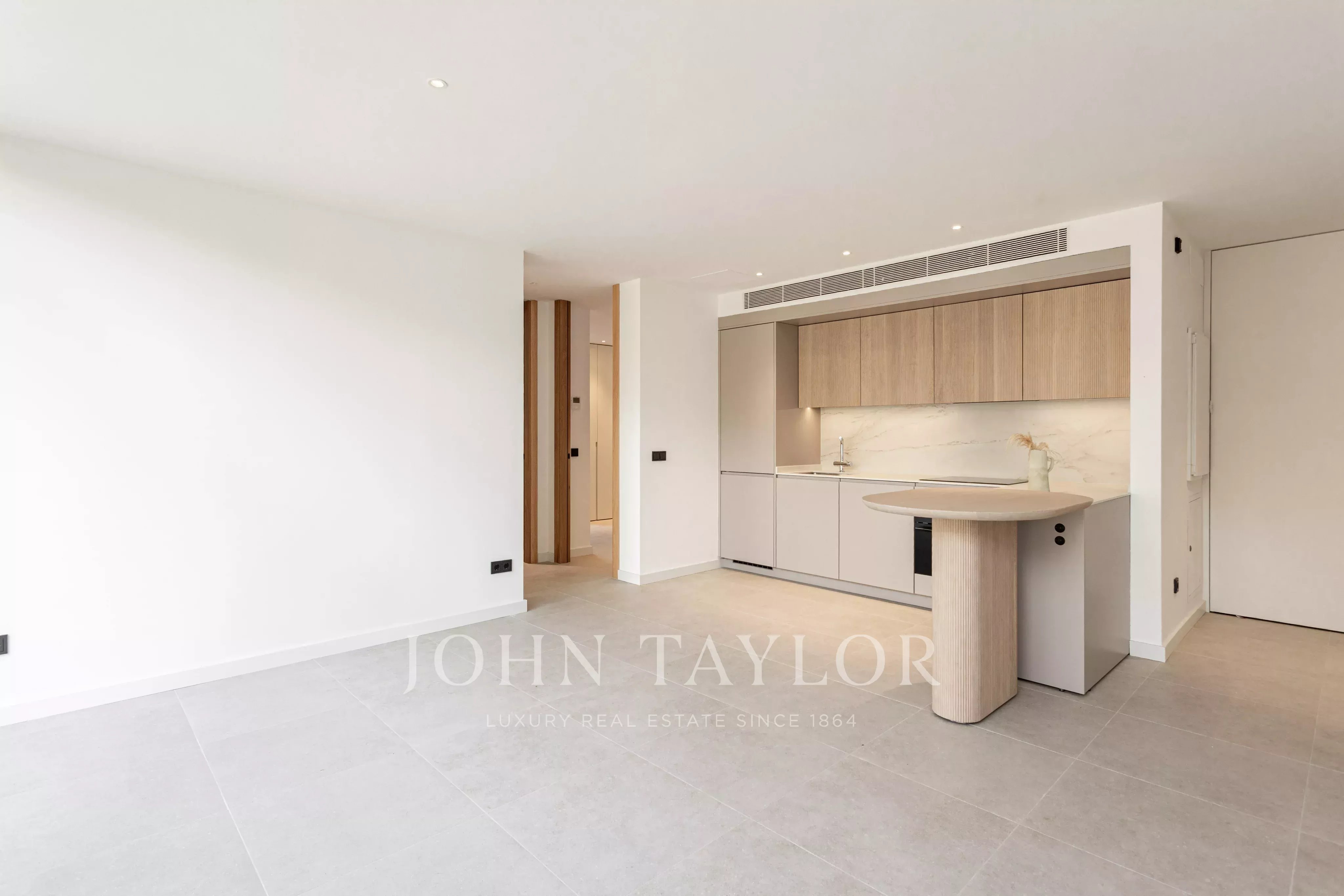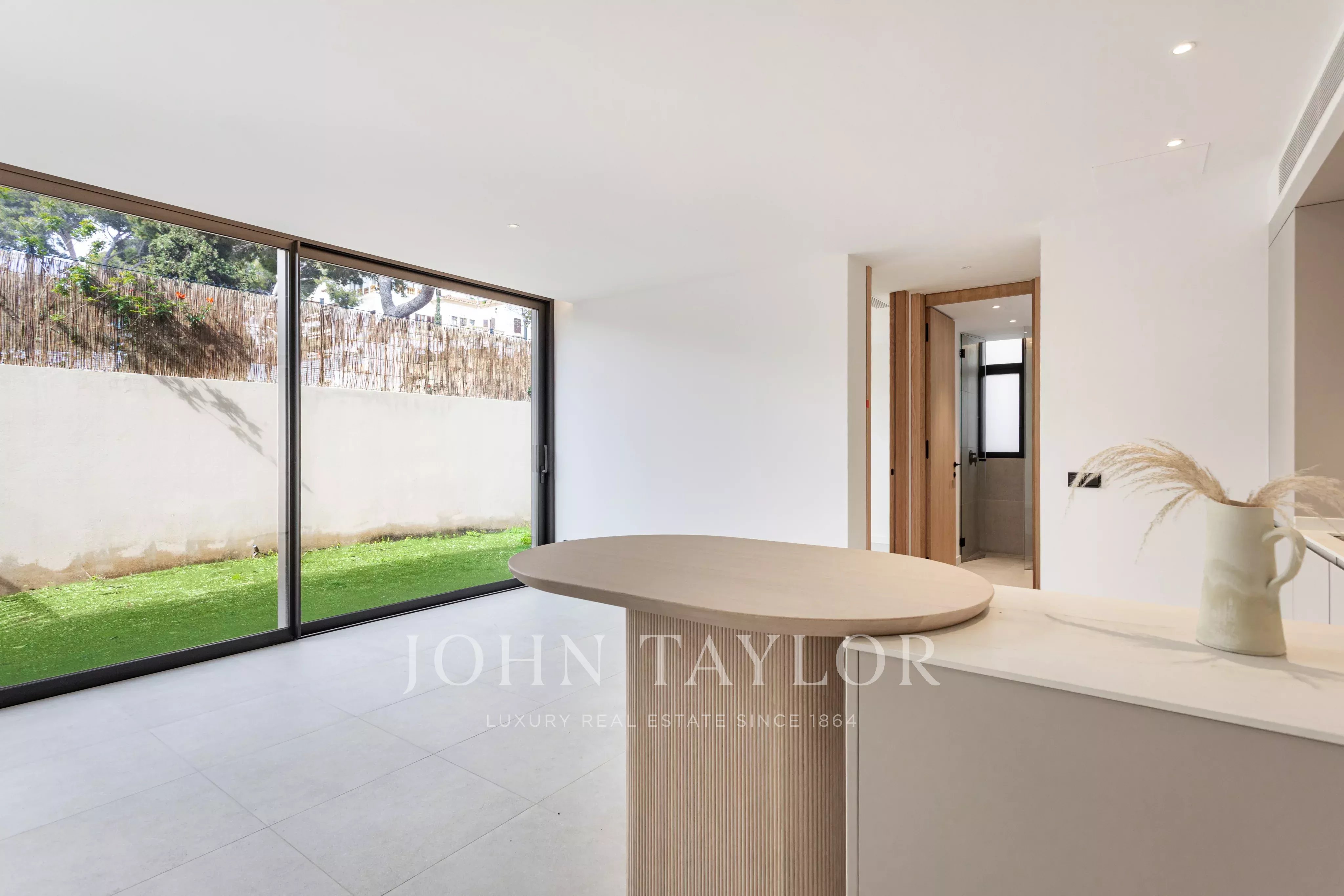 Este apartamento de planta baja tiene un gran jardín orientado al sur, creando la sensación de un hogar en lugar de un apartamento. Está ligeramente elevado para que no esté al mismo nivel que la piscina comunitaria, pero tiene acceso directo desde el jardín a la zona de la piscina. Este apartamento de dos dormitorios y dos baños ofrece 72m2 de superficie habitable interior y 59m2 de jardín exterior. Una plaza de aparcamiento subterráneo y un trastero están incluidos en el precio. Hay una lista de extras donde se podría añadir una pérgola, jacuzzi, o árboles y plantas adicionales.