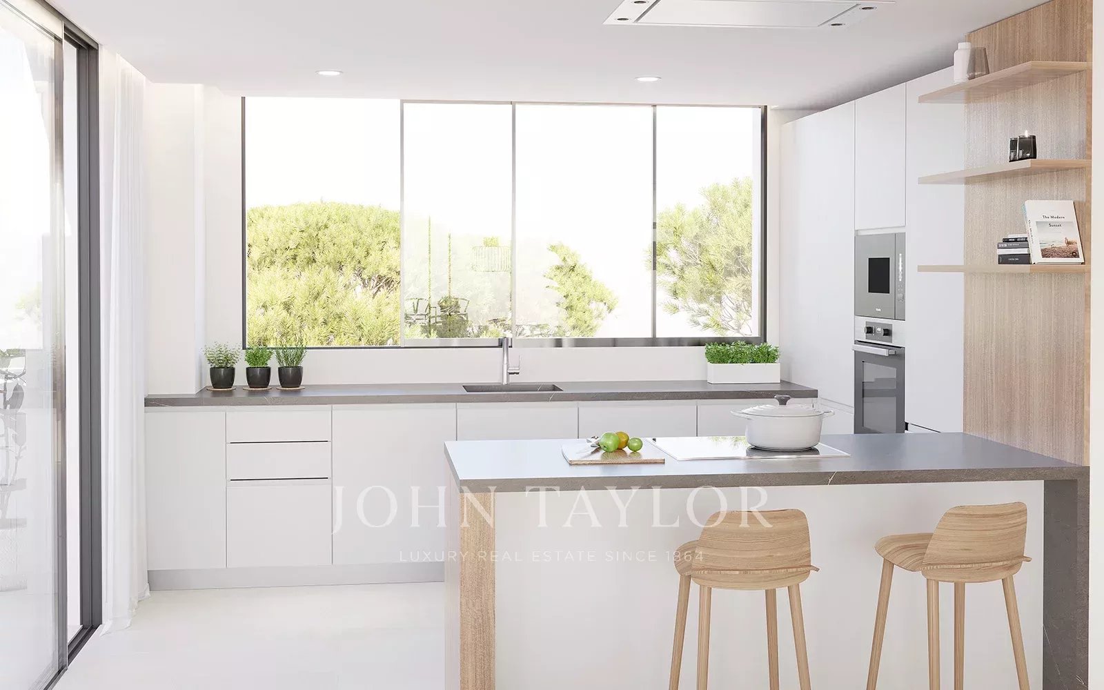 El ático es la mezcla perfecta de vida interior-exterior e incluye una terraza privada en la azotea con piscina, barbacoa y zona de estar. Incluye 3 dormitorios, 2 baños, una cocina abierta, comedor y sala de estar, junto con una sala de lavandería independiente. Hay tres terrazas en la planta principal, cubiertas y descubiertas. Hay calefacción por suelo radiante y aire acondicionado en todo el apartamento, iluminación indirecta, suelos de piedra y madera, y todos los materiales de baño, cocina y suelos son de Porcelanosa. Dos plazas de aparcamiento subterráneo y un trastero están incluidos en el precio. Hay una lista de extras que se pueden añadir, como una refrescante pérgola vaporizadora para los calurosos días y noches de verano, o añadir una pérgola, jacuzzi o árboles y plantas adicionales.