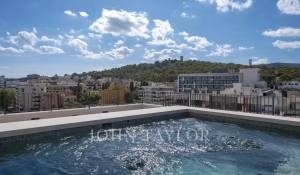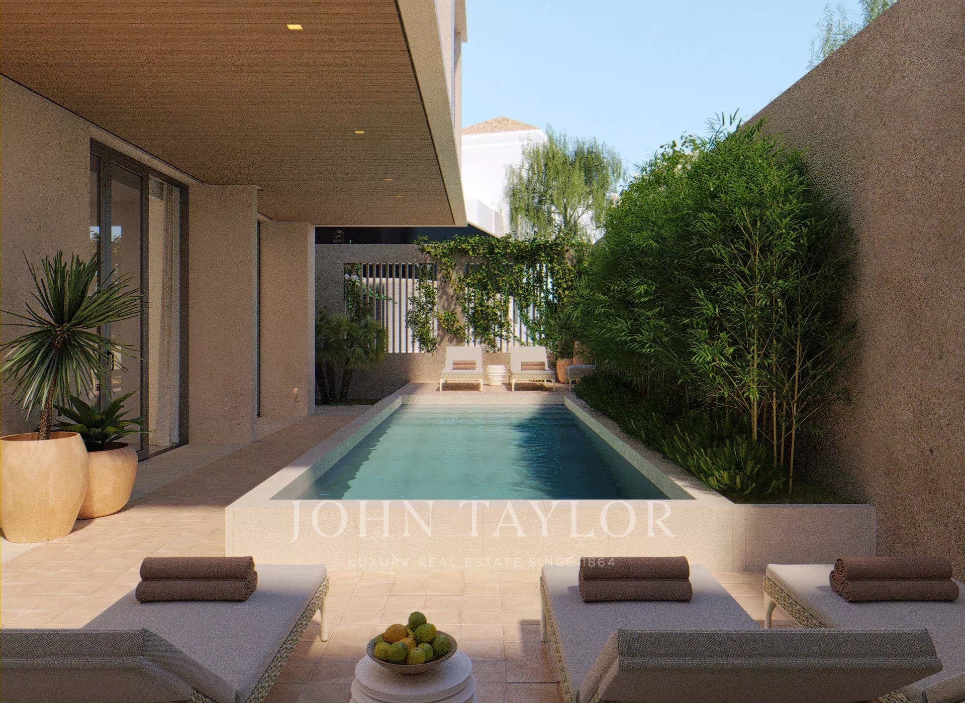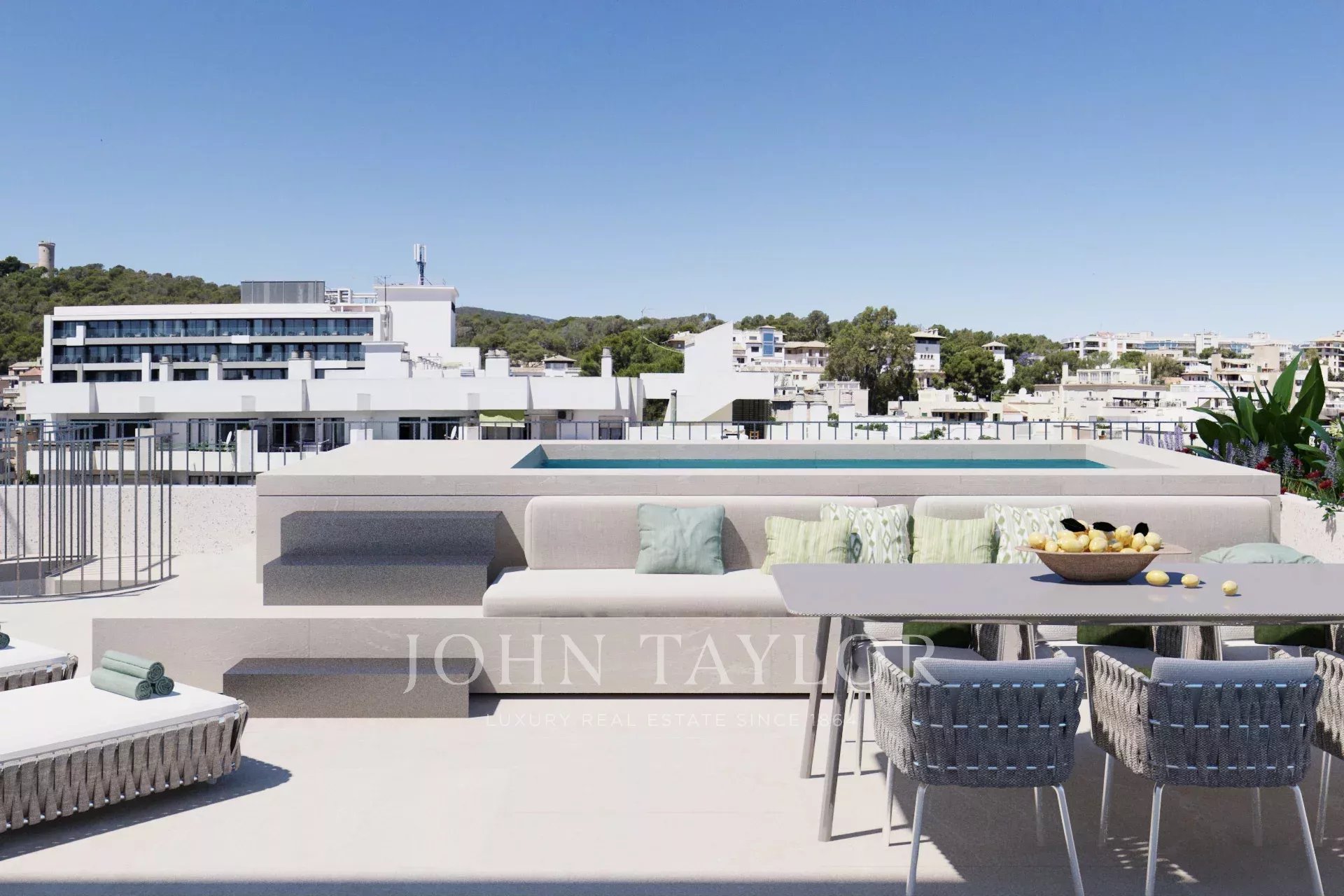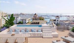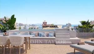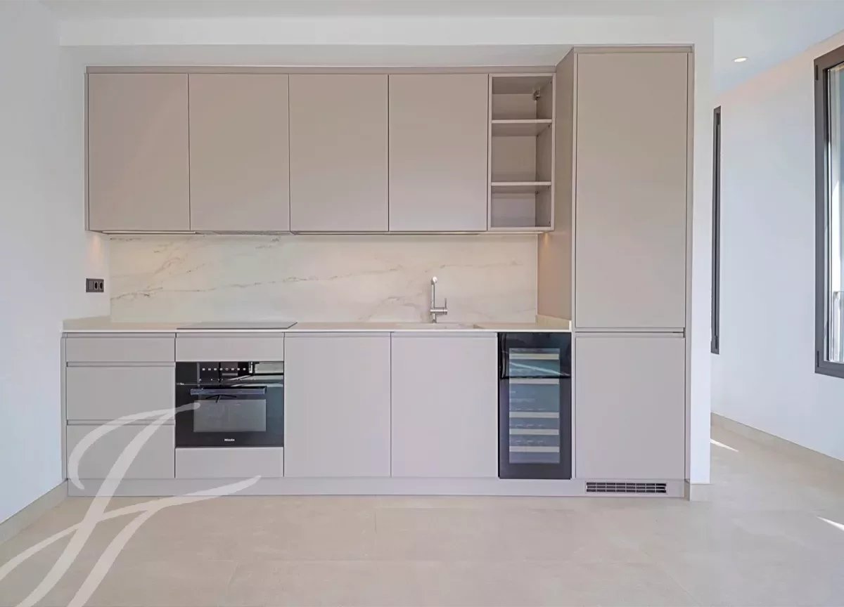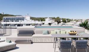 Este ático tiene un solárium privada con piscina, y zona chill-out con bonitas macetas con elementos verdes a su alrededor y un total de 74m2 de espacio interior, 14,8m2 terraza cubierta y 74 m2 de terraza solárium, incluye dos dormitorios y dos baños y una impresionante cocina abierta, comedor y sala de estar. También hay calefacción por suelo radiante y aire acondicionado en todo el apartamento, iluminación indirecta, pisos de piedra y madera y electrodomésticos y todos los materiales de baños, cocina y pavimentos son de Porcelanosa. Una plaza de aparcamiento y un trastero están incluidos en el precio. Hay una lista de extras que se pueden agregar, como una refrescante pérgola de vaporizador de niebla para los calurosos días y noches de verano. Se estima que el proyecto se completará en mayo del 2024.