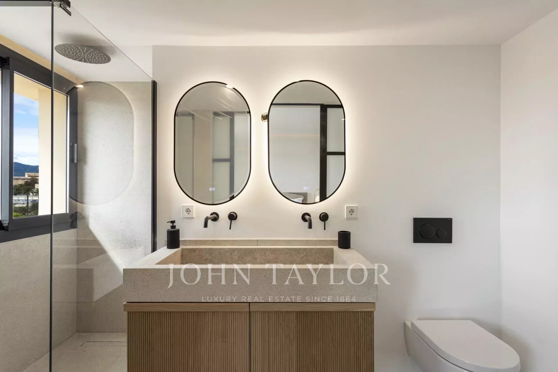 Una escalera de bella factura conduce a la planta superior, donde encontrará tres dormitorios y dos cuartos de baño con duchas a ras de suelo, así como una segunda terraza privada, perfecta para disfrutar de tranquilos momentos al aire libre.