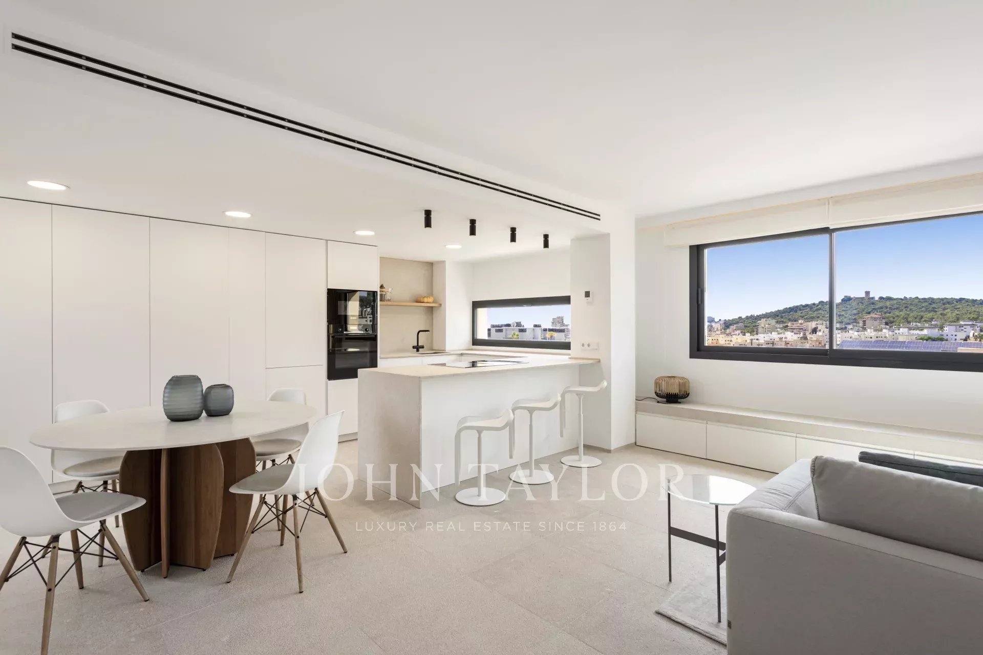 Situado en el codiciado barrio de Son Espanyolet, a pocos minutos del centro de Palma y Santa Catalina, este exclusivo ático dúplex con una amplia terraza en la azotea ofrece impresionantes vistas panorámicas sobre el barrio, el Castillo de Bellver, la Catedral y el mar. Elevado por encima de los edificios circundantes, garantiza una privacidad excepcional y luz natural durante todo el día.