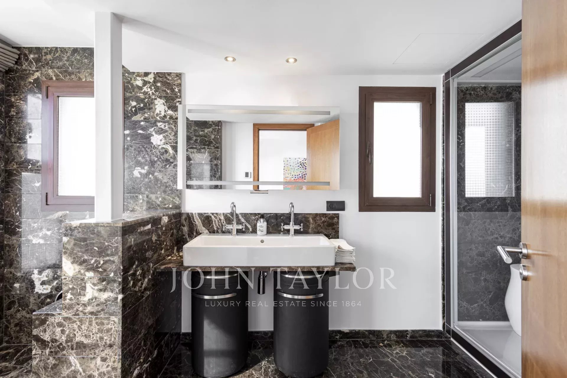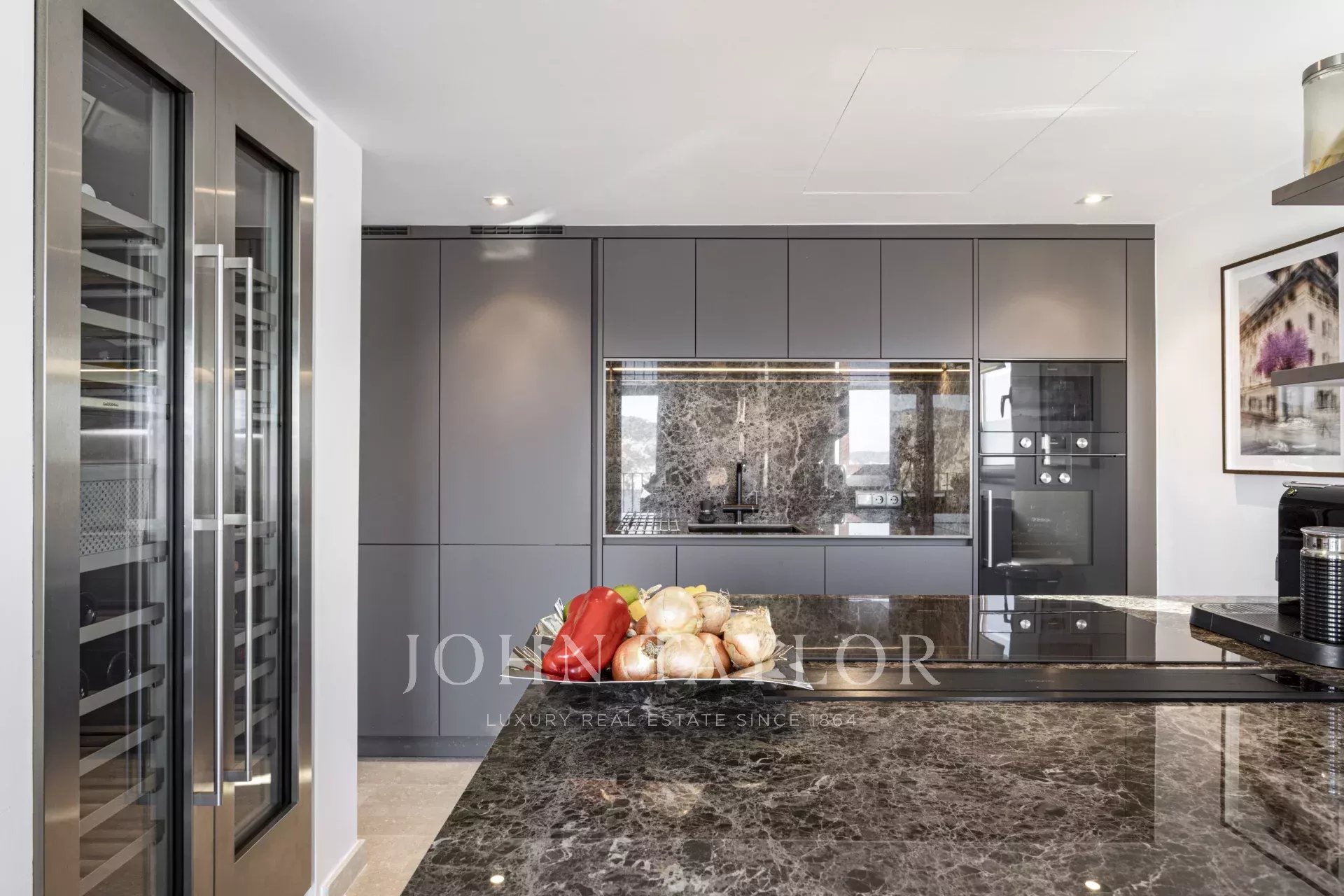 La zona de estar interior tiene 141 m2 e incluye, un ascensor/vestíbulo de entrada, un amplio salón/comedor con chimenea, y una cocina abierta con isla de desayuno y electrodomésticos Gaggenau. El dormitorio principal se completa con un cuarto de baño en suite amueblado con electrodomésticos Duravit. También hay un dormitorio de invitados y un cuarto de baño independiente. Ambos dormitorios ofrecen acceso directo a la terraza.